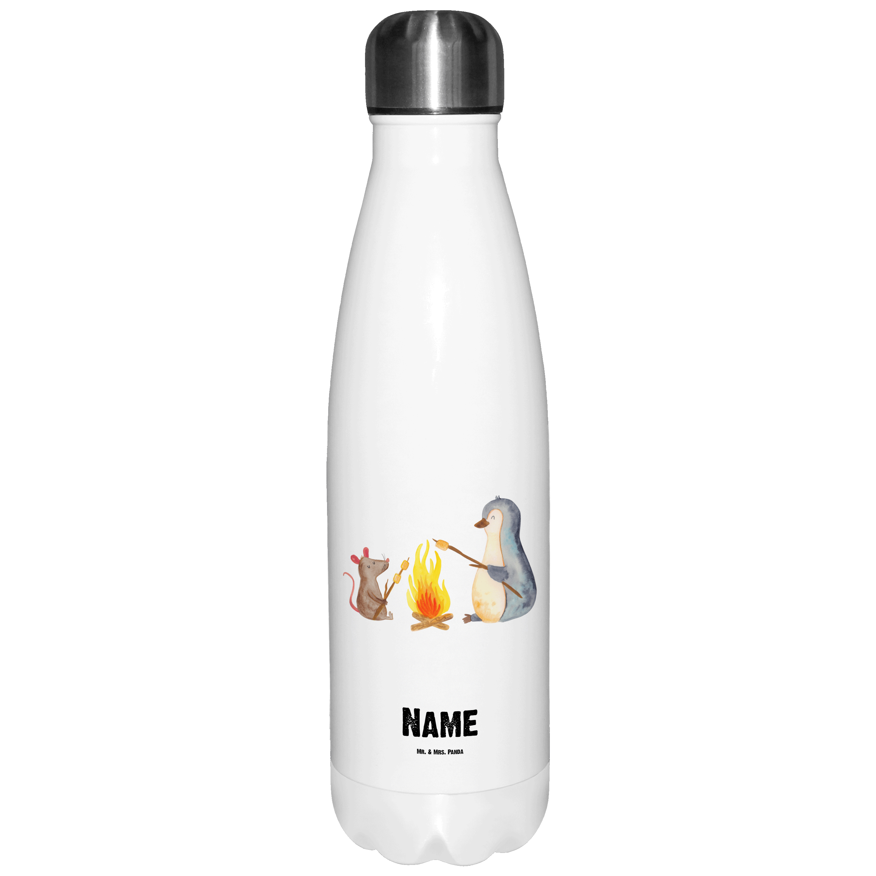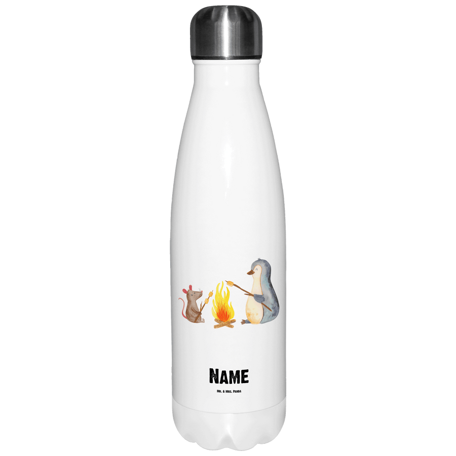 Personalisierte Thermosflasche Pinguin Lagerfeuer
