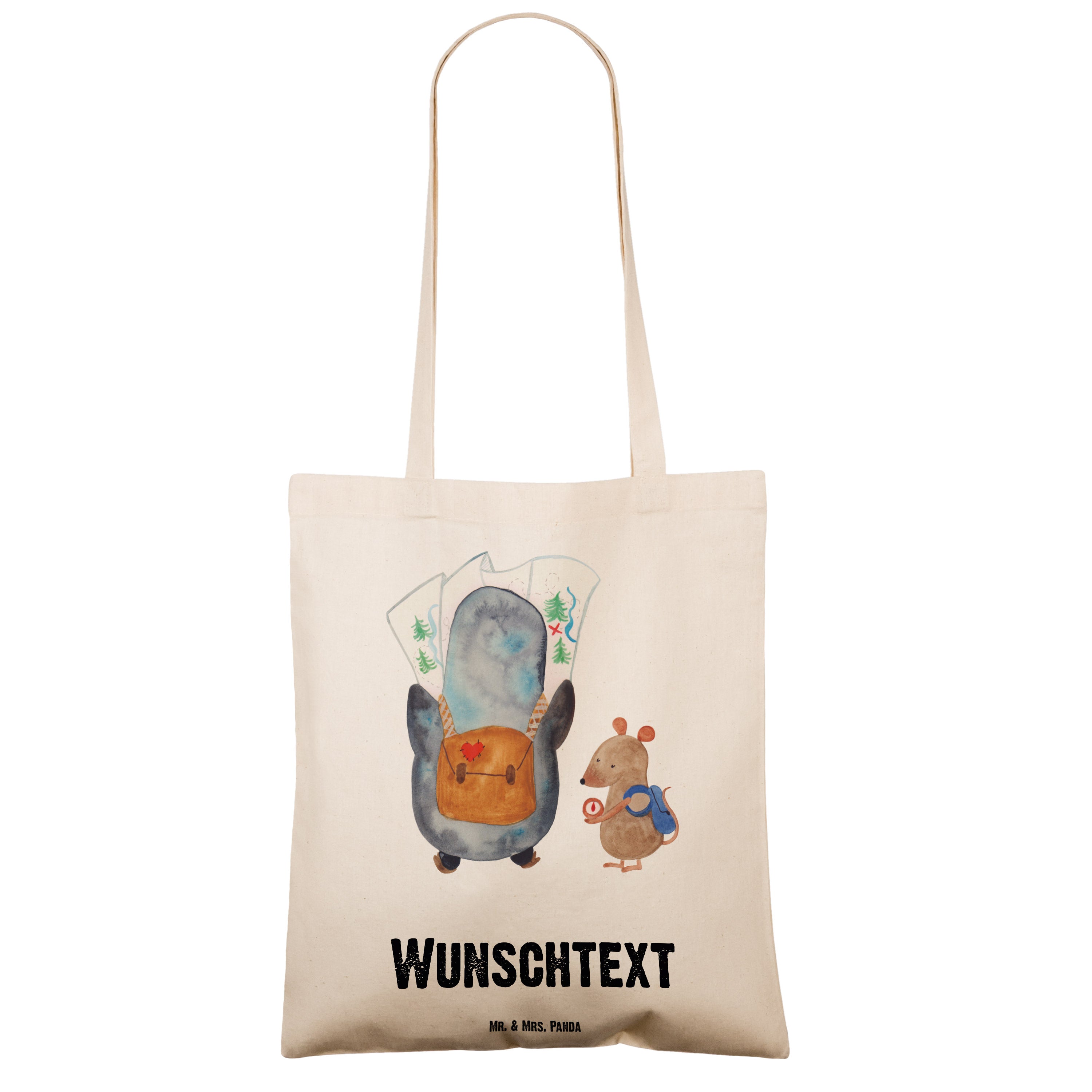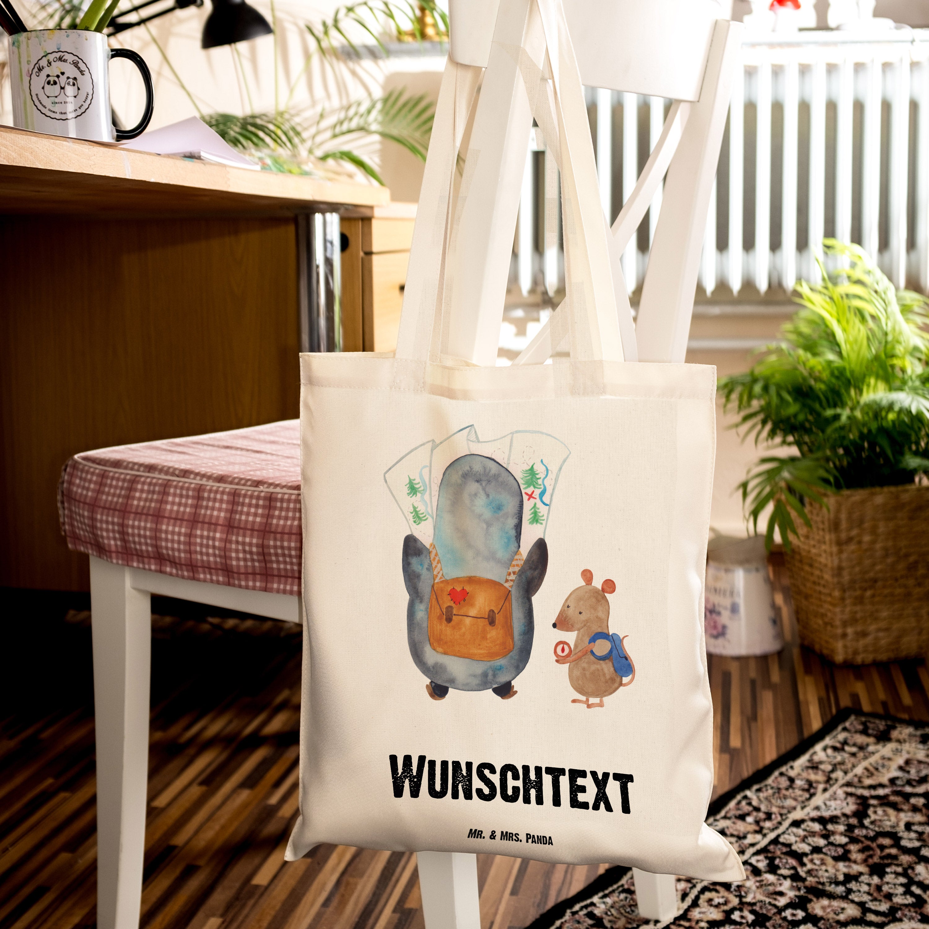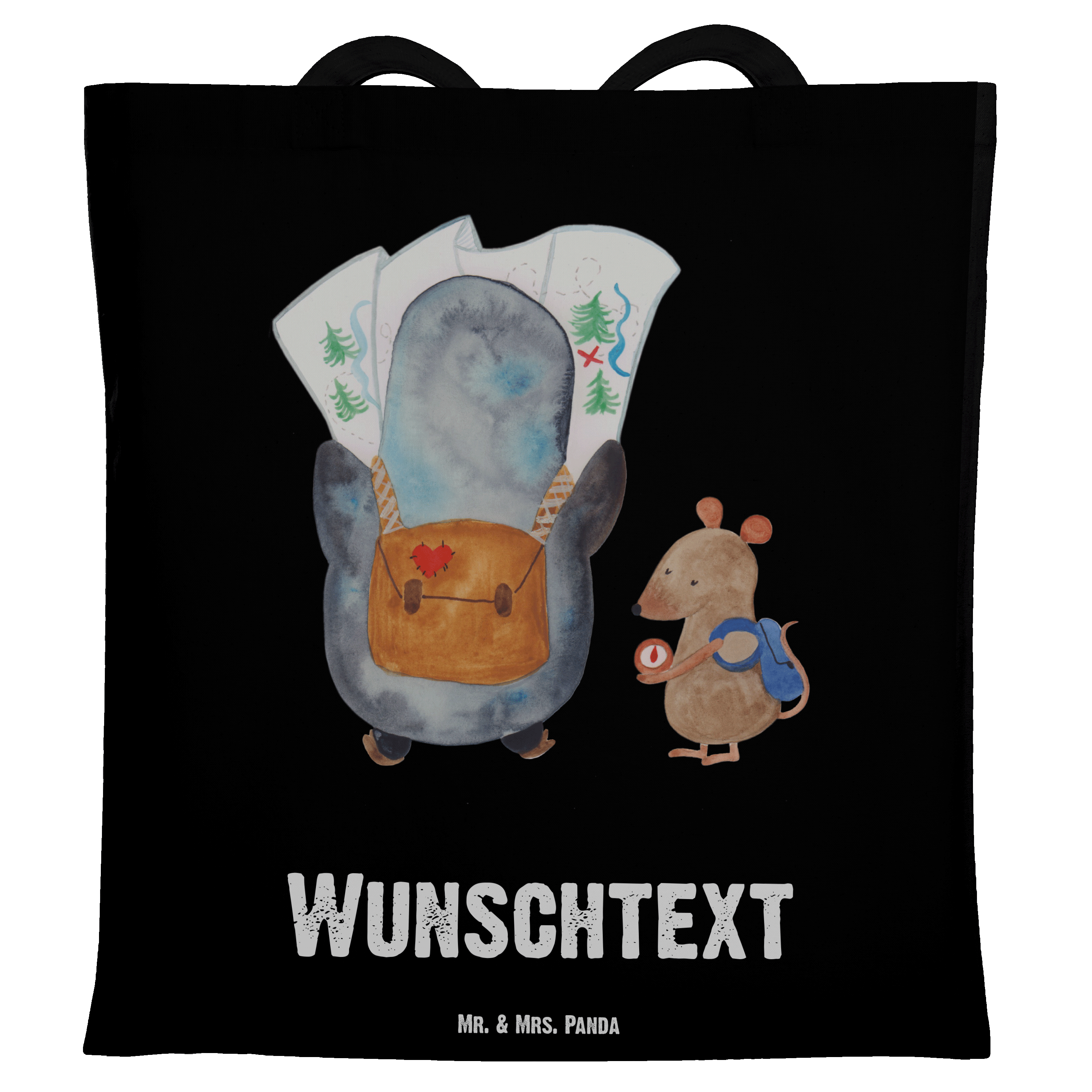 Personalisierte Tragetasche Pinguin & Maus Wanderer - Schwarz