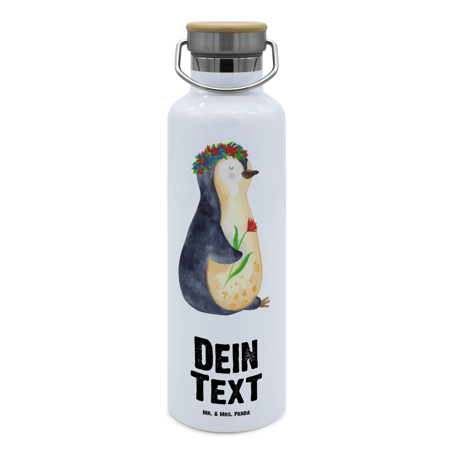Personalisierte Trinkflasche Pinguin Blumenkranz