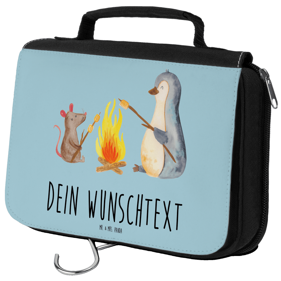 Personalisierter Kulturbeutel Pinguin Lagerfeuer - Eisblau
