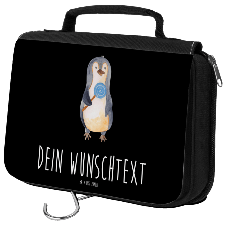Personalisierter Kulturbeutel Pinguin Lolli - Schwarz