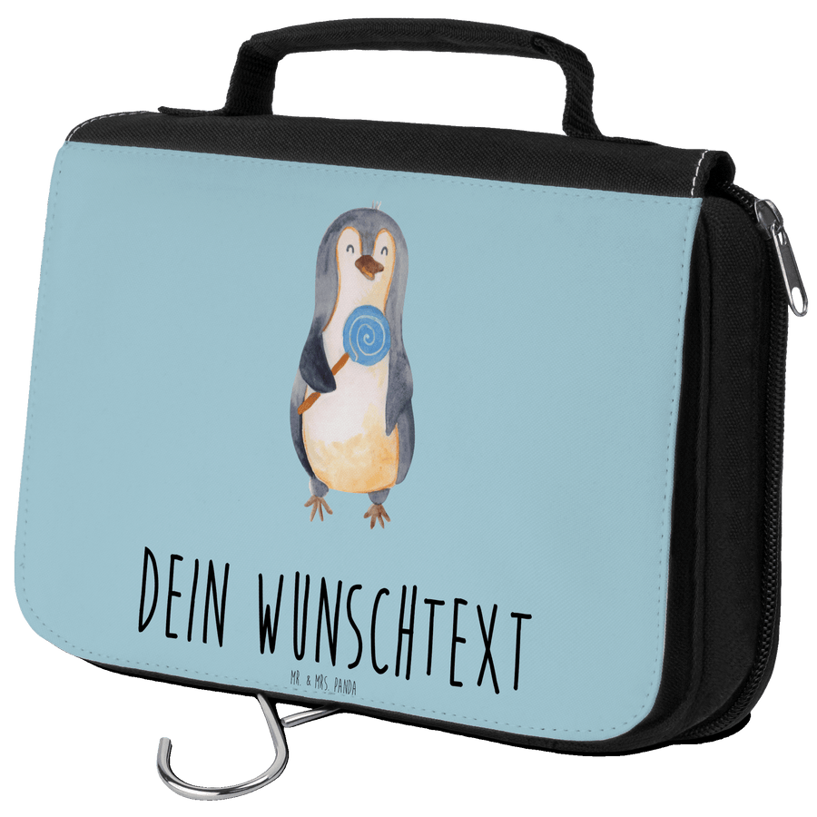 Personalisierter Kulturbeutel Pinguin Lolli - Eisblau