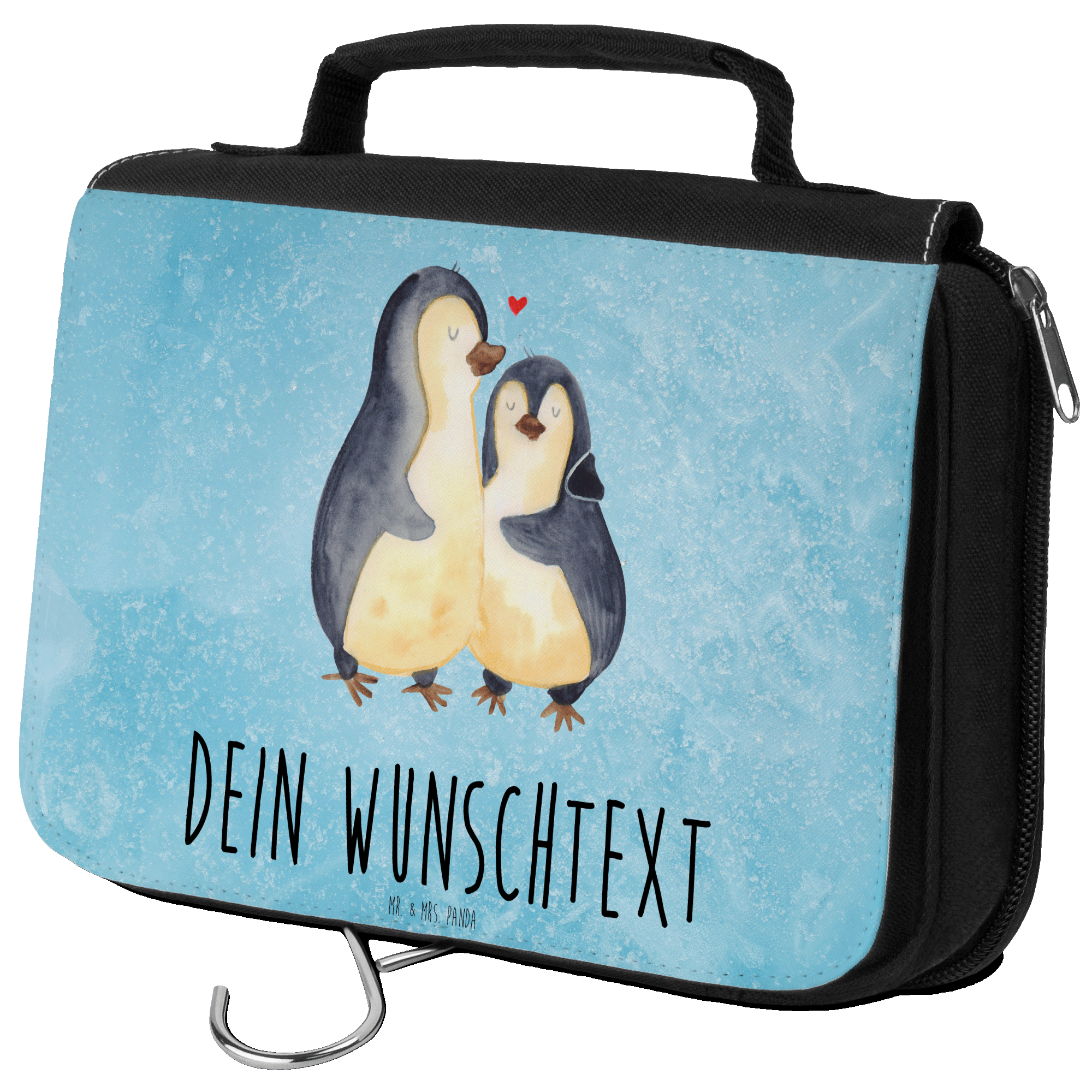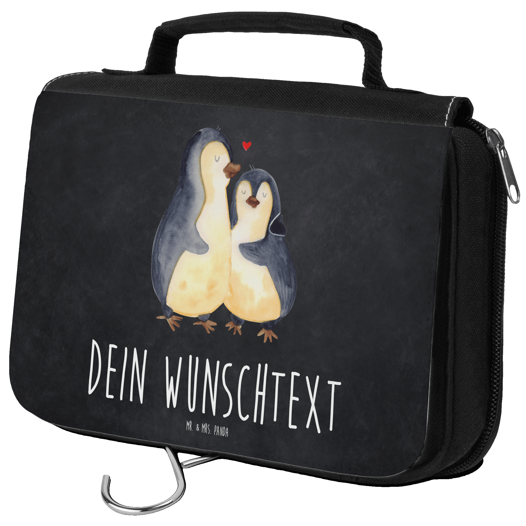Personalisierter Kulturbeutel Pinguin umarmend - Kreidetafel