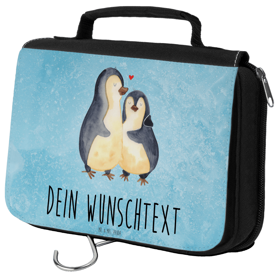 Personalisierter Kulturbeutel Pinguin umarmend - Eisblau