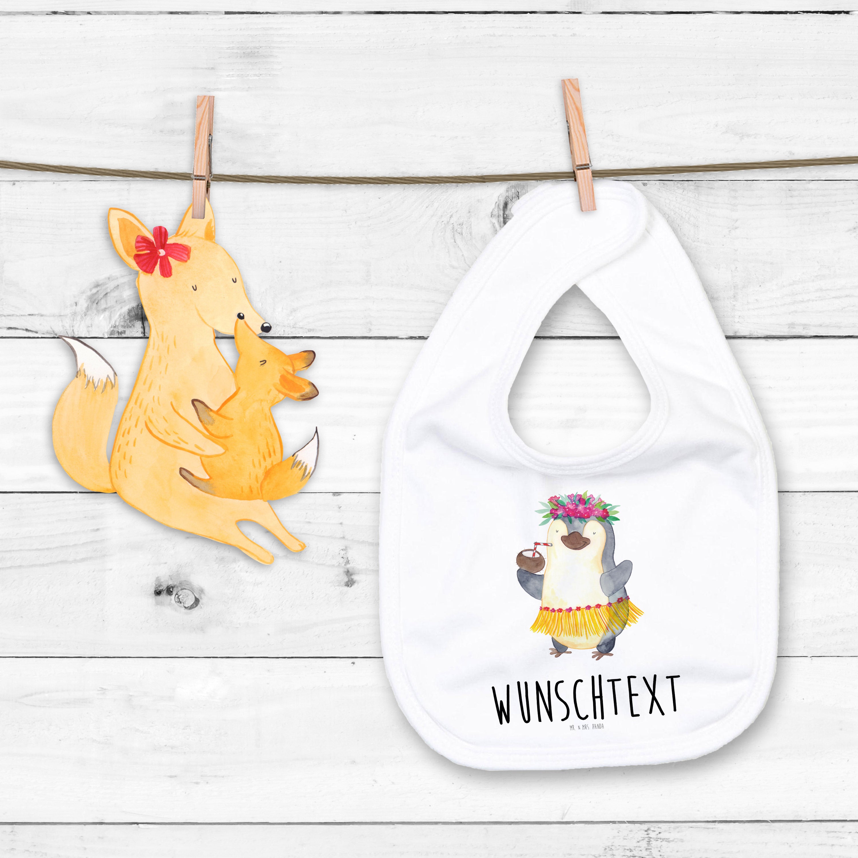 Personalisiertes Babylätzchen Pinguin Kokosnuss