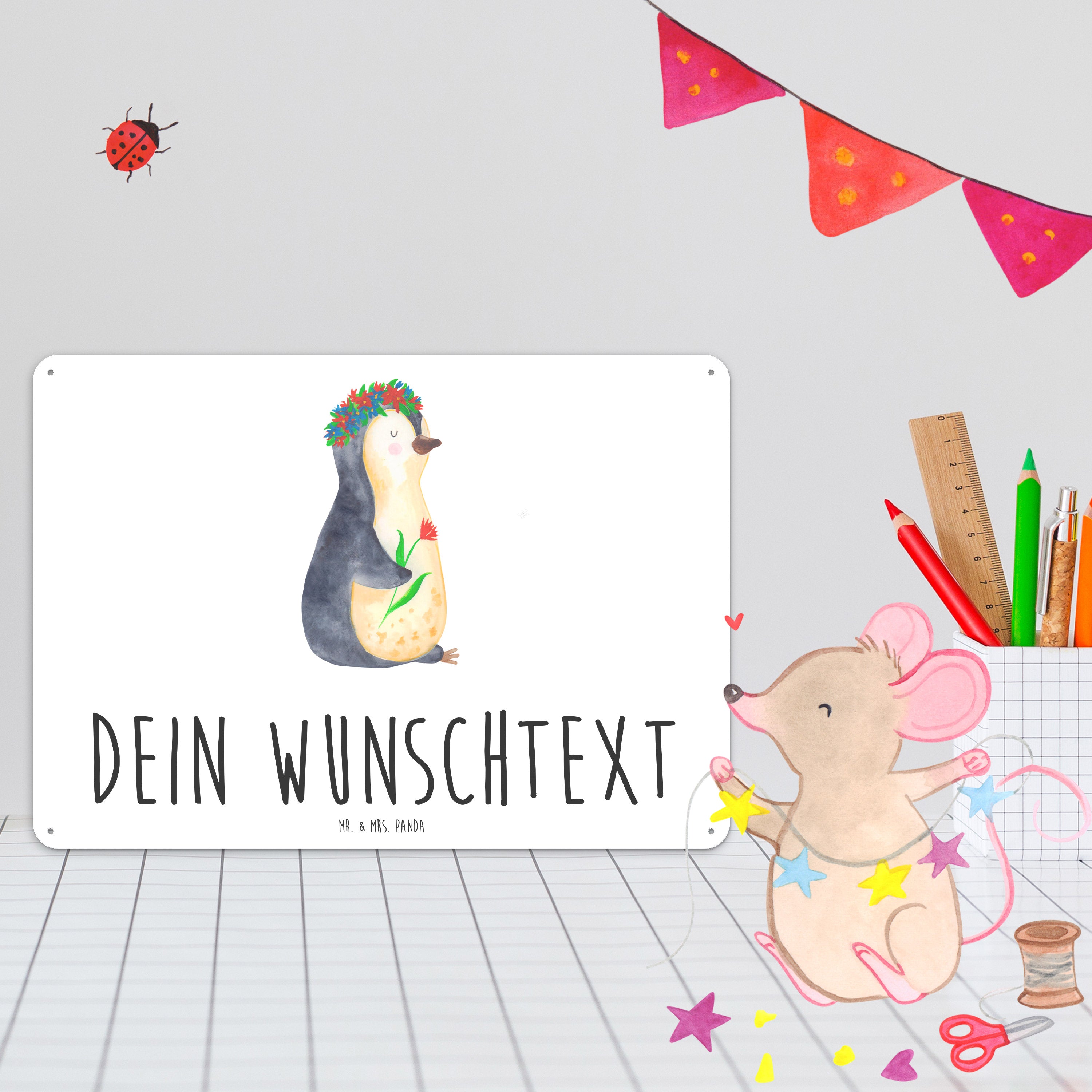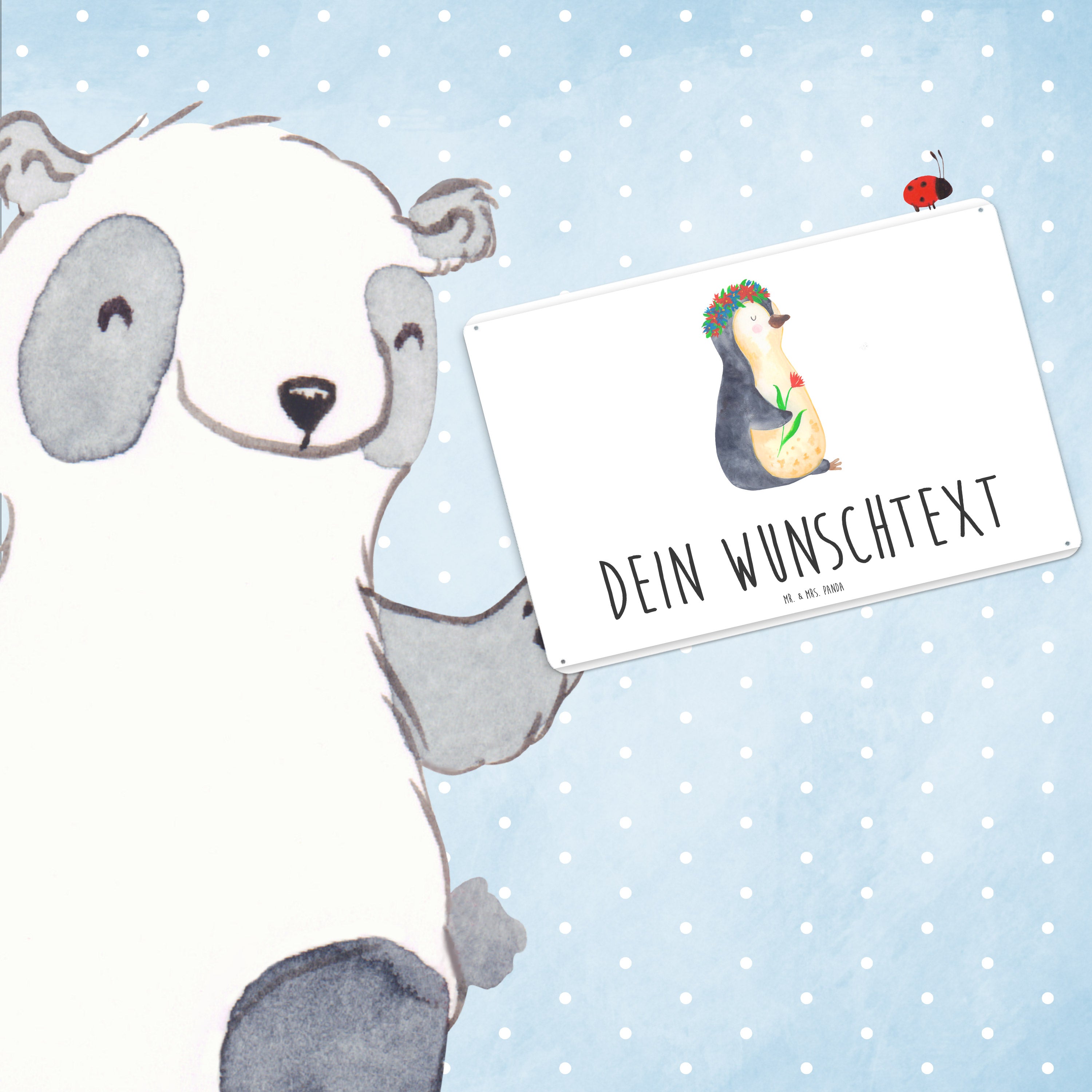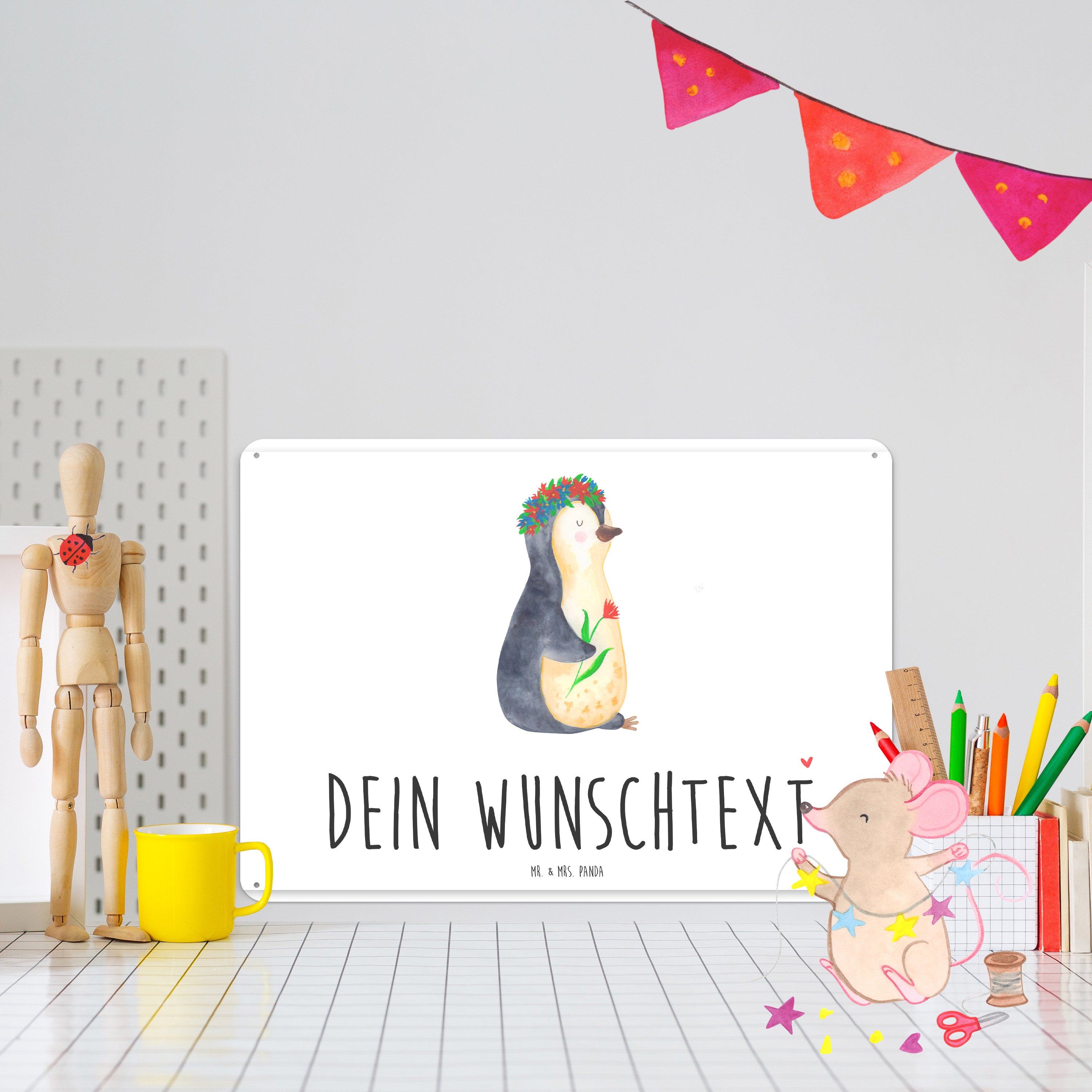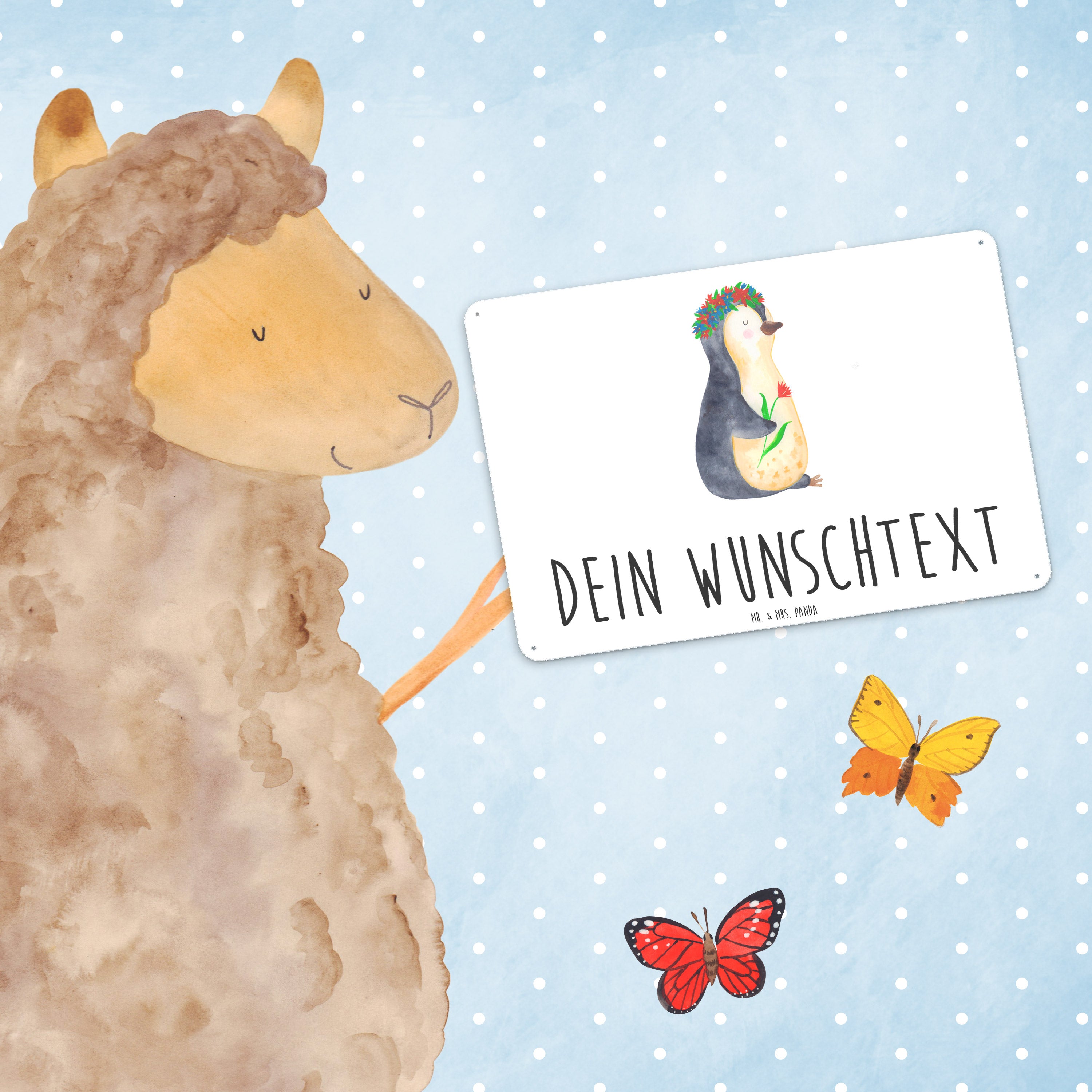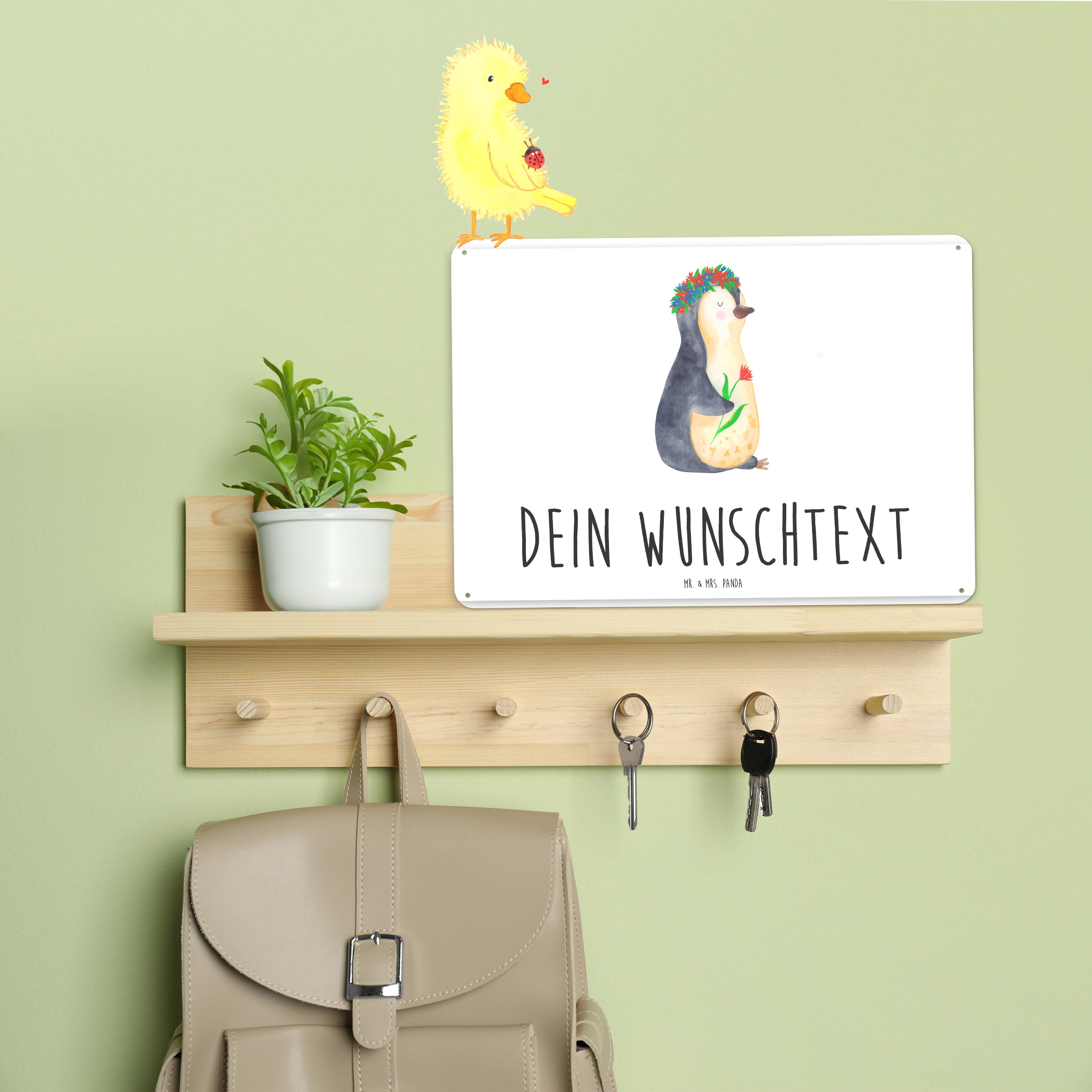 Personalisiertes Blechschild Pinguin Blumenkranz - DIN A3