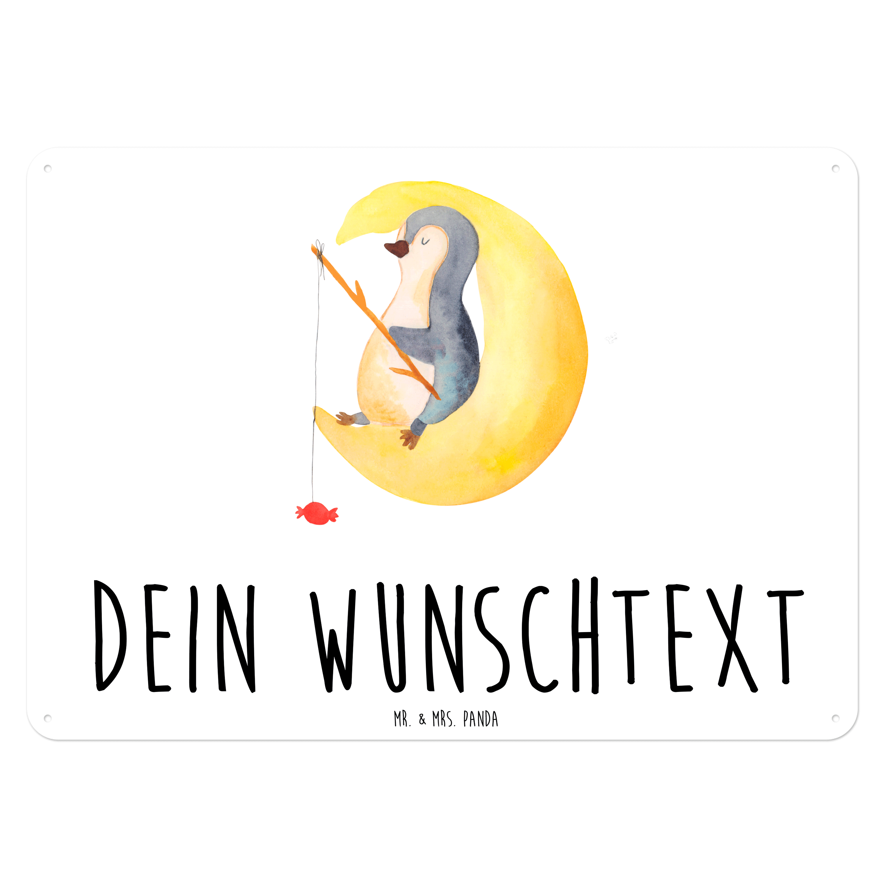 Personalisiertes Blechschild Pinguin Mond - DIN A6