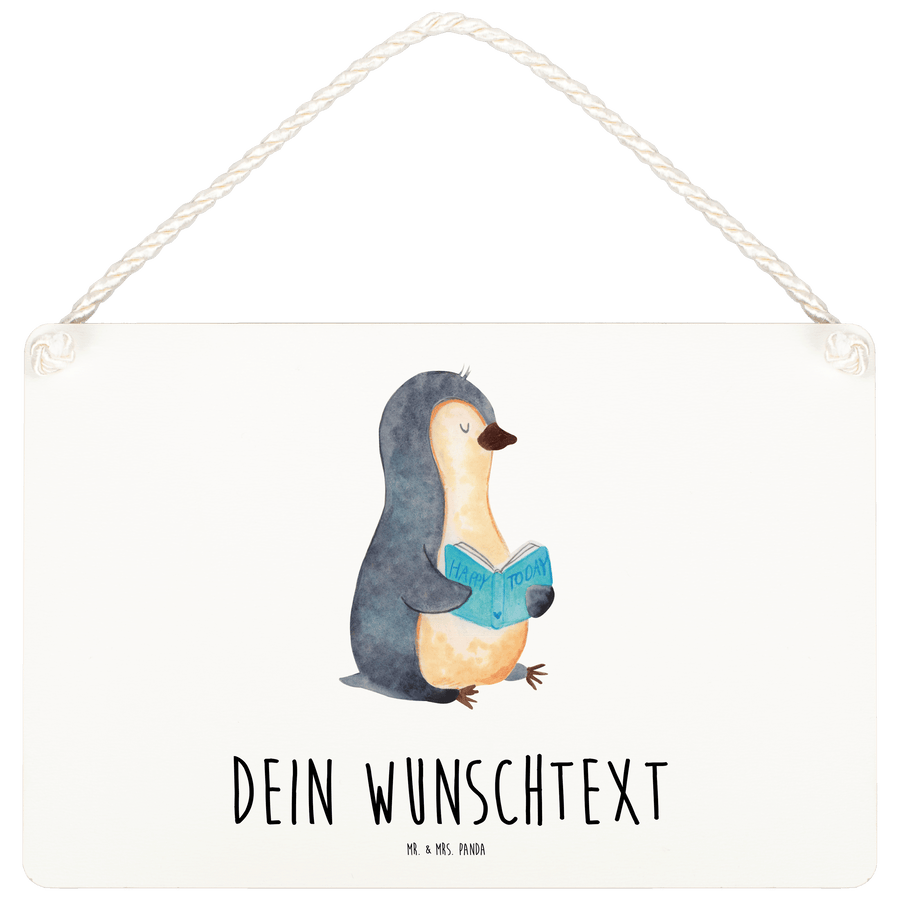 Personalisiertes Deko Schild Pinguin Buch - Weiß - DIN A5