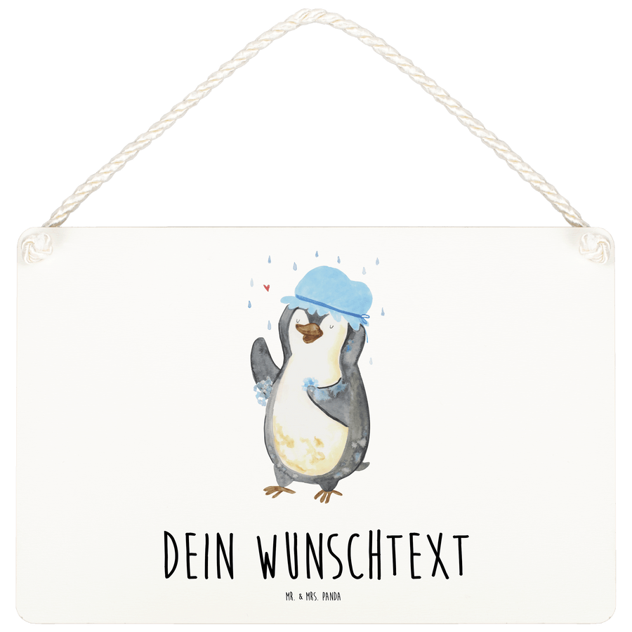 Personalisiertes Deko Schild Pinguin duscht - Weiß - DIN A4