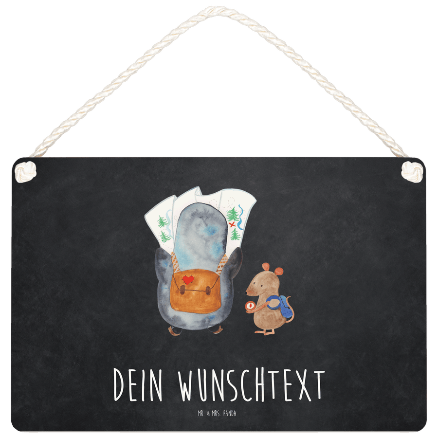 Personalisiertes Deko Schild Pinguin & Maus Wanderer - Kreidetafel - DIN A6