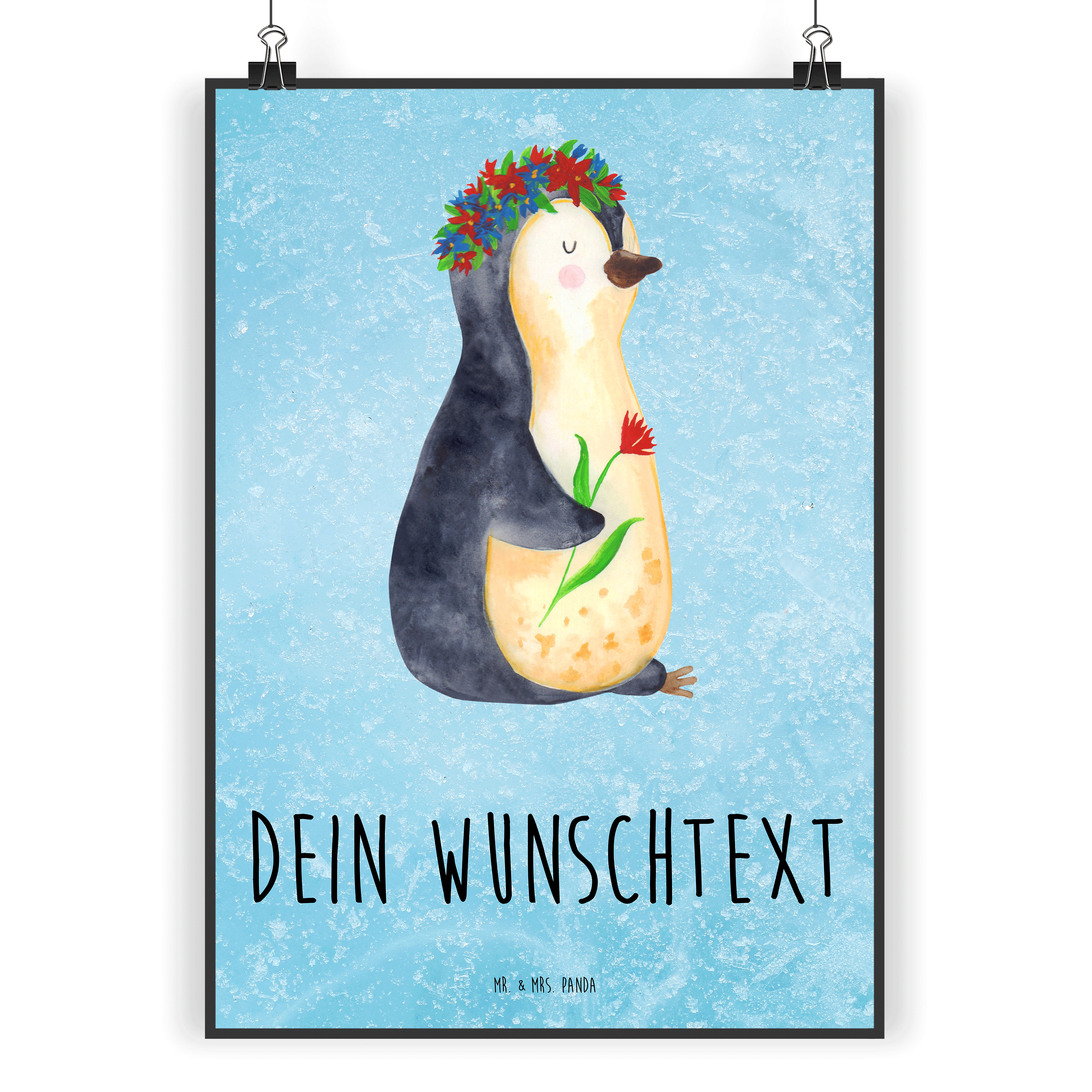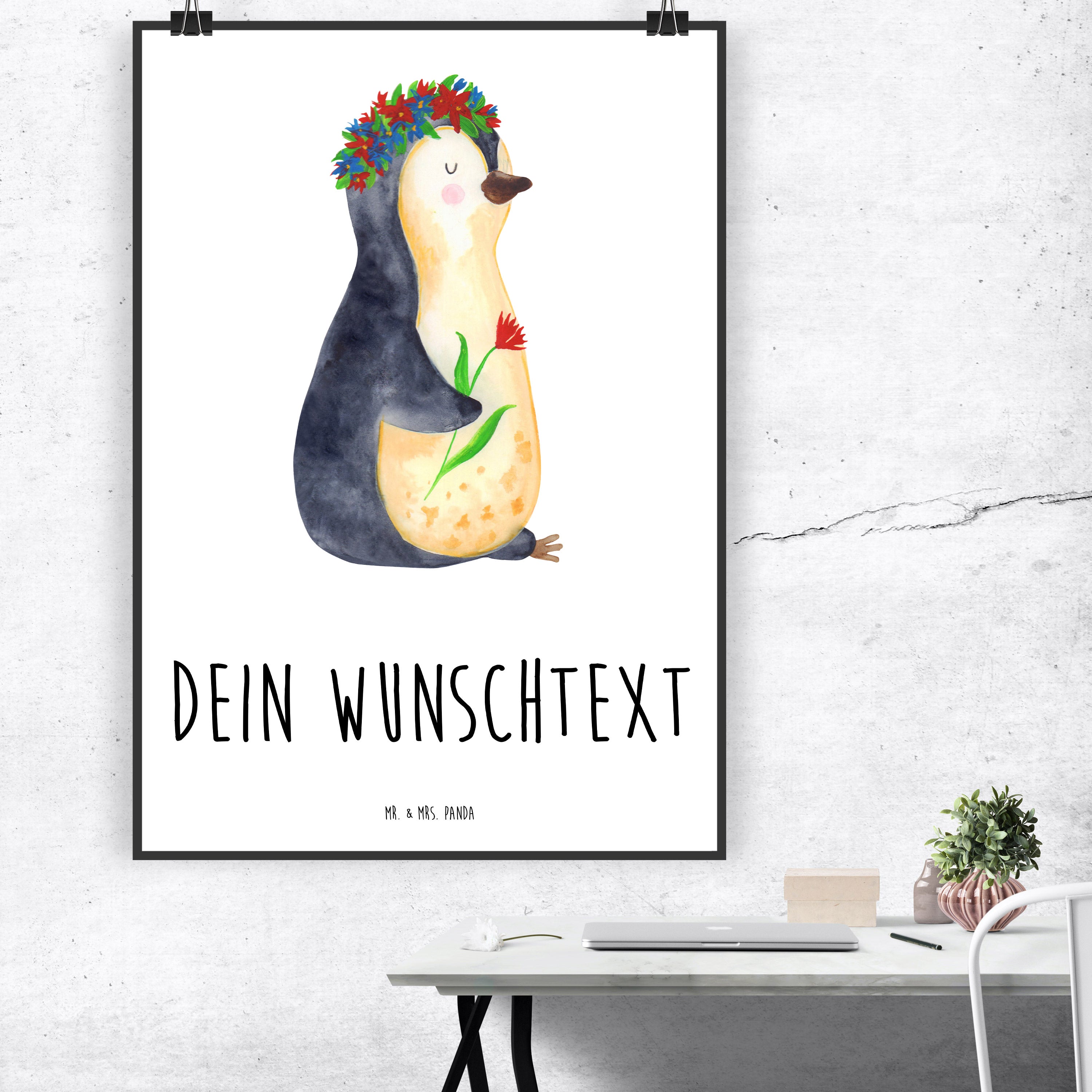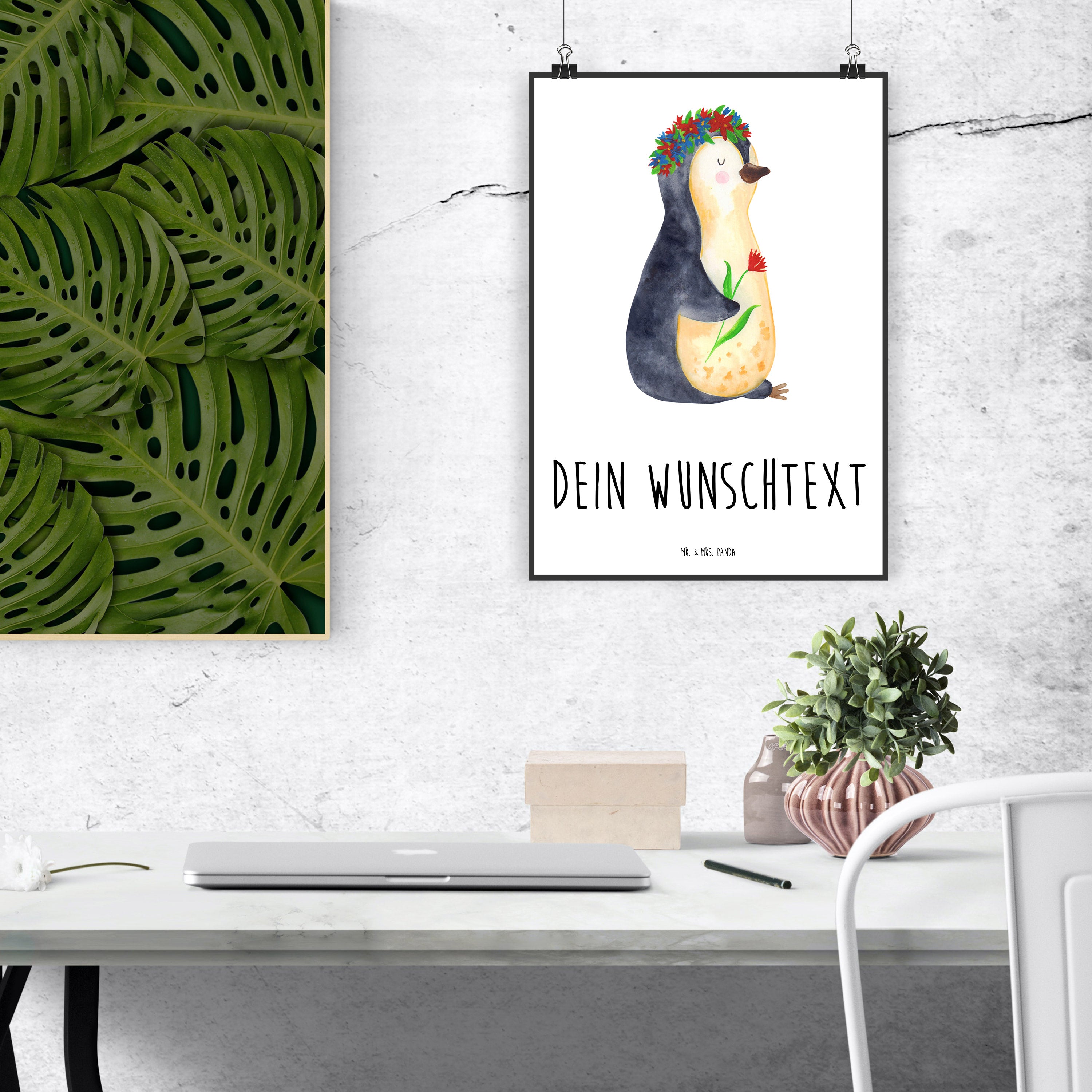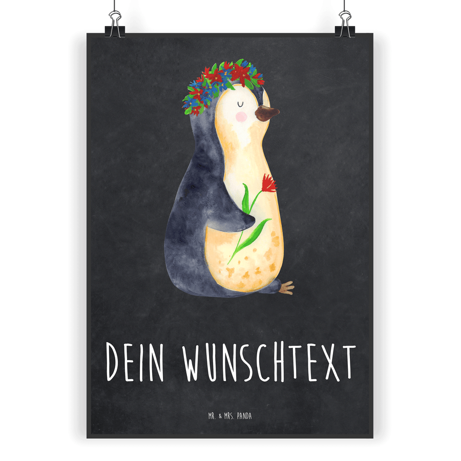 Personalisiertes Poster Pinguin Blumenkranz - Kreidetafel - DIN A5