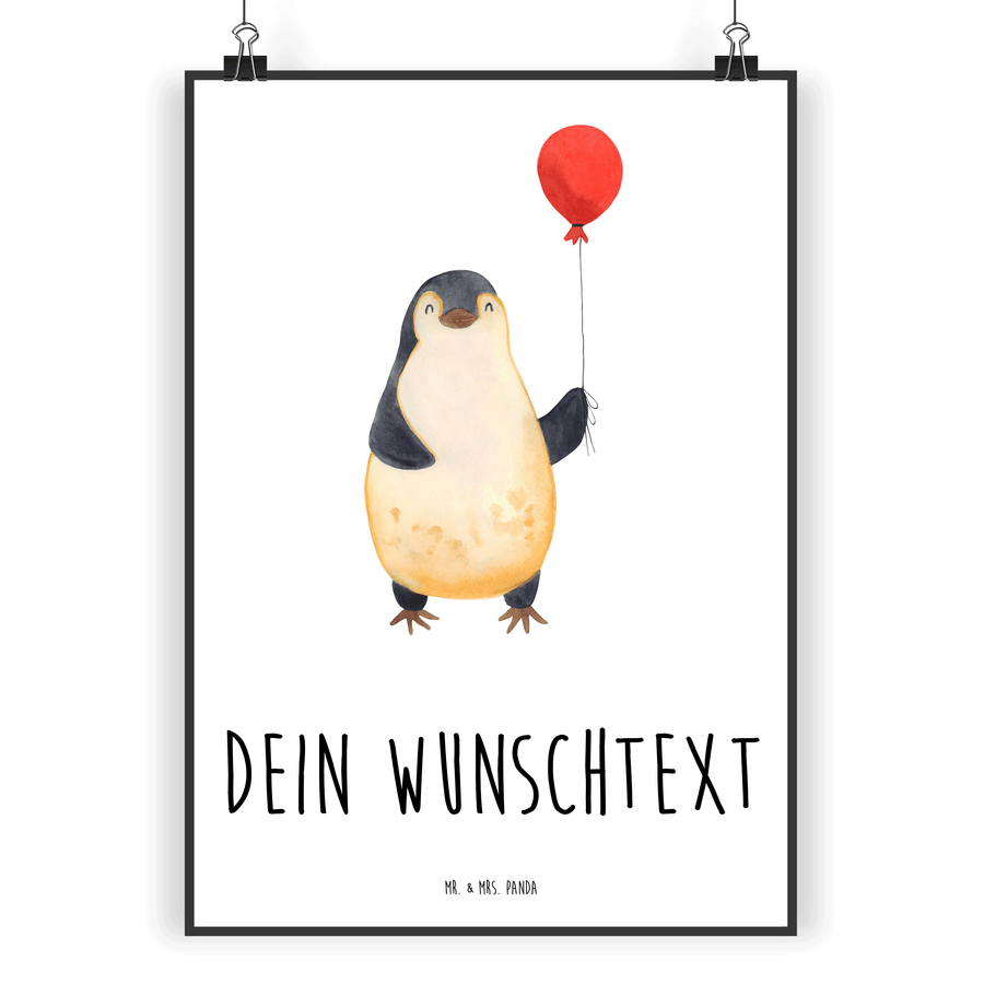 Personalisiertes Poster Pinguin Luftballon - Weiß - DIN A5