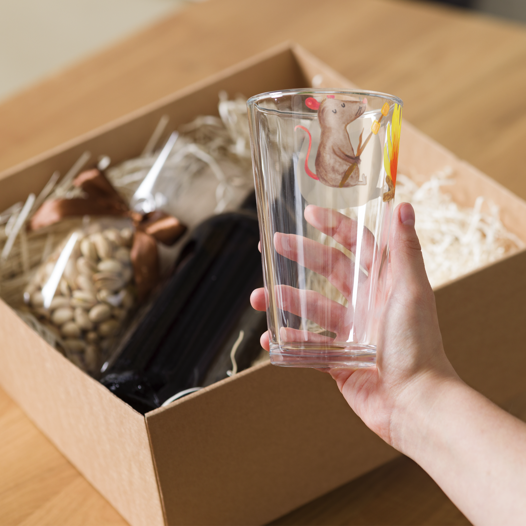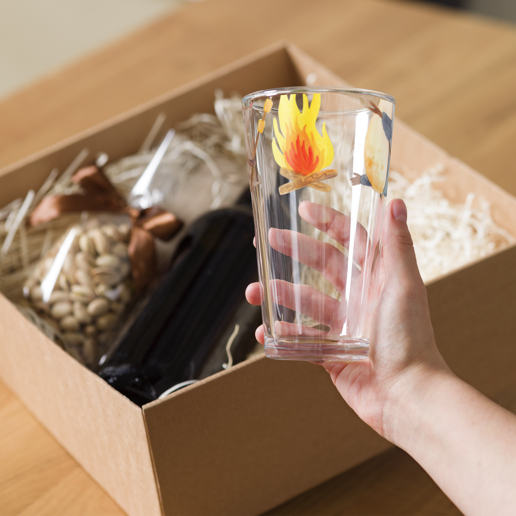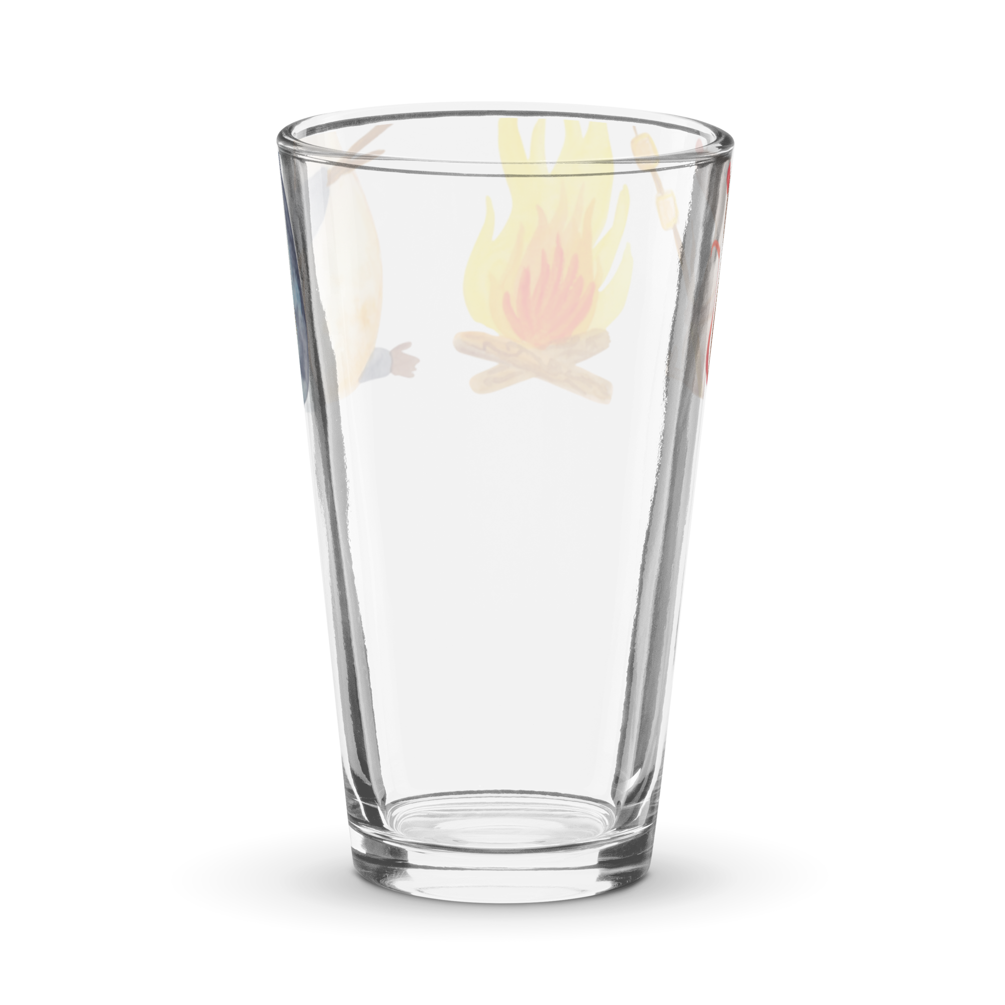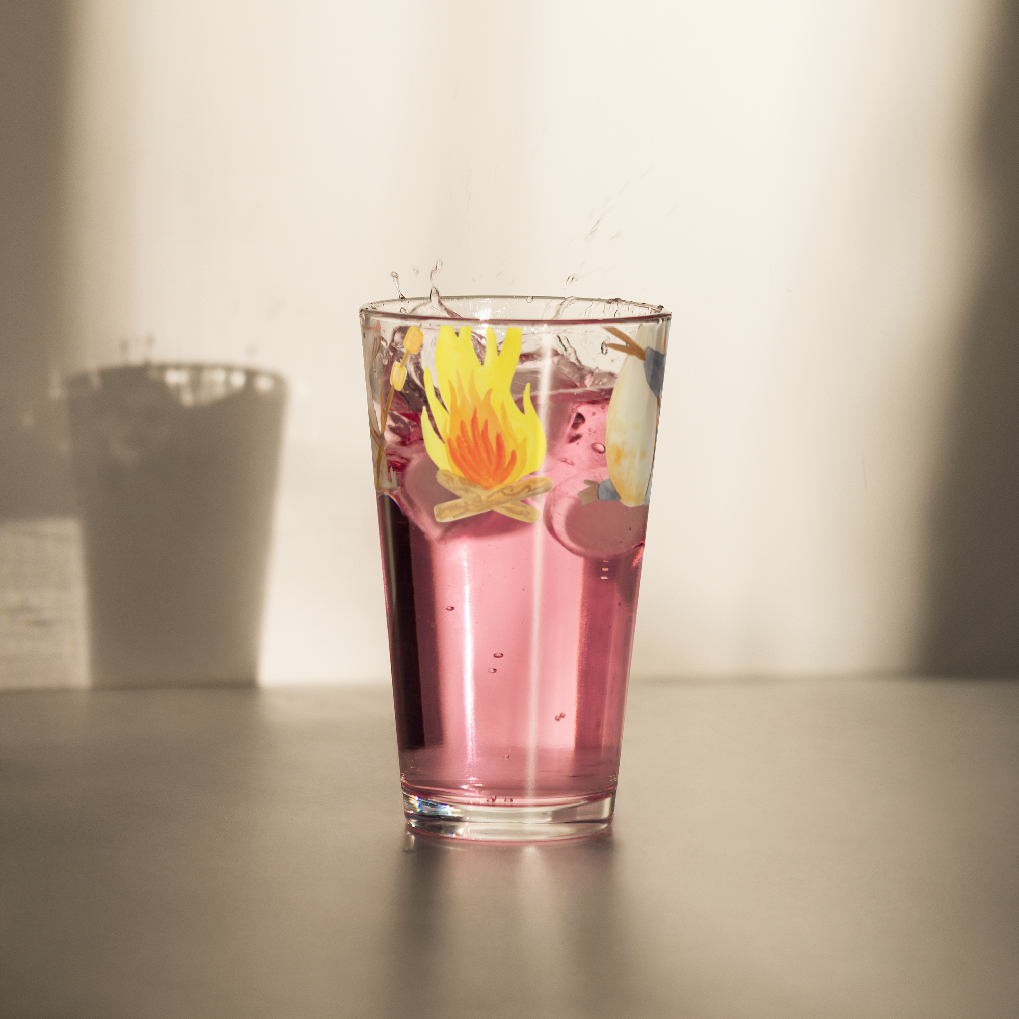 Personalisiertes Trinkglas Pinguin Lagerfeuer