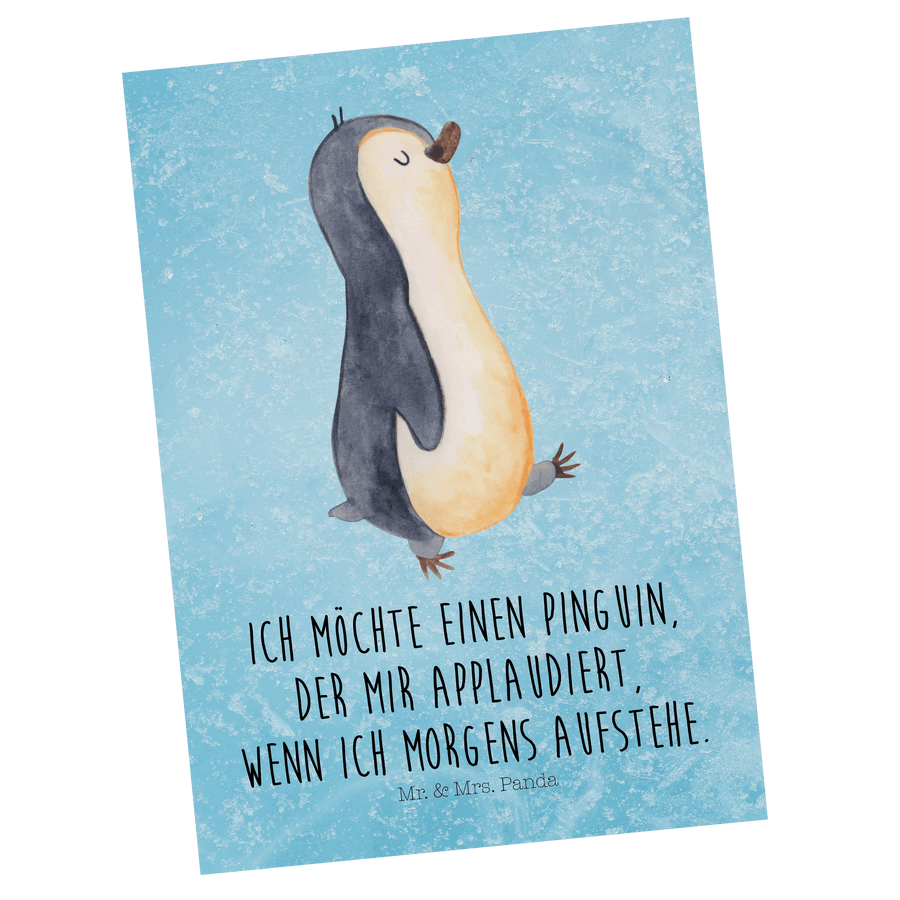 Postkarte Pinguin marschierend - mit Spruch - Eisblau