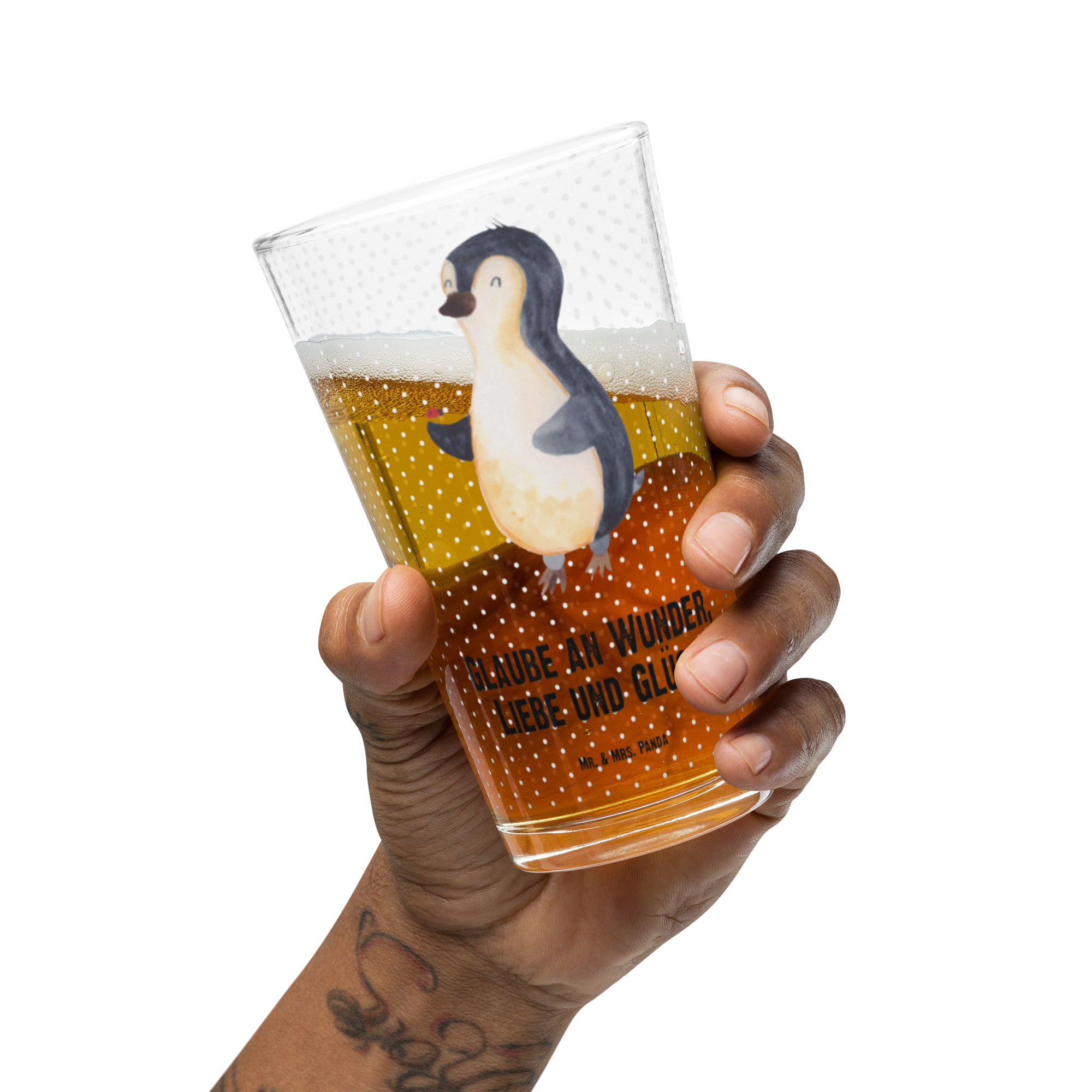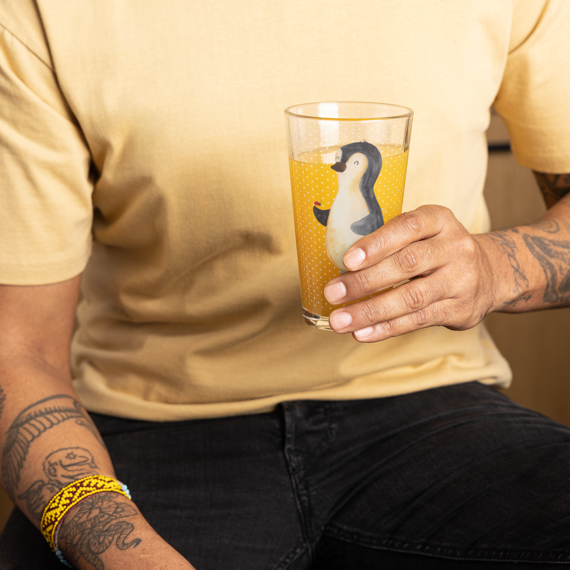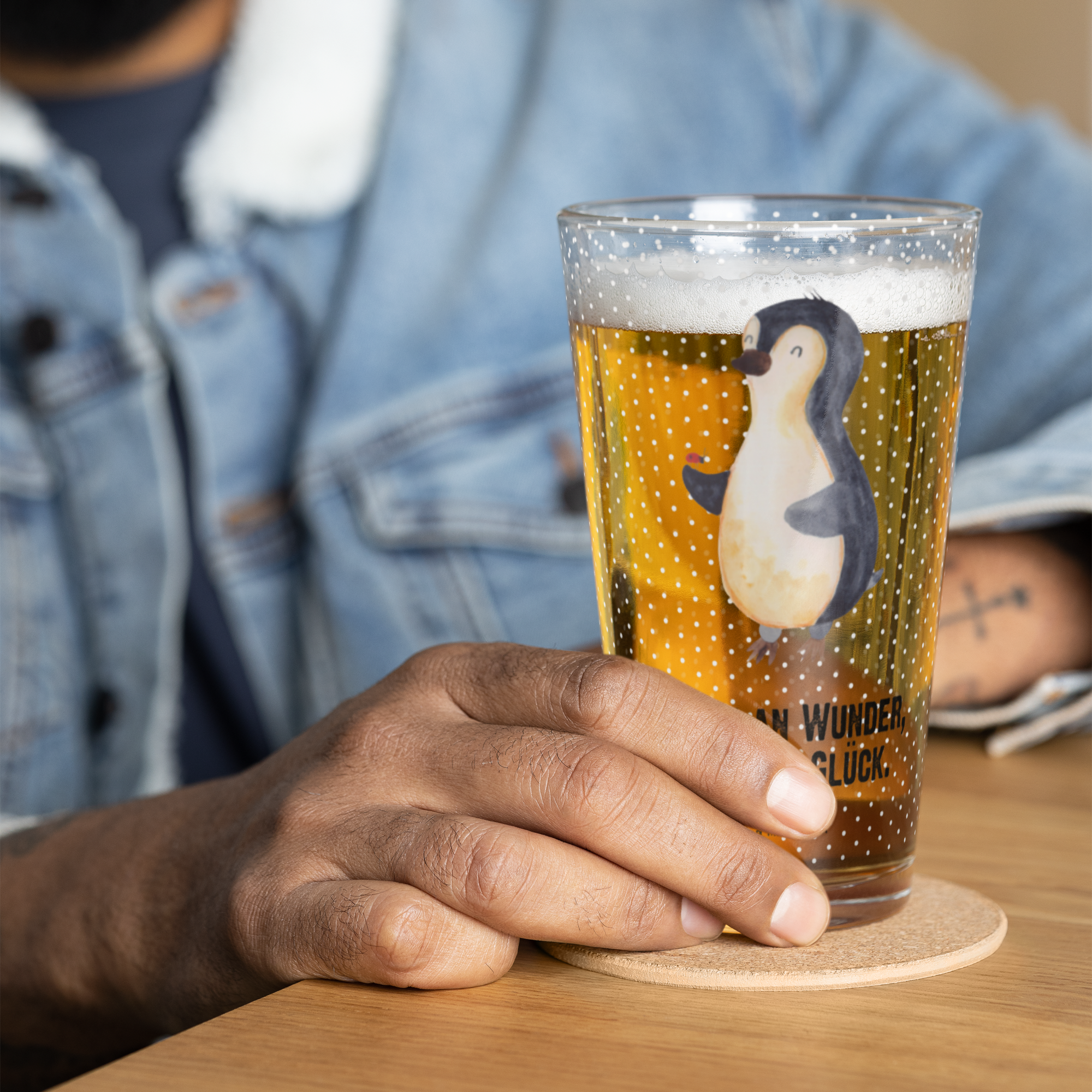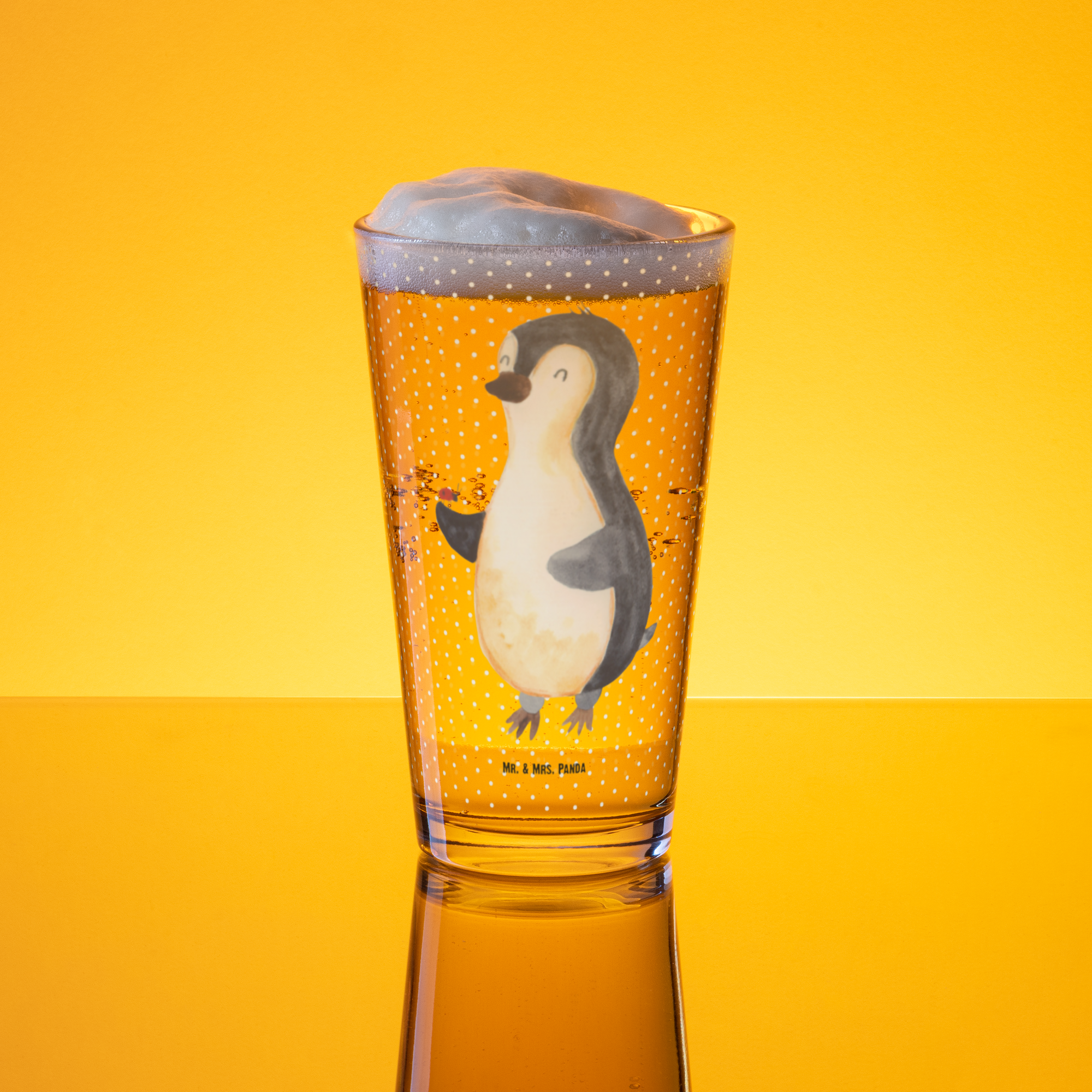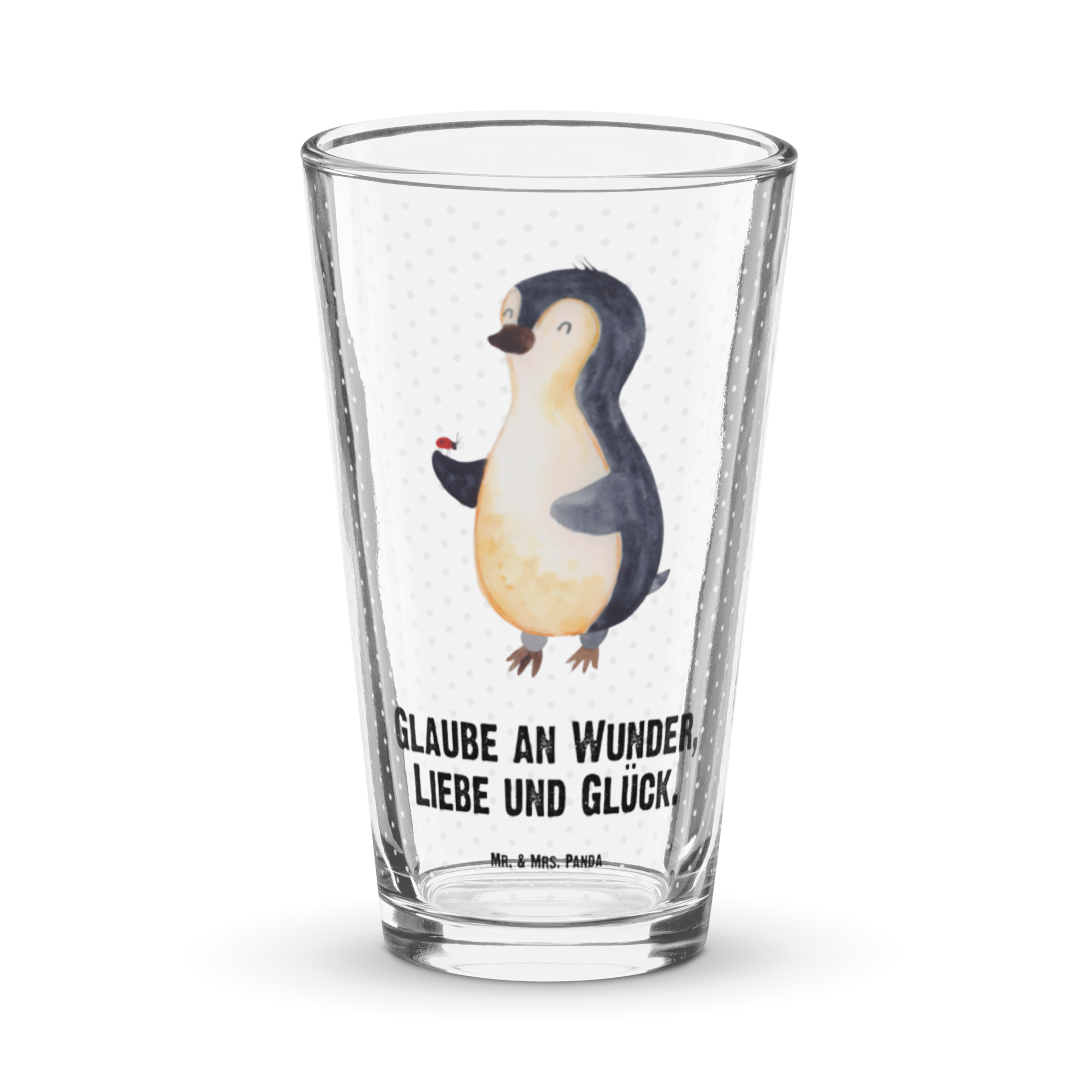 Premium Trinkglas Pinguin Marienkäfer - mit Spruch