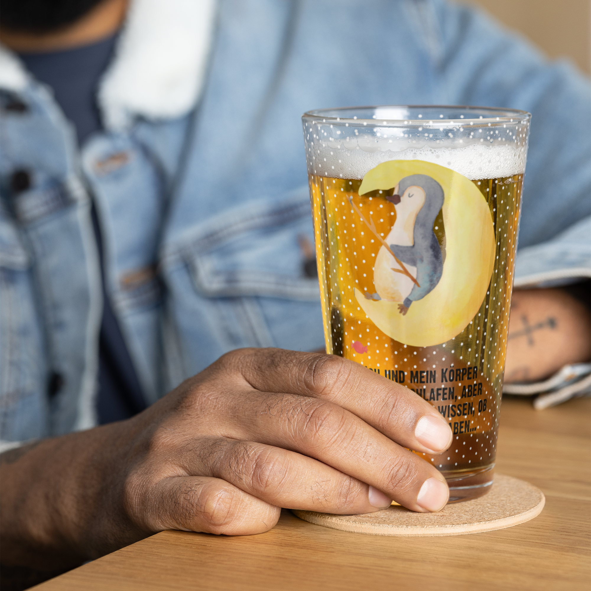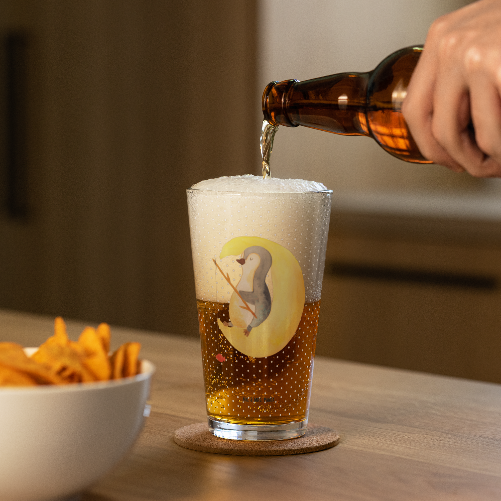 Premium Trinkglas Pinguin Mond - mit Spruch