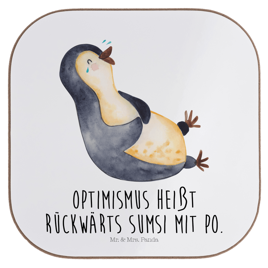 Quadratische Untersetzer Pinguin lachend - mit Spruch - Weiß