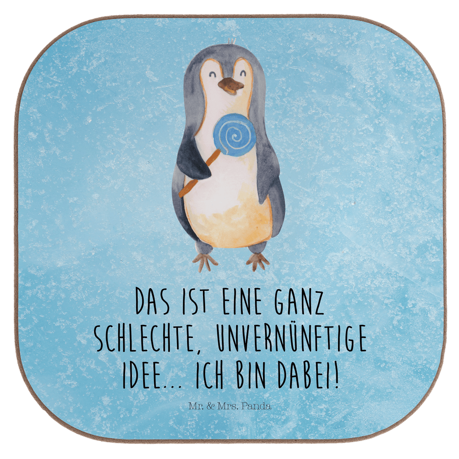Quadratische Untersetzer Pinguin Lolli - mit Spruch - Eisblau