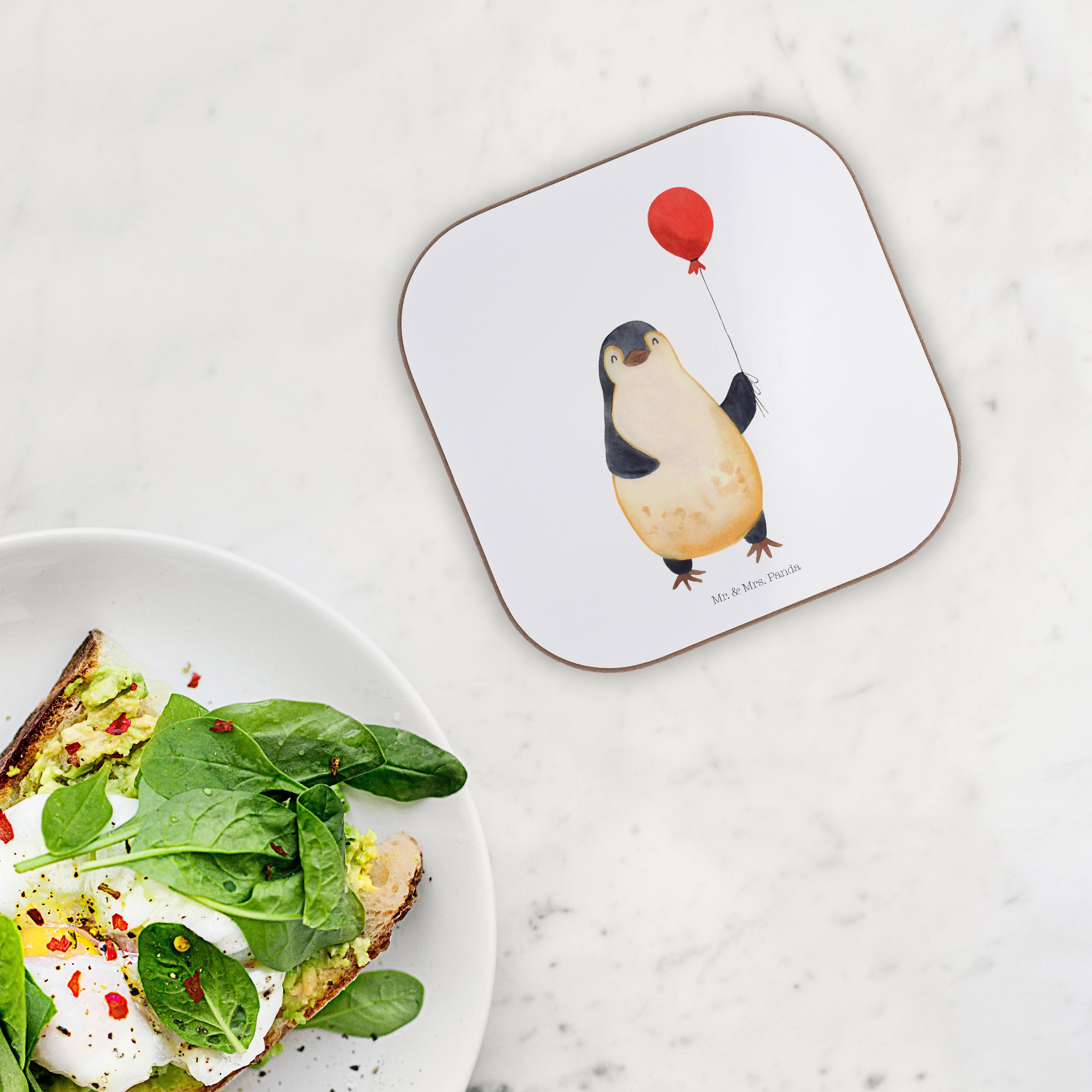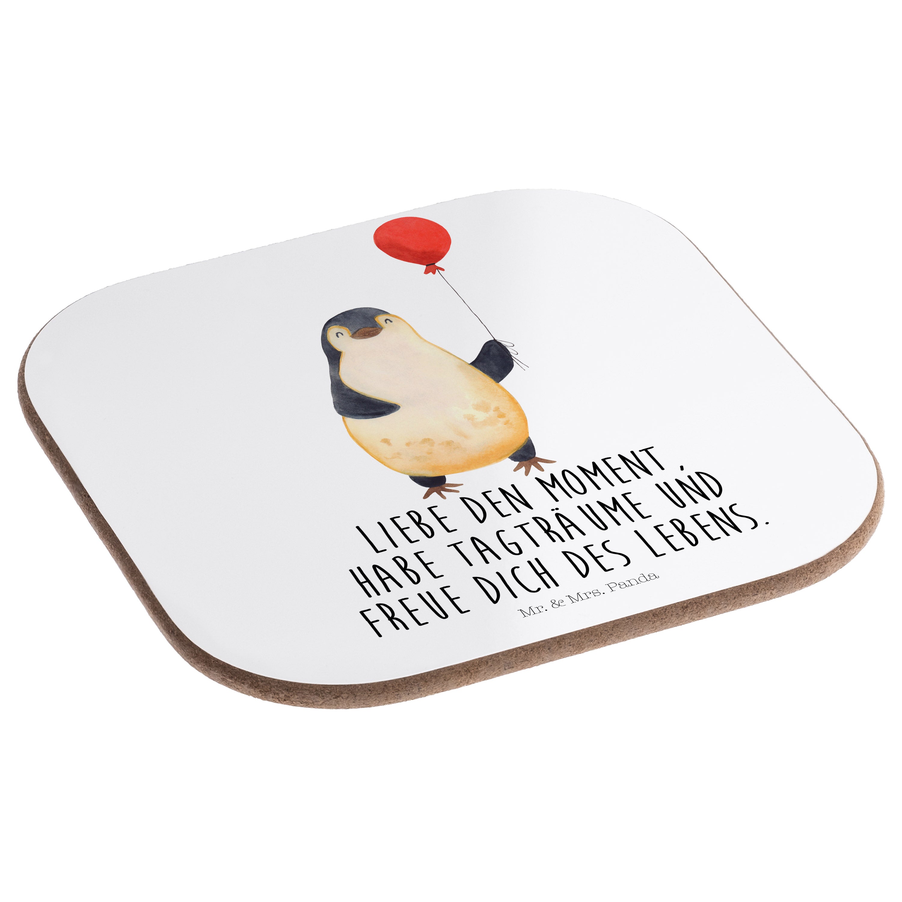 Quadratische Untersetzer Pinguin Luftballon Bierdeckel, Glasuntersetzer, Untersetzer Gläser, Getränkeuntersetzer, Pinguin, Pinguine, Luftballon, Tagträume, Lebenslust, Geschenk Freundin, Geschenkidee, beste Freundin, Motivation, Neustart, neues Leben, Liebe, Glück