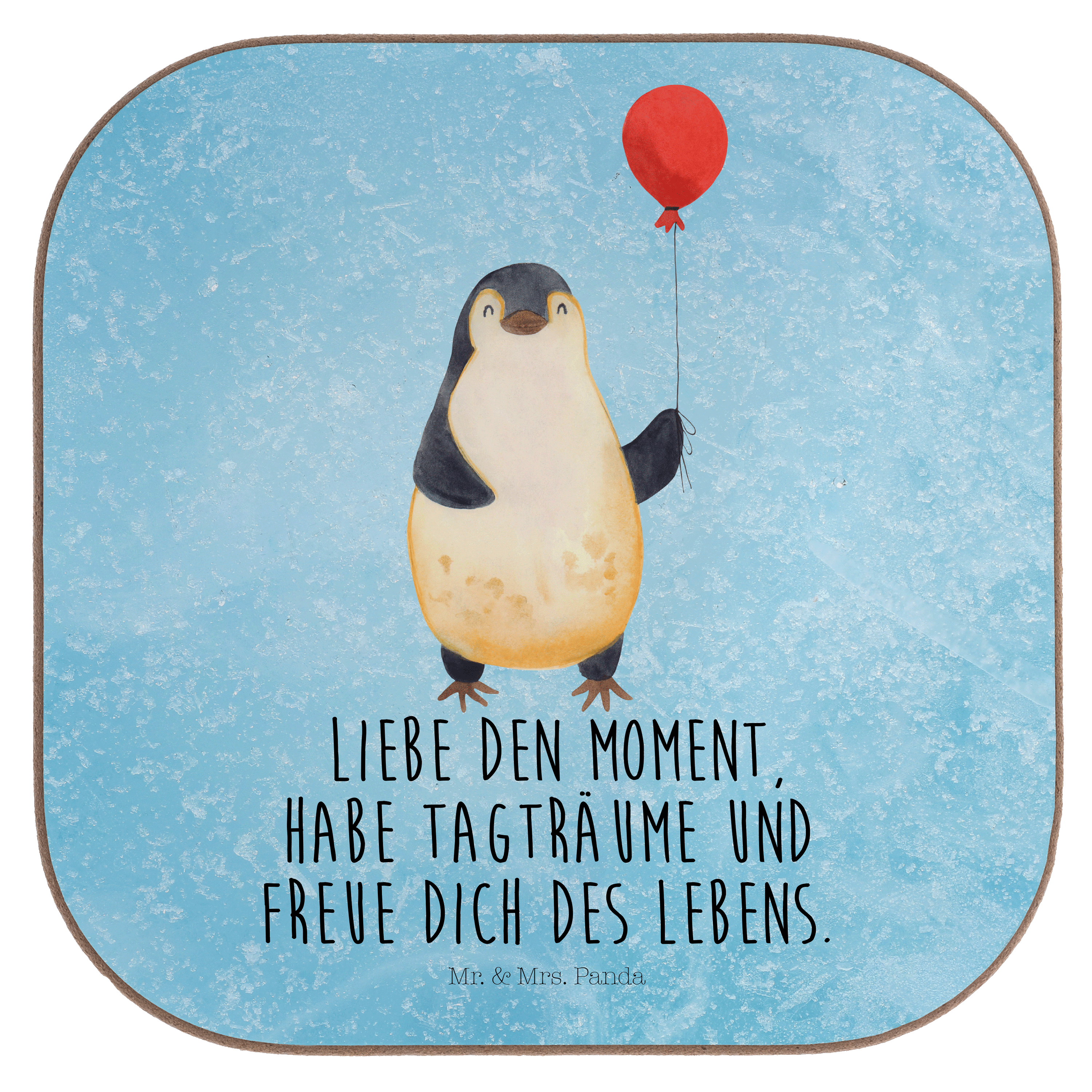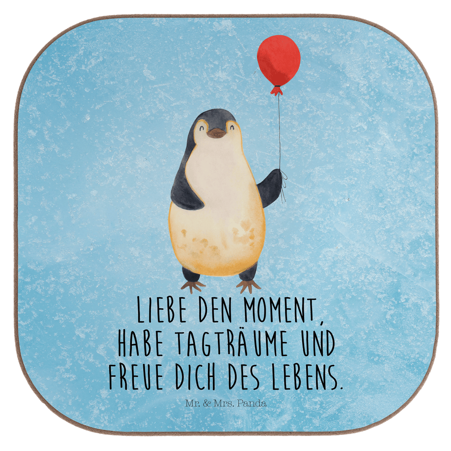 Quadratische Untersetzer Pinguin Luftballon - mit Spruch - Eisblau