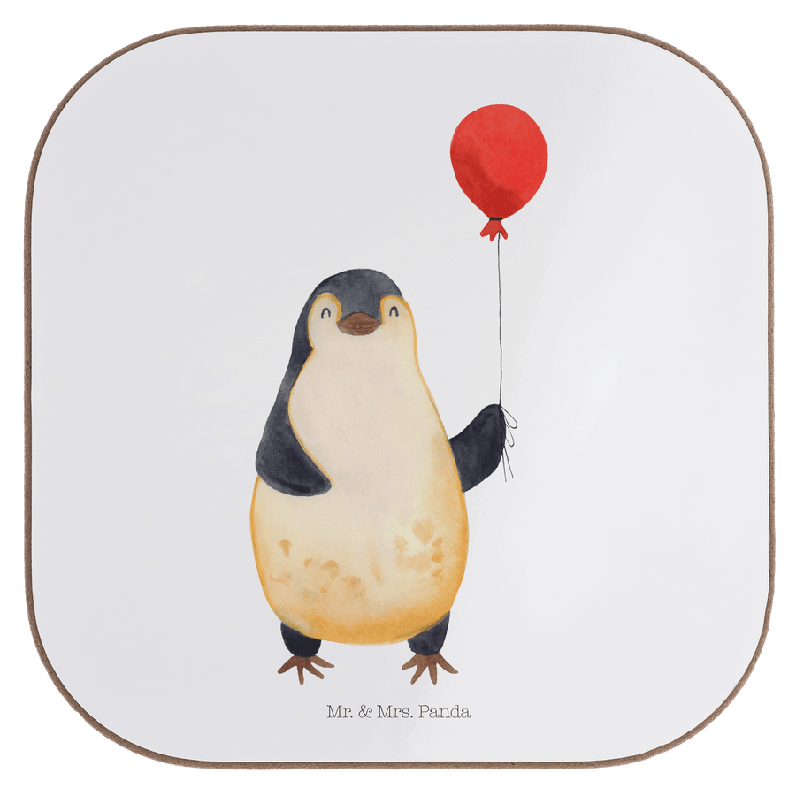 Quadratische Untersetzer Pinguin Luftballon - ohne Spruch - Weiß