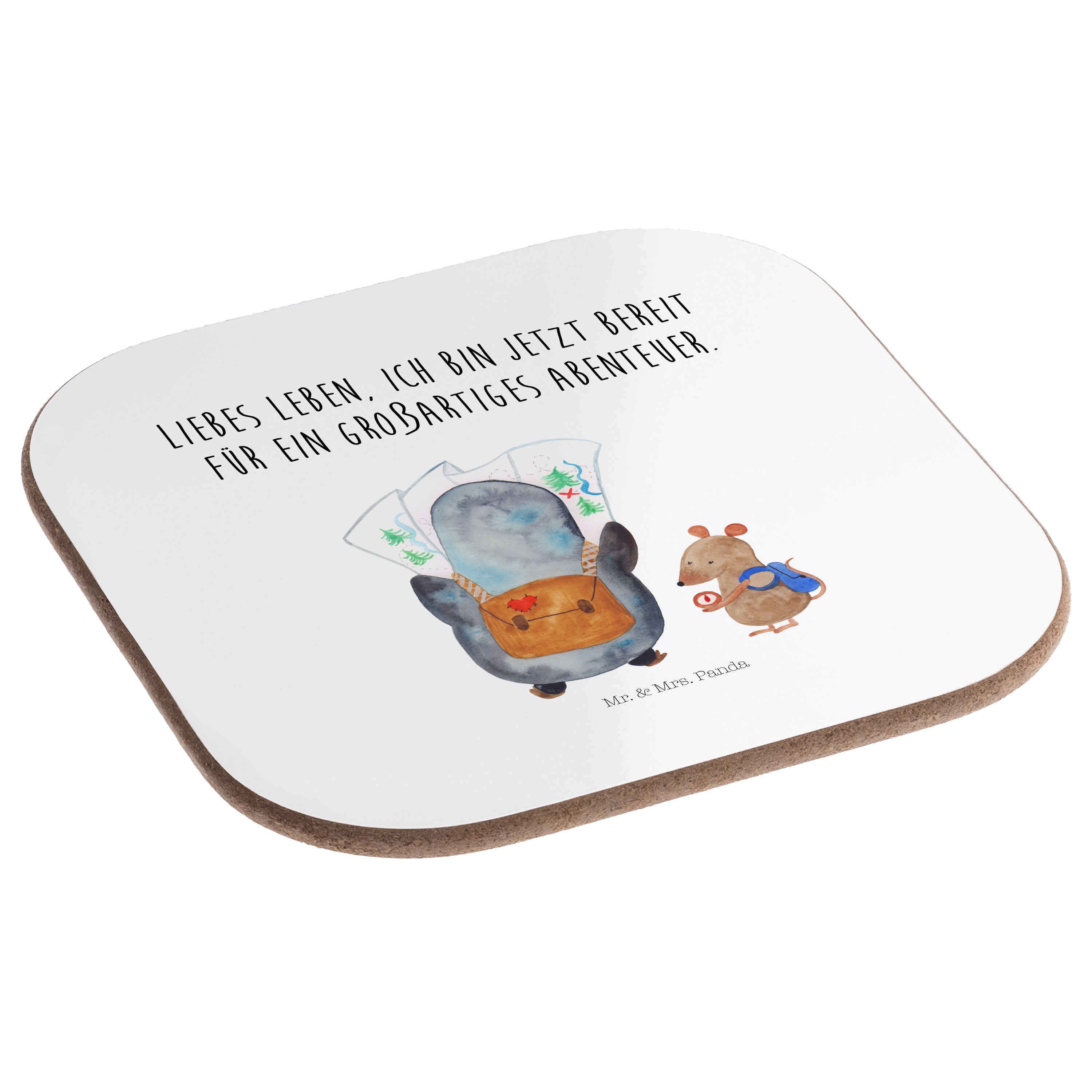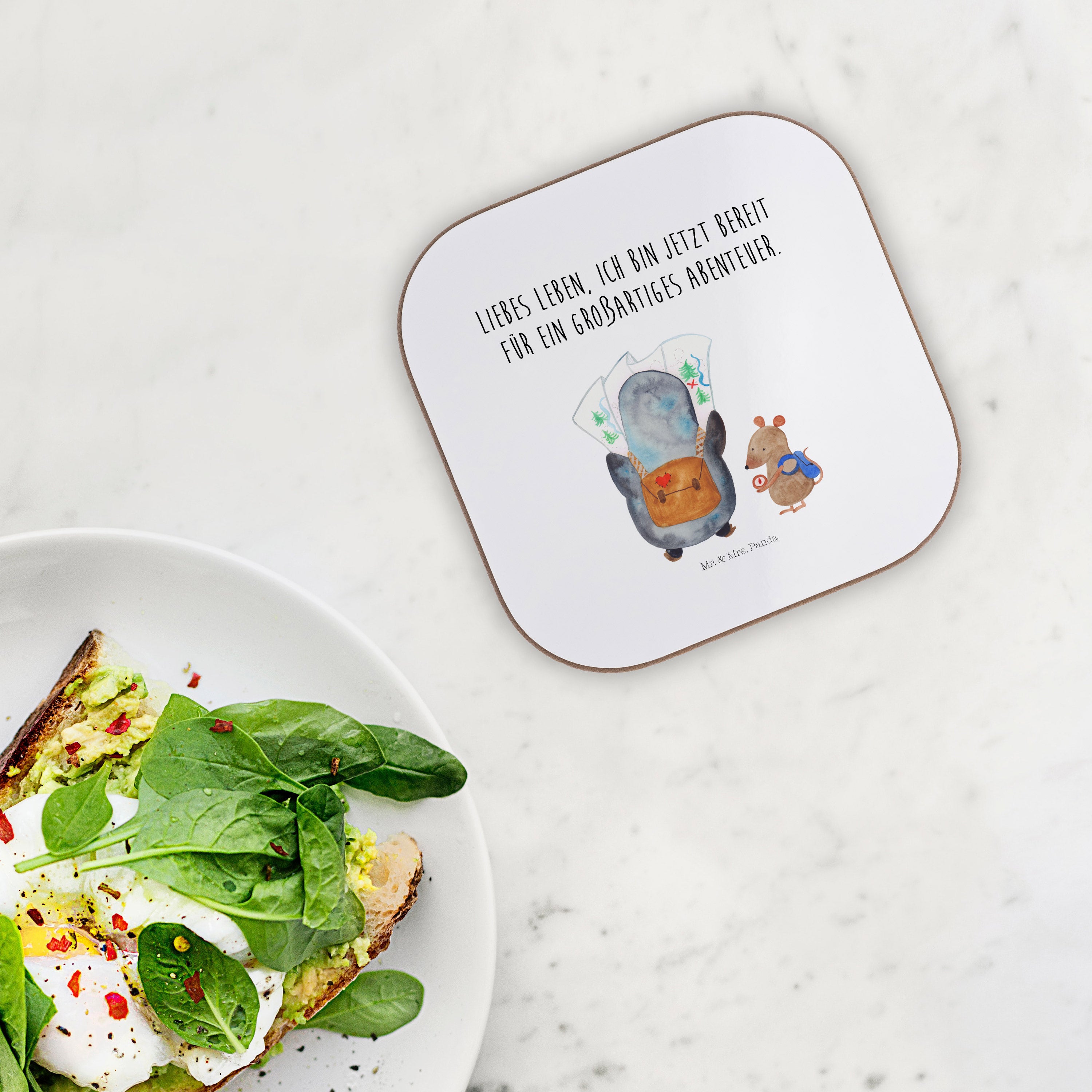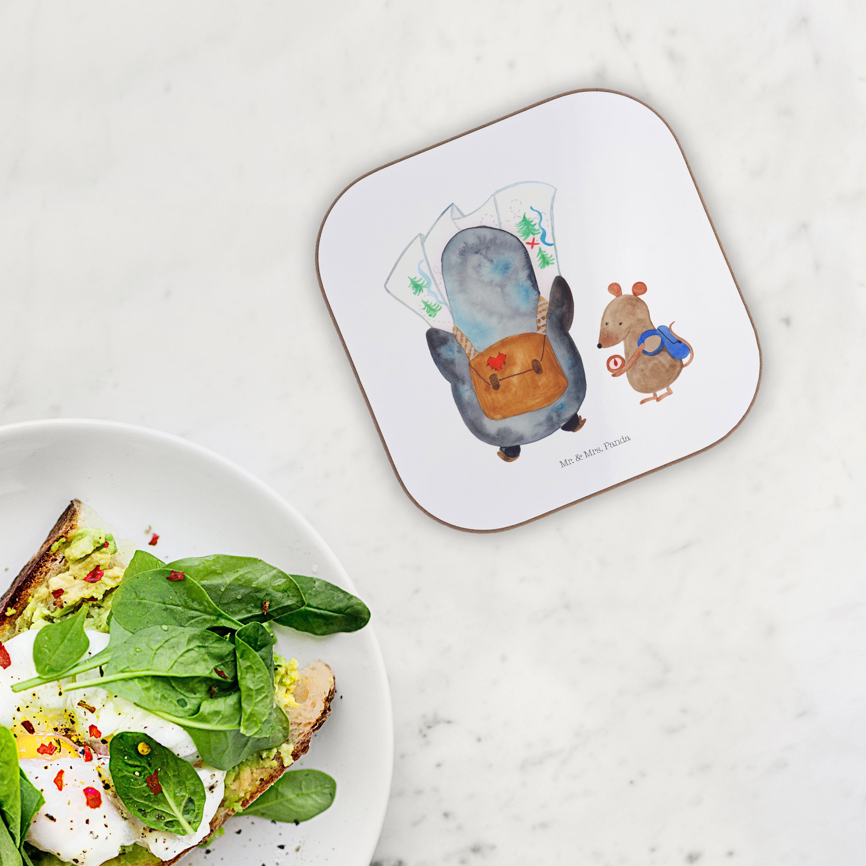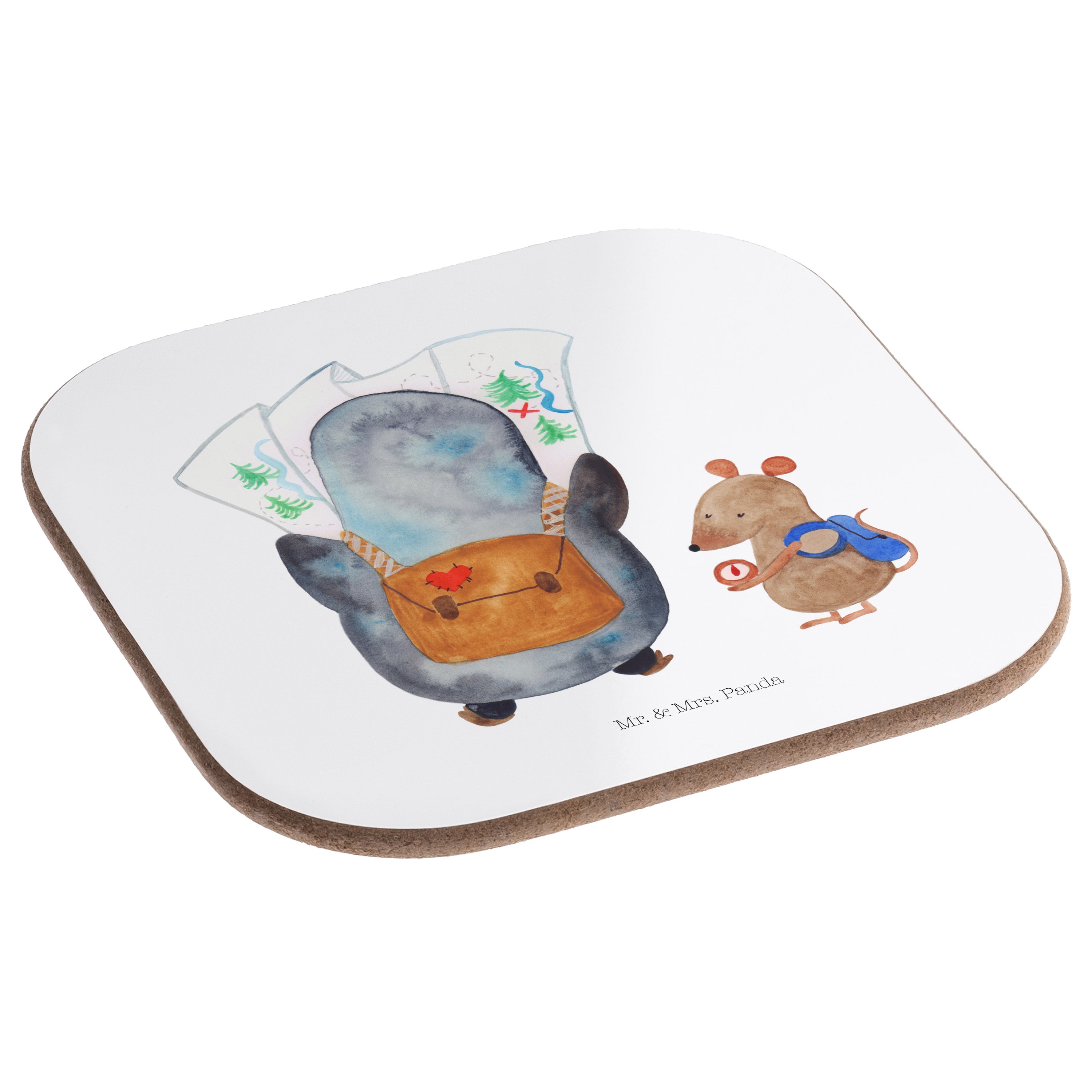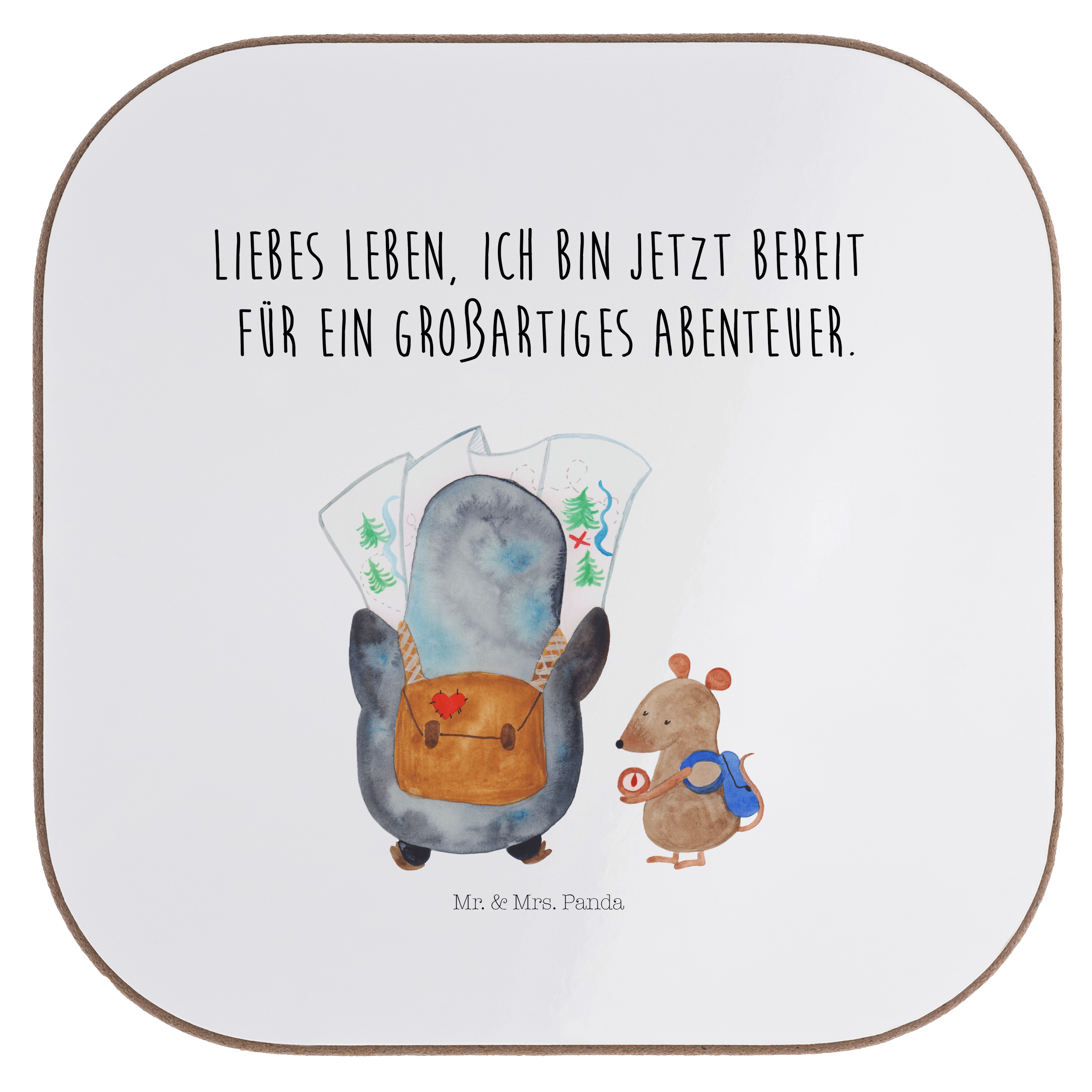 Quadratische Untersetzer Pinguin & Maus Wanderer - mit Spruch - Eisblau