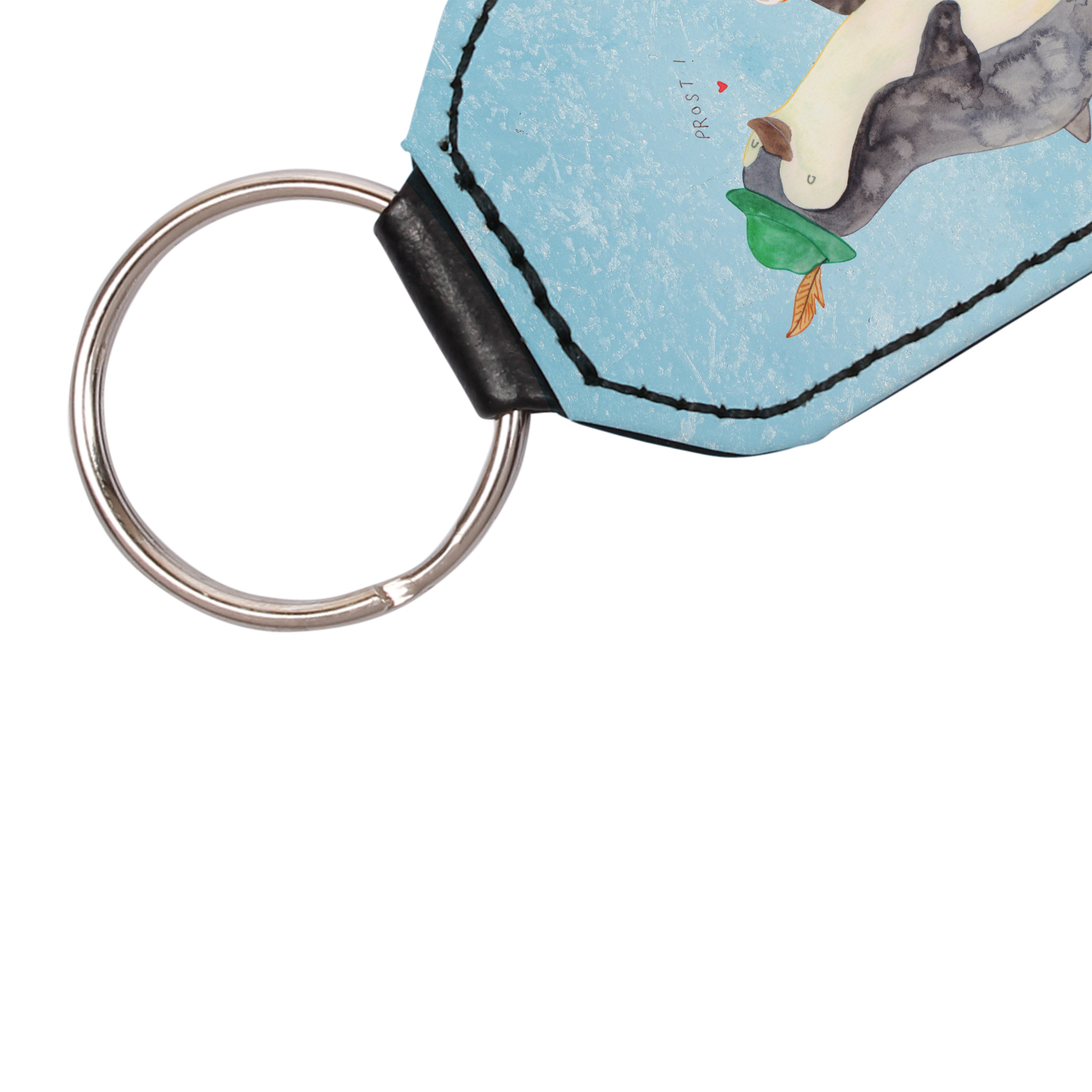 Rechteckig Schlüsselanhänger Pinguin Bier - Eisblau