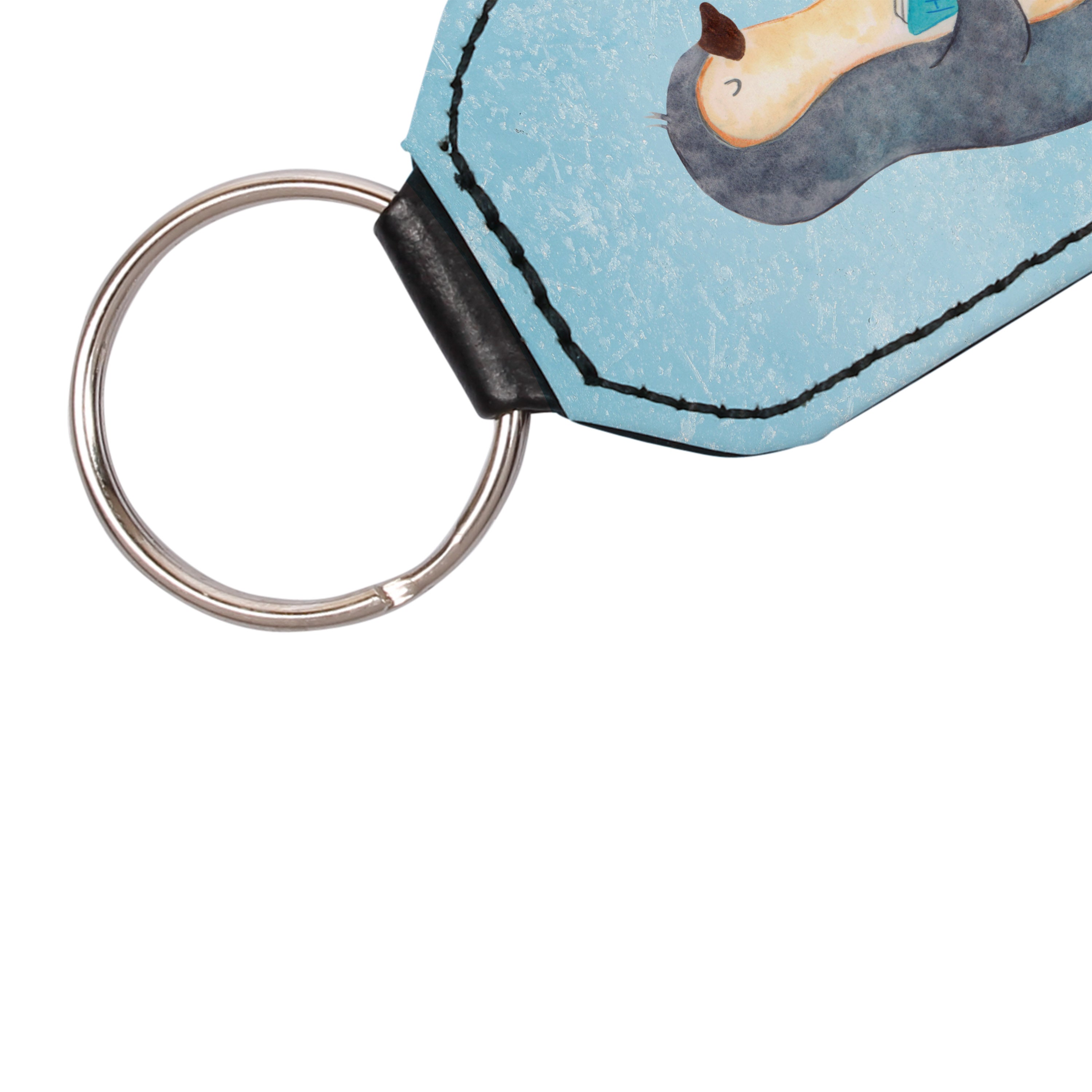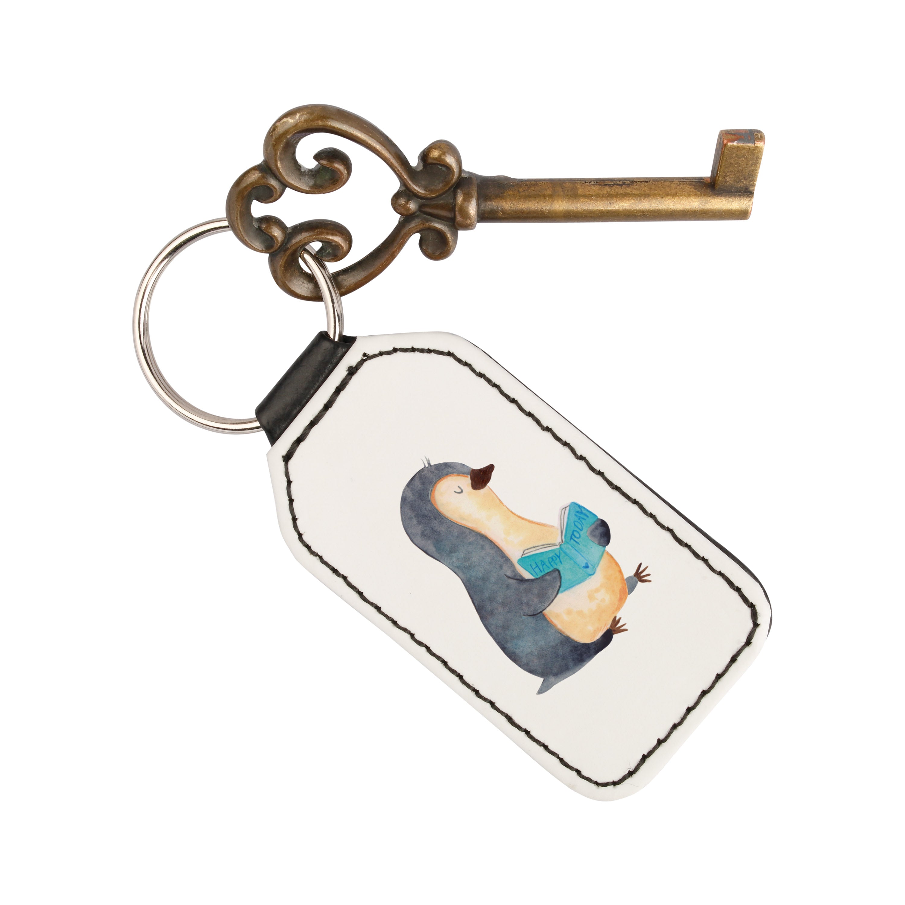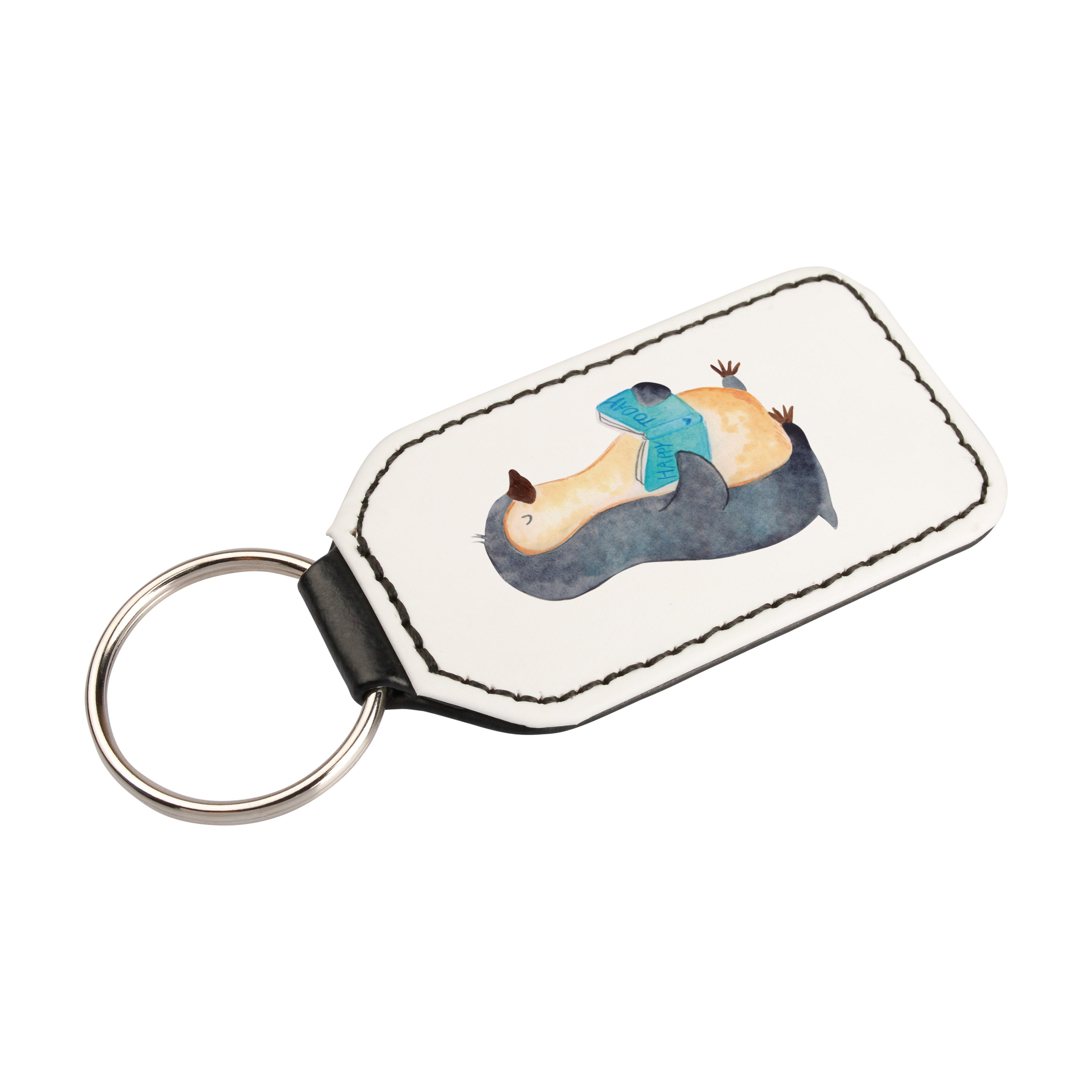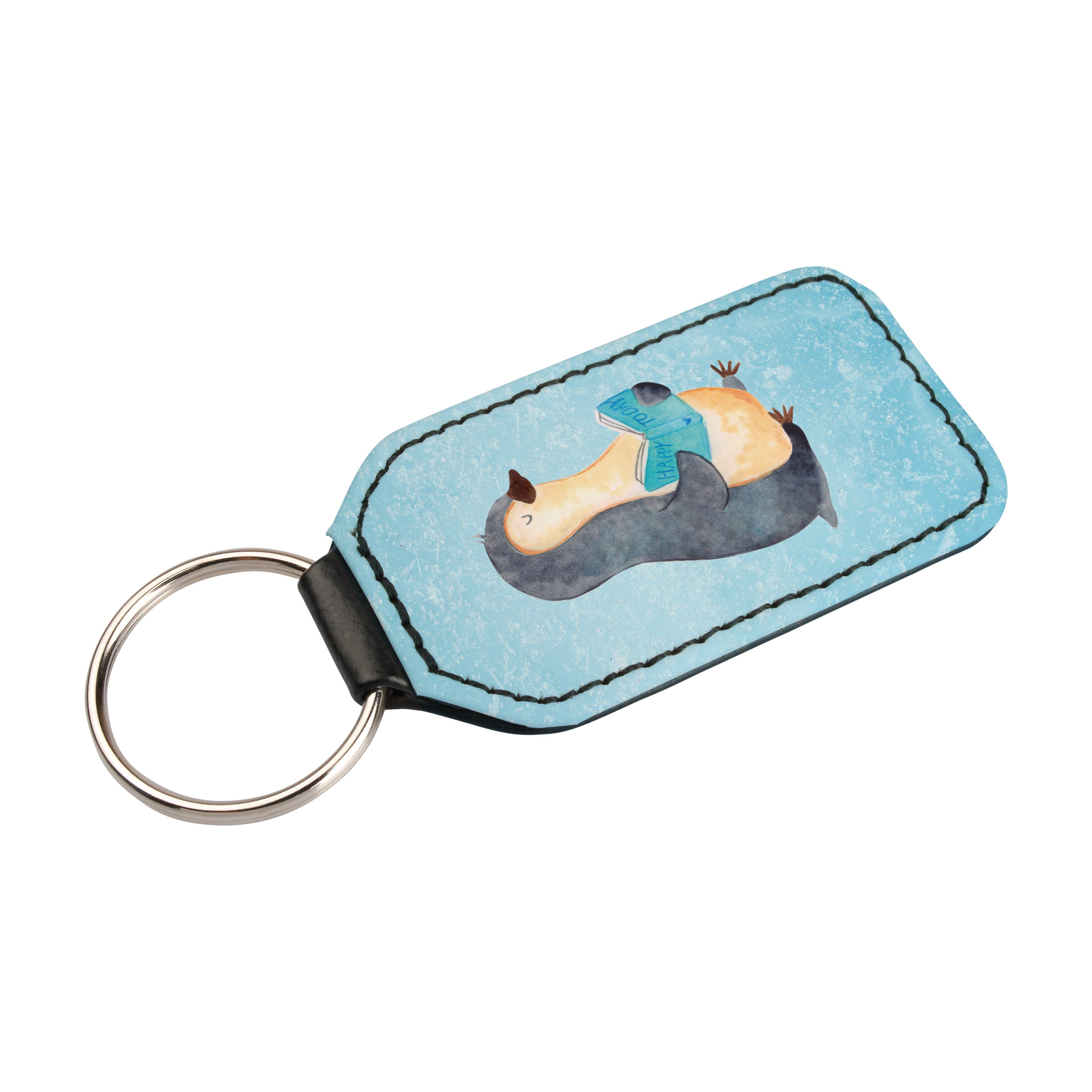 Rechteckig Schlüsselanhänger Pinguin Buch - Eisblau