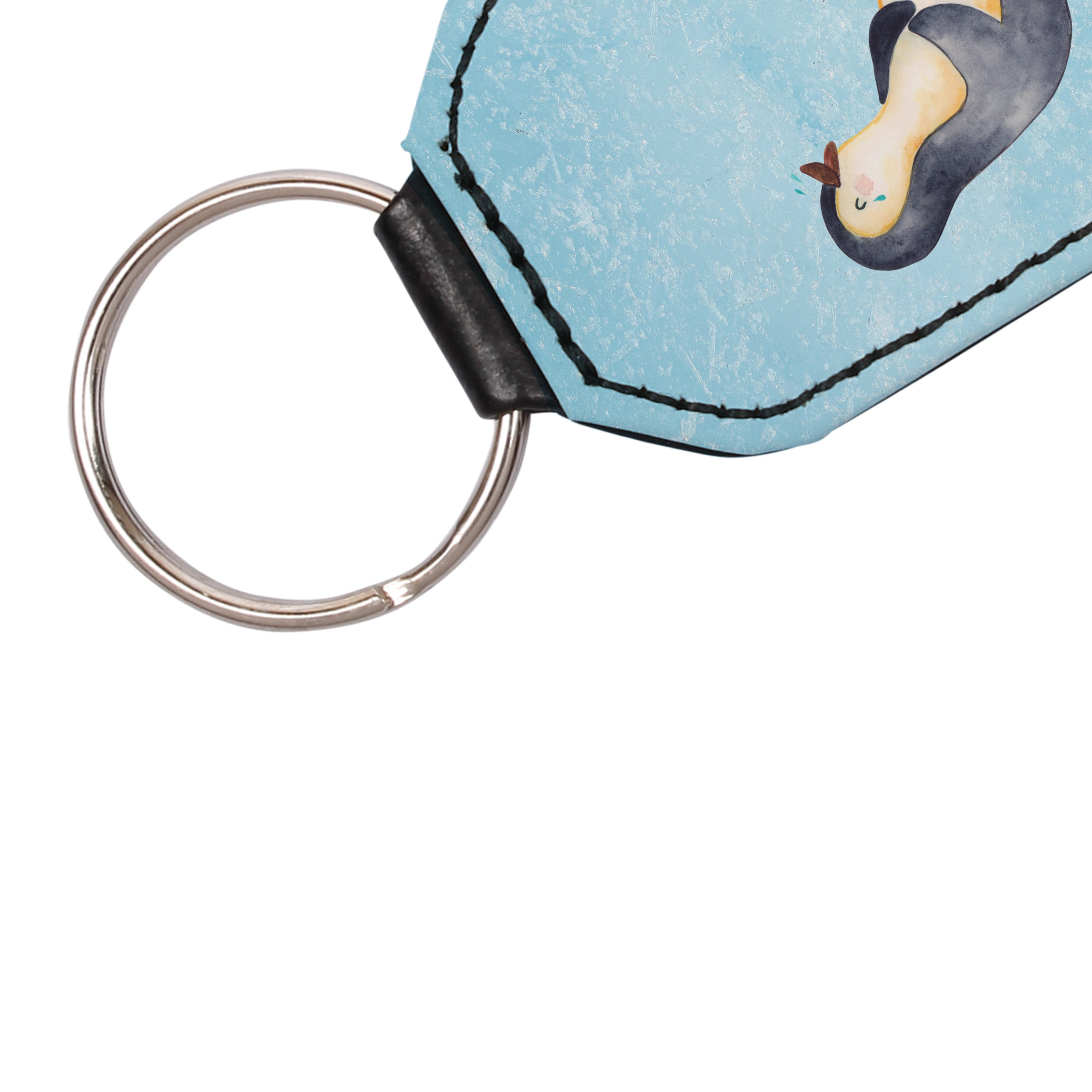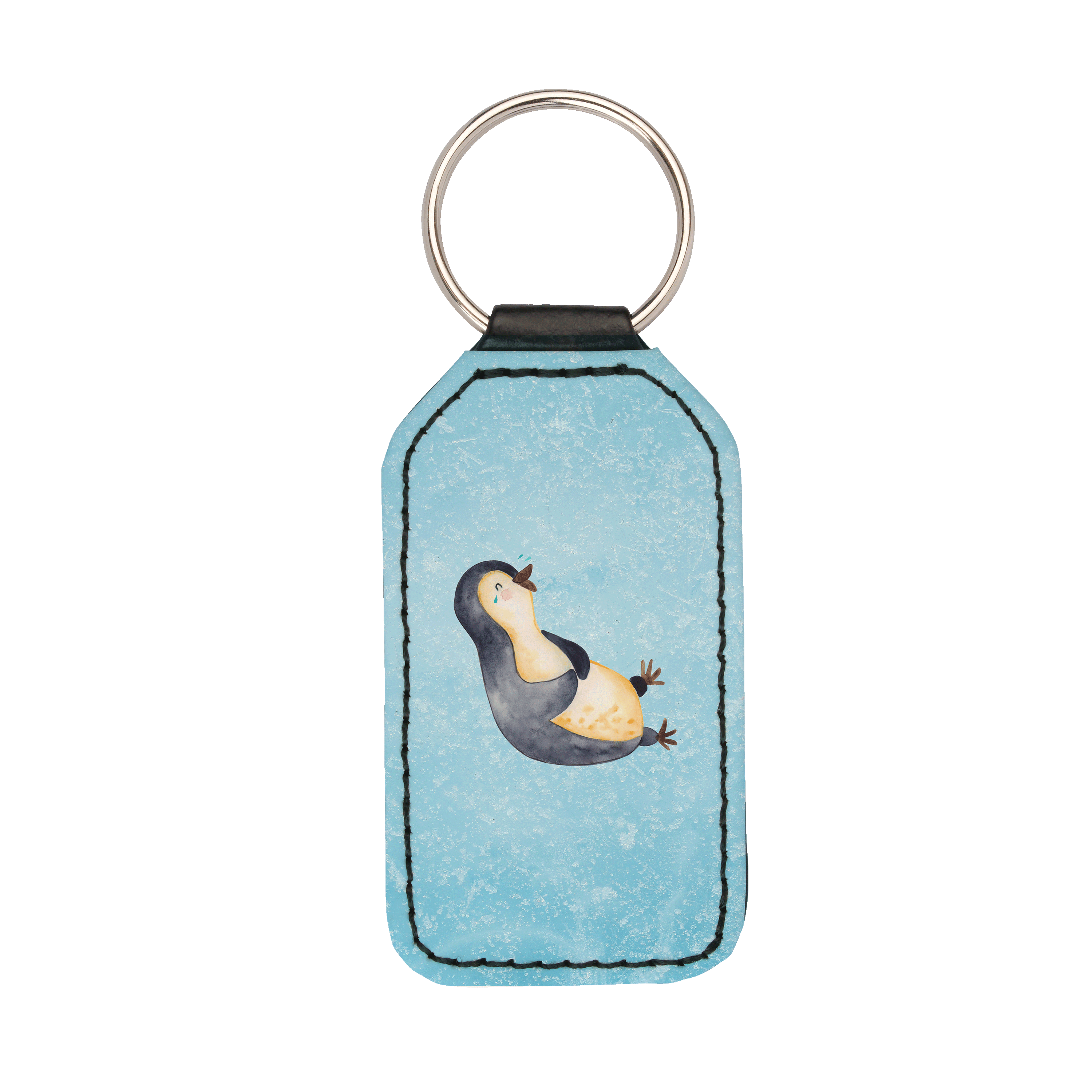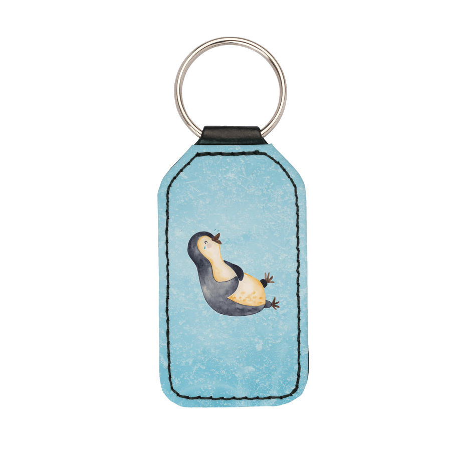 Rechteckig Schlüsselanhänger Pinguin lachend - Eisblau