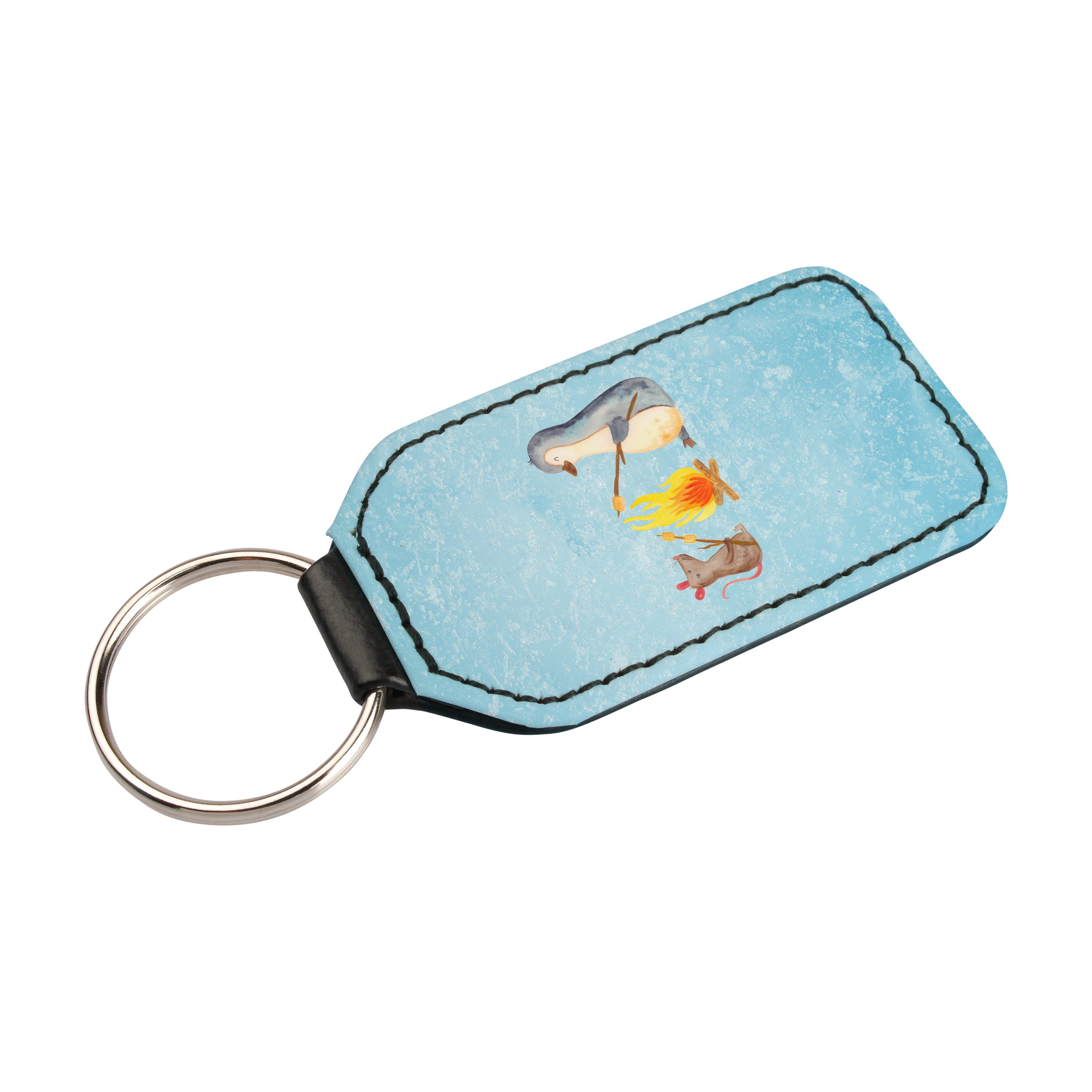 Rechteckig Schlüsselanhänger Pinguin Lagerfeuer - Eisblau