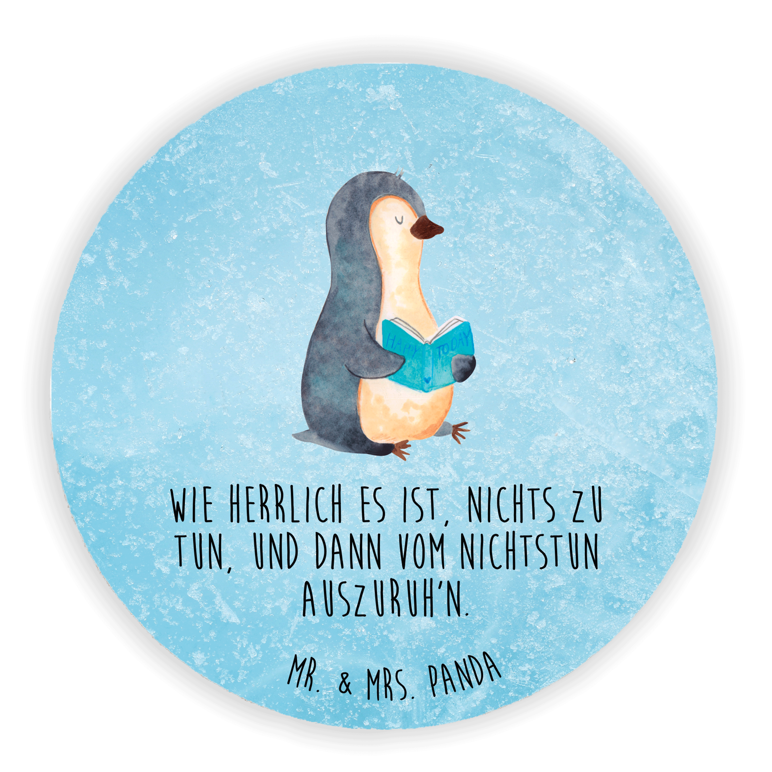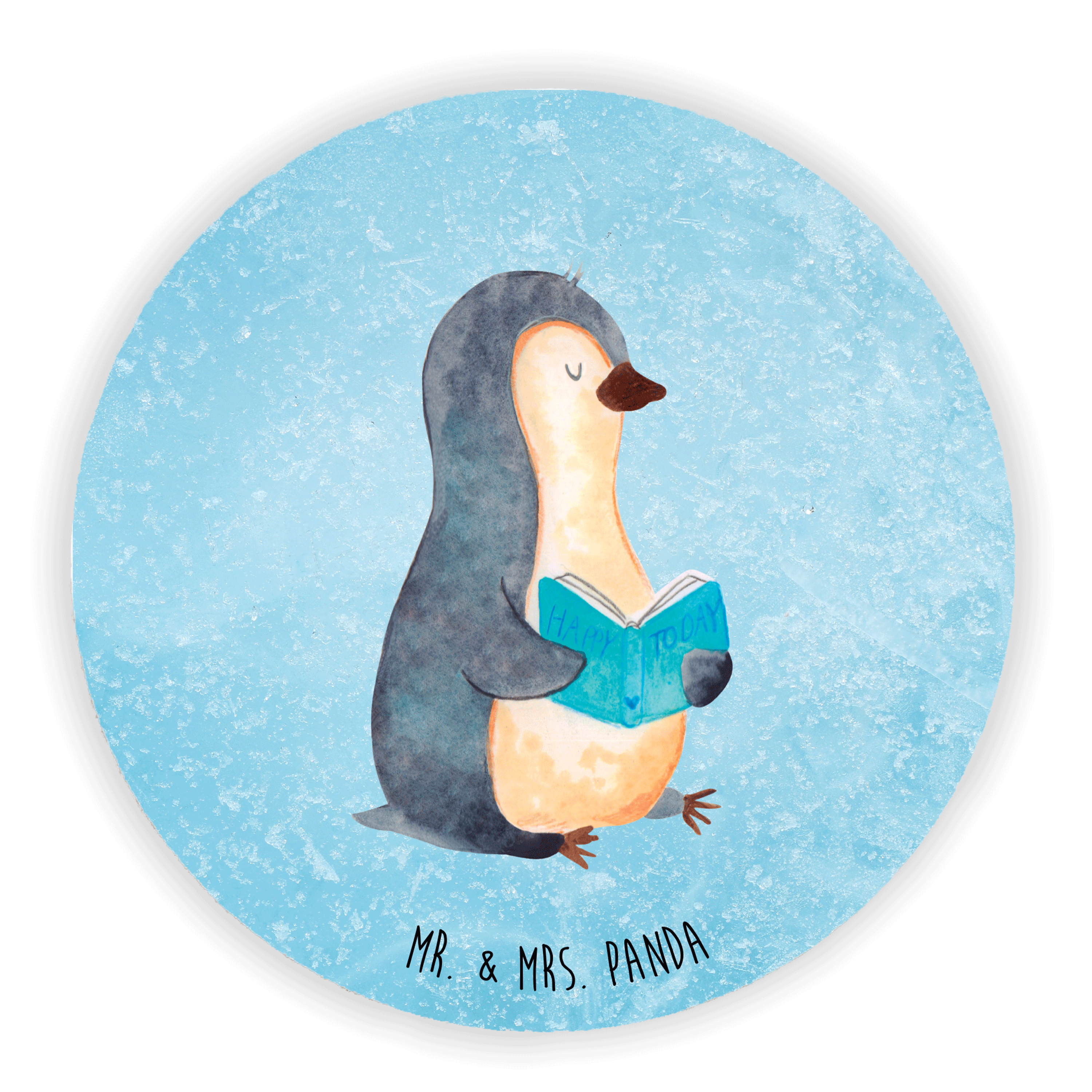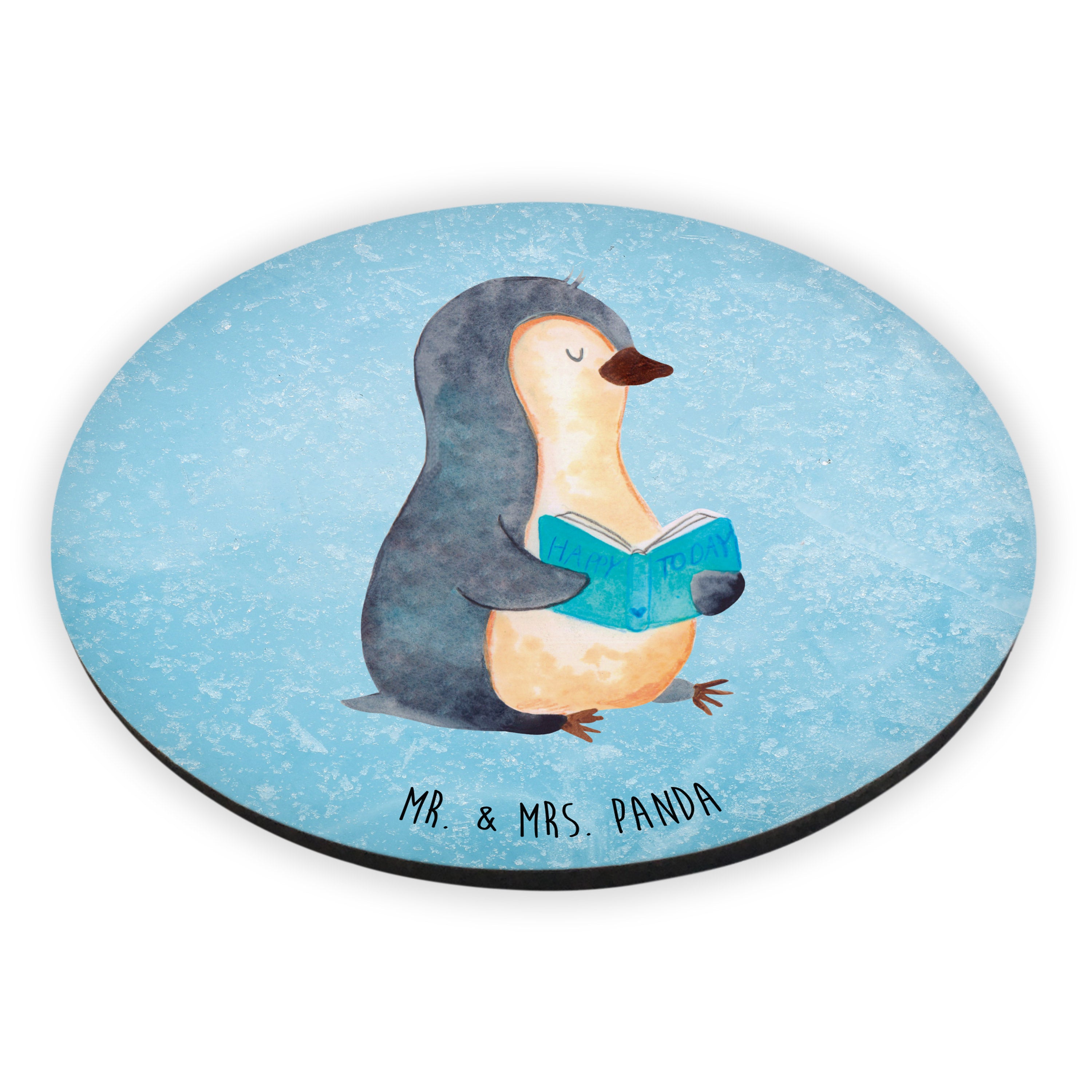 Rund Magnet Pinguin Buch - mit Spruch - Eisblau