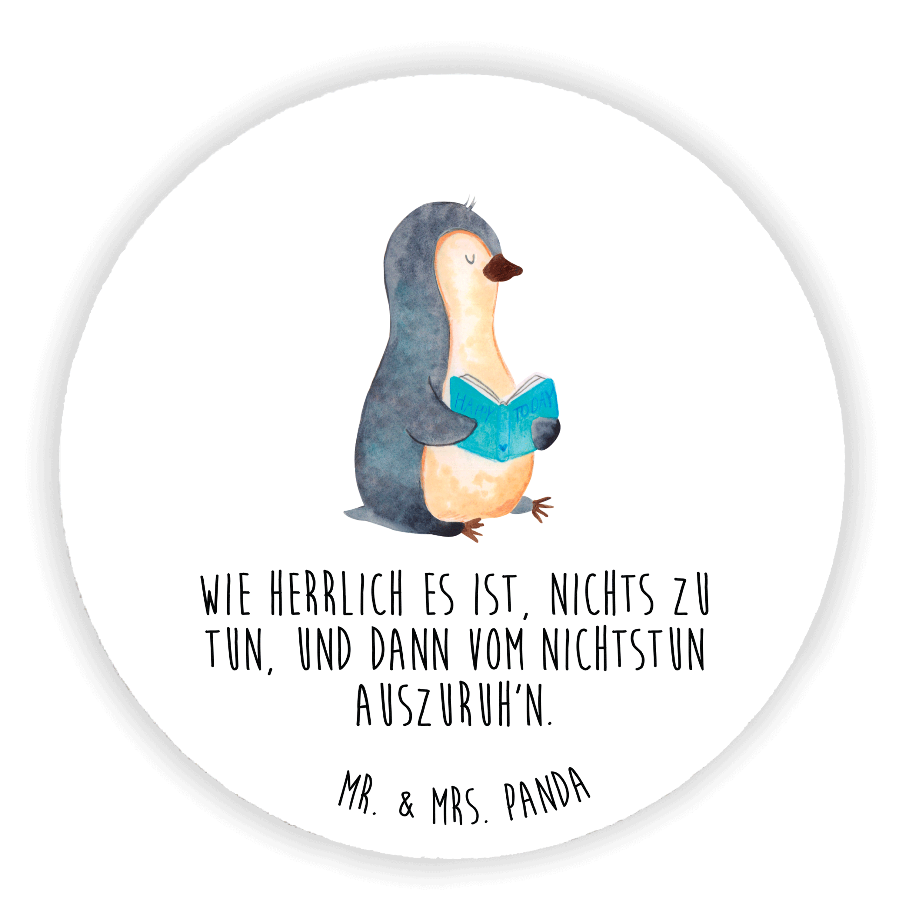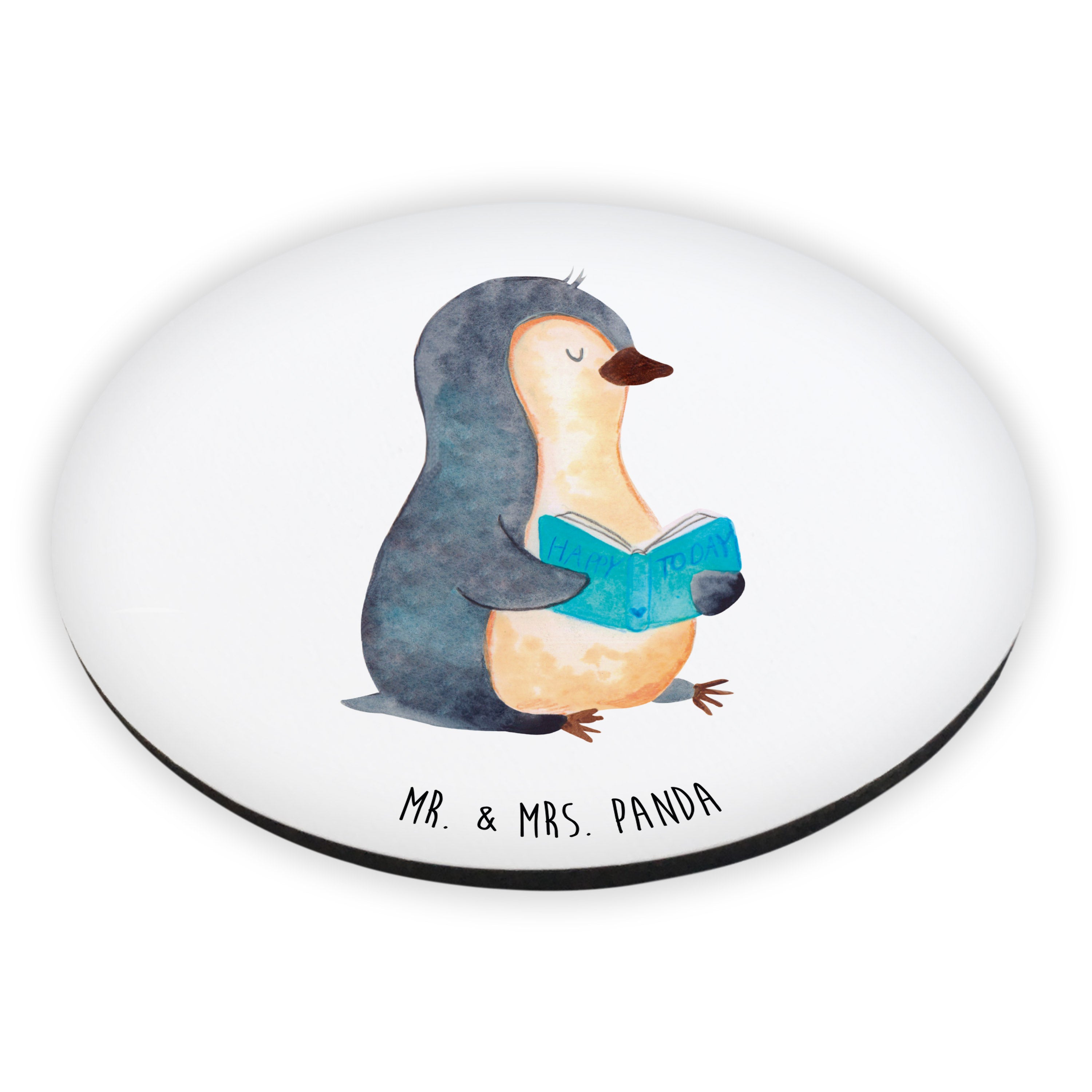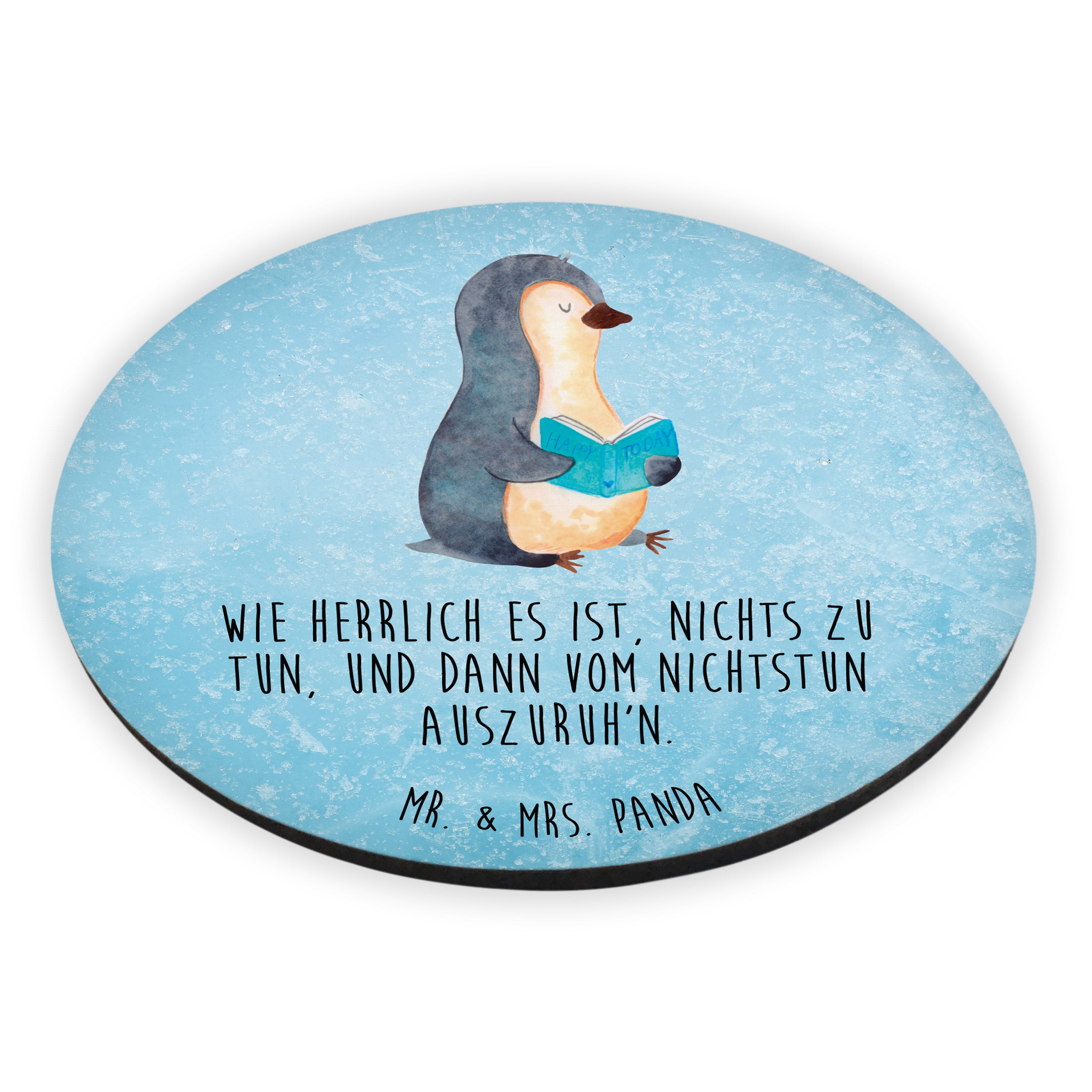 Rund Magnet Pinguin Buch - mit Spruch - Eisblau