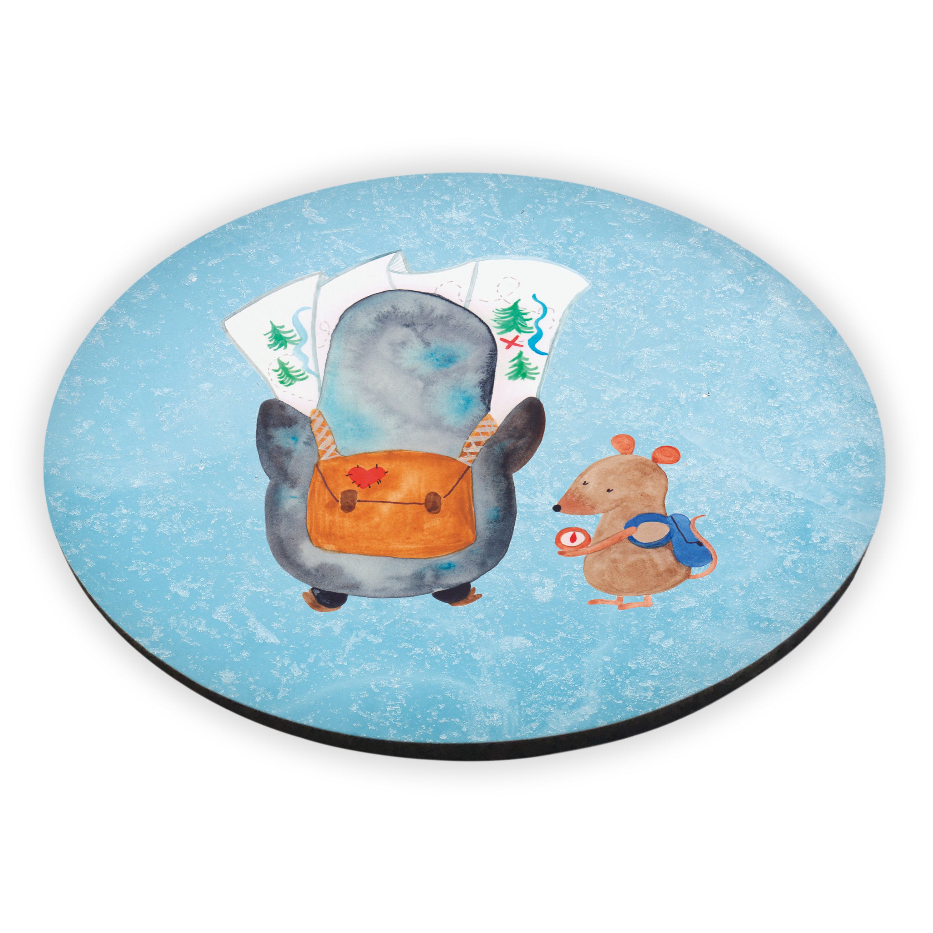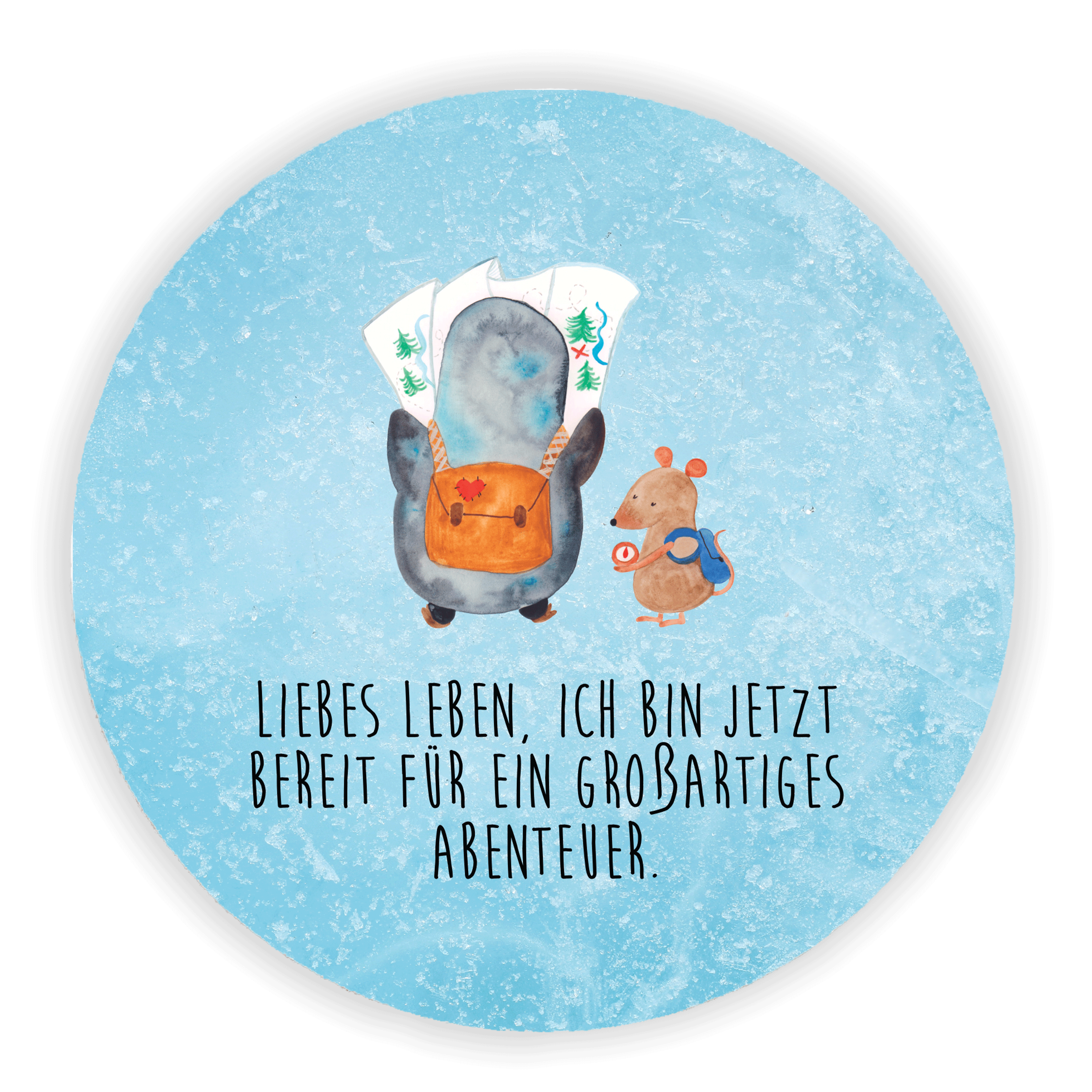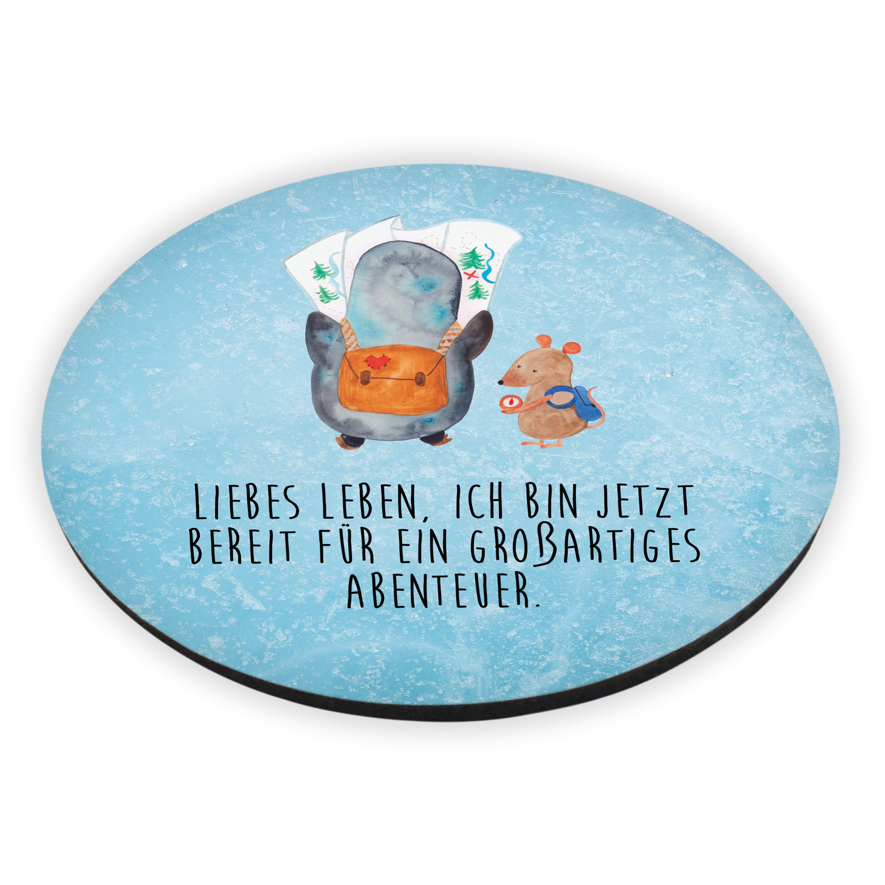 Rund Magnet Pinguin & Maus Wanderer - mit Spruch - Eisblau