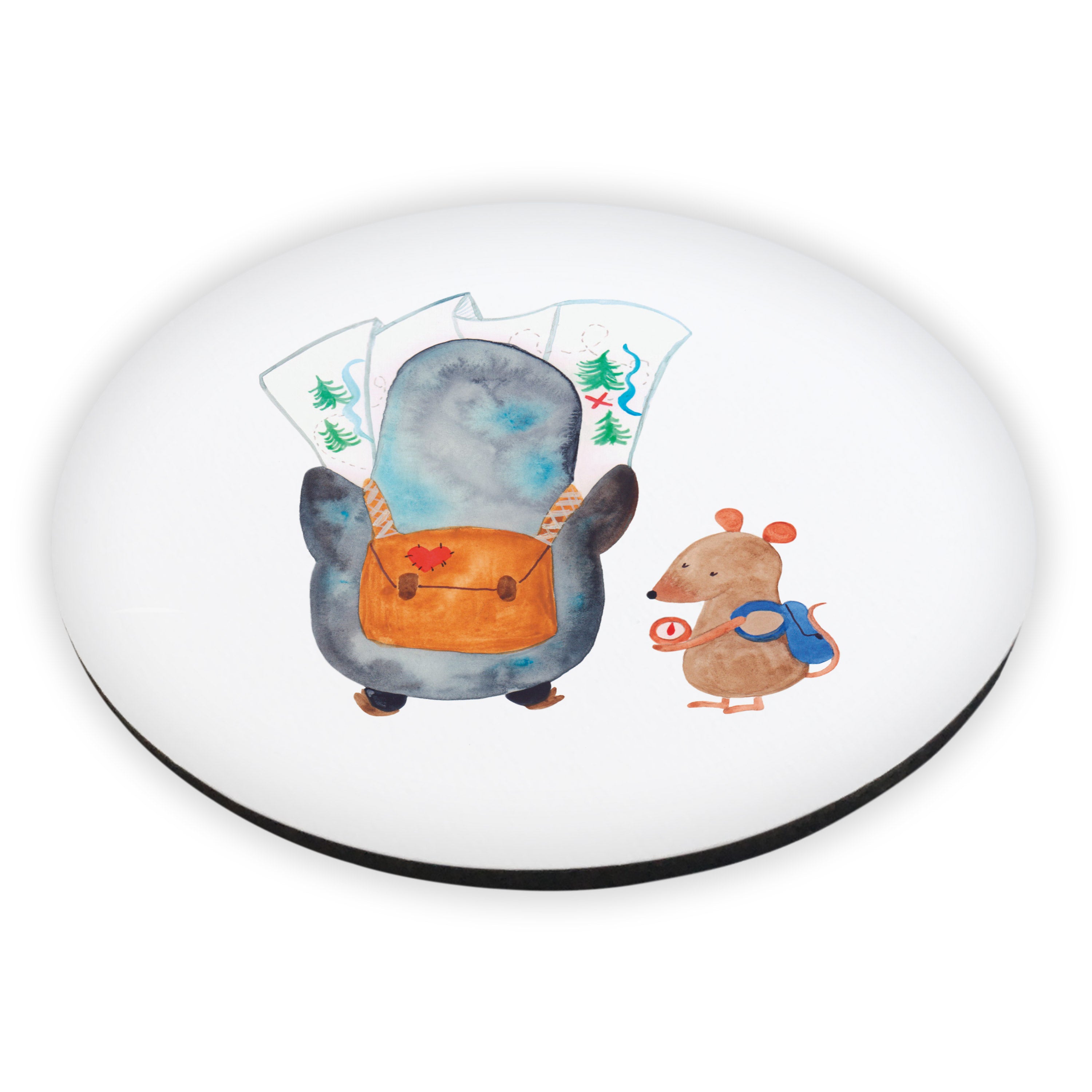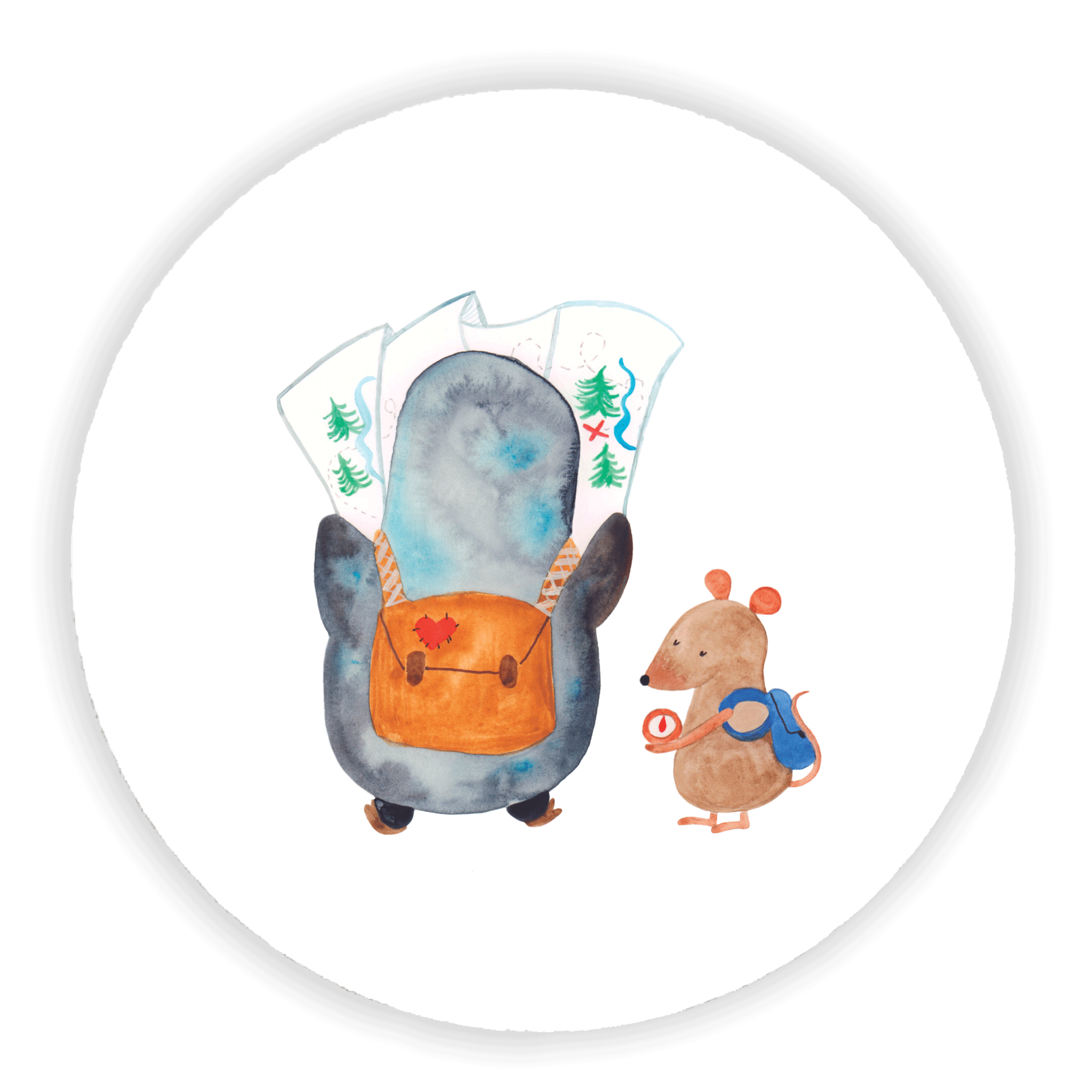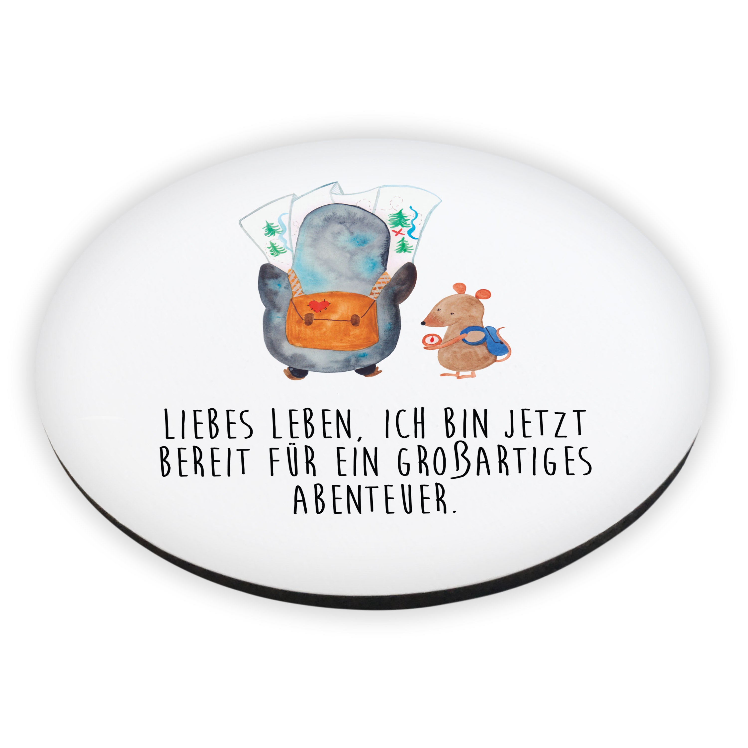 Rund Magnet Pinguin & Maus Wanderer - mit Spruch - Eisblau