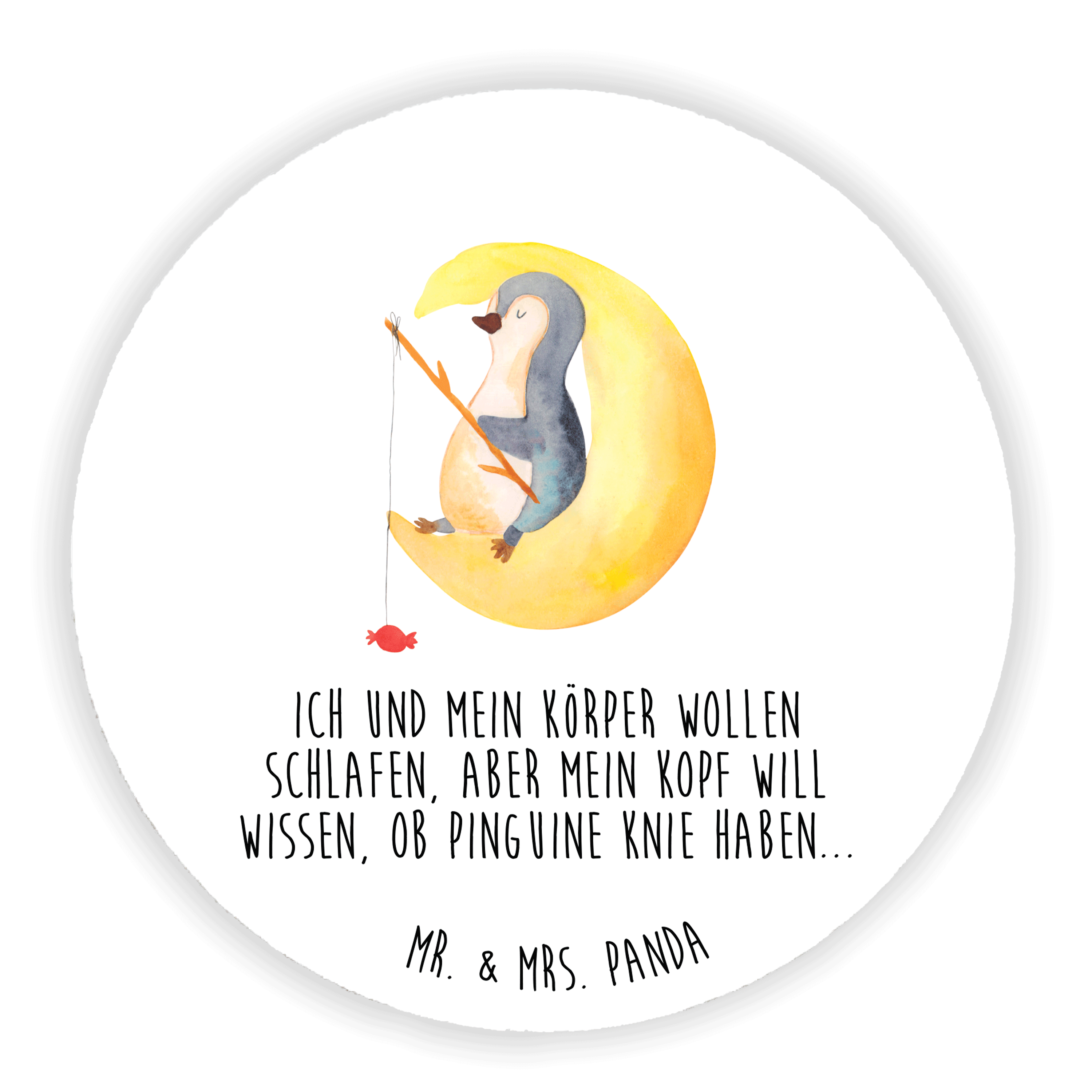 Rund Magnet Pinguin Mond - mit Spruch - Weiß