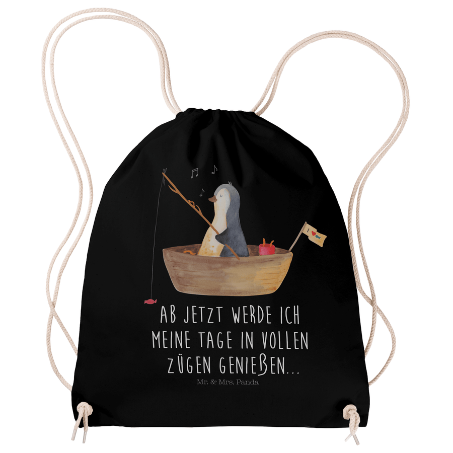 Sportbeutel Pinguin Angelboot - mit Spruch - Schwarz