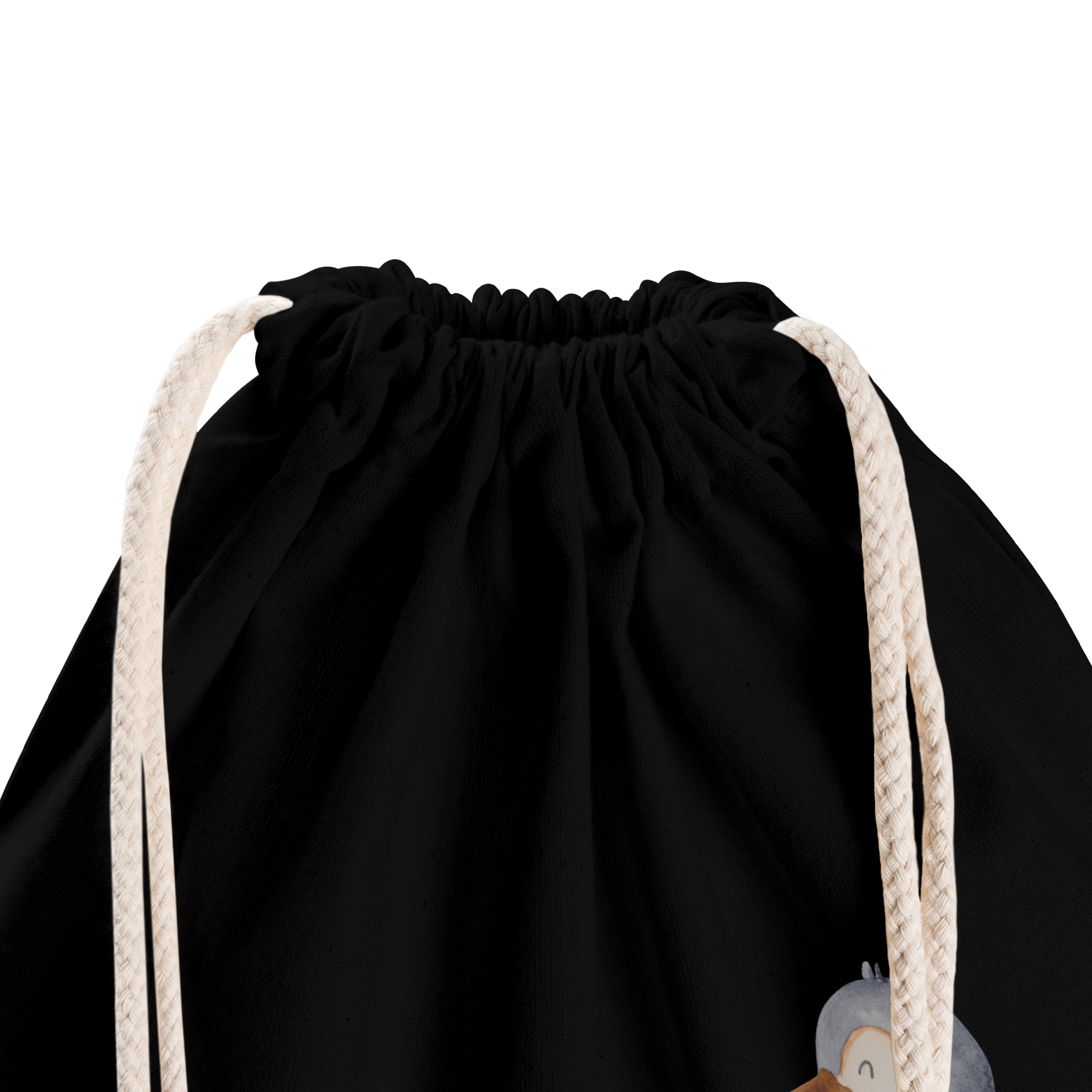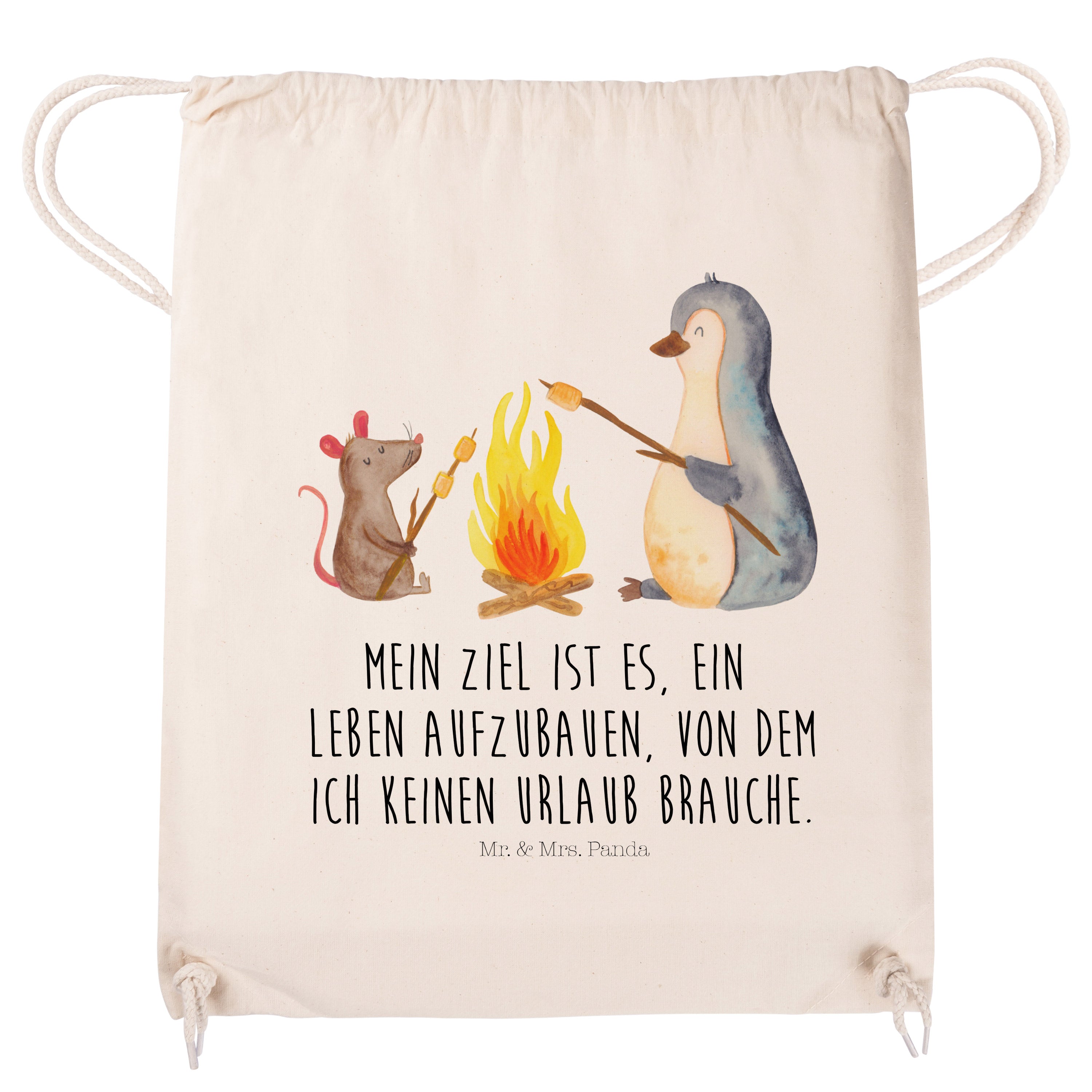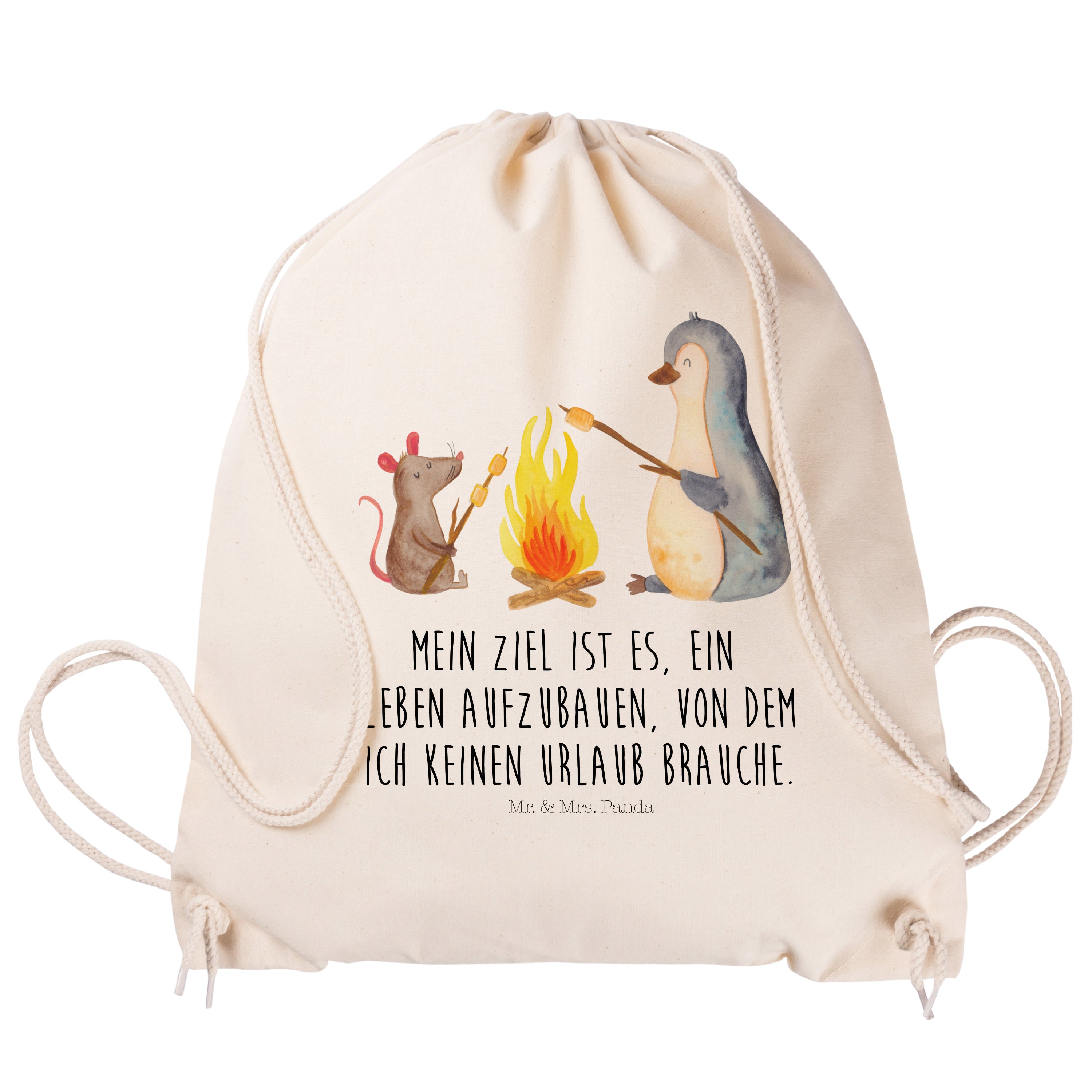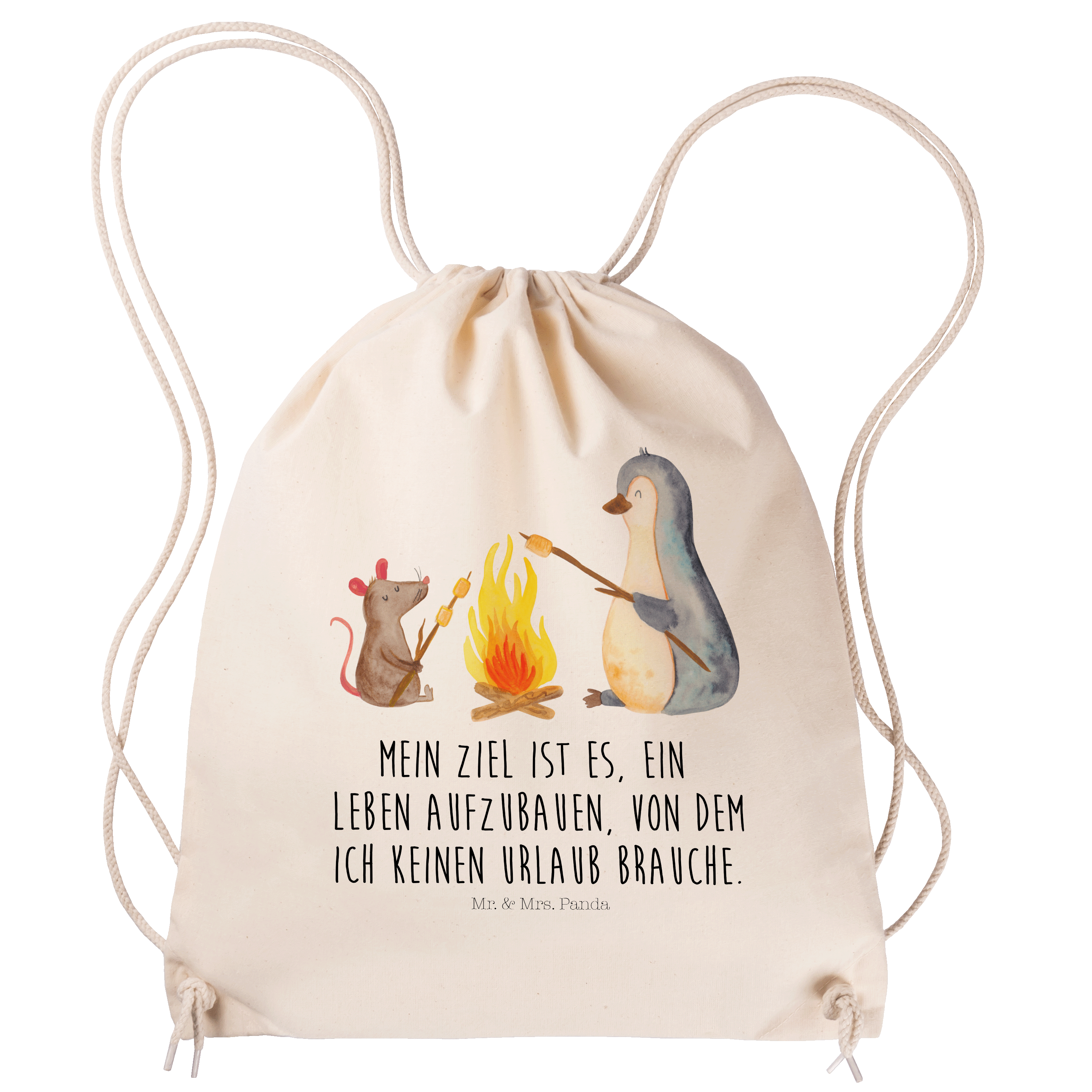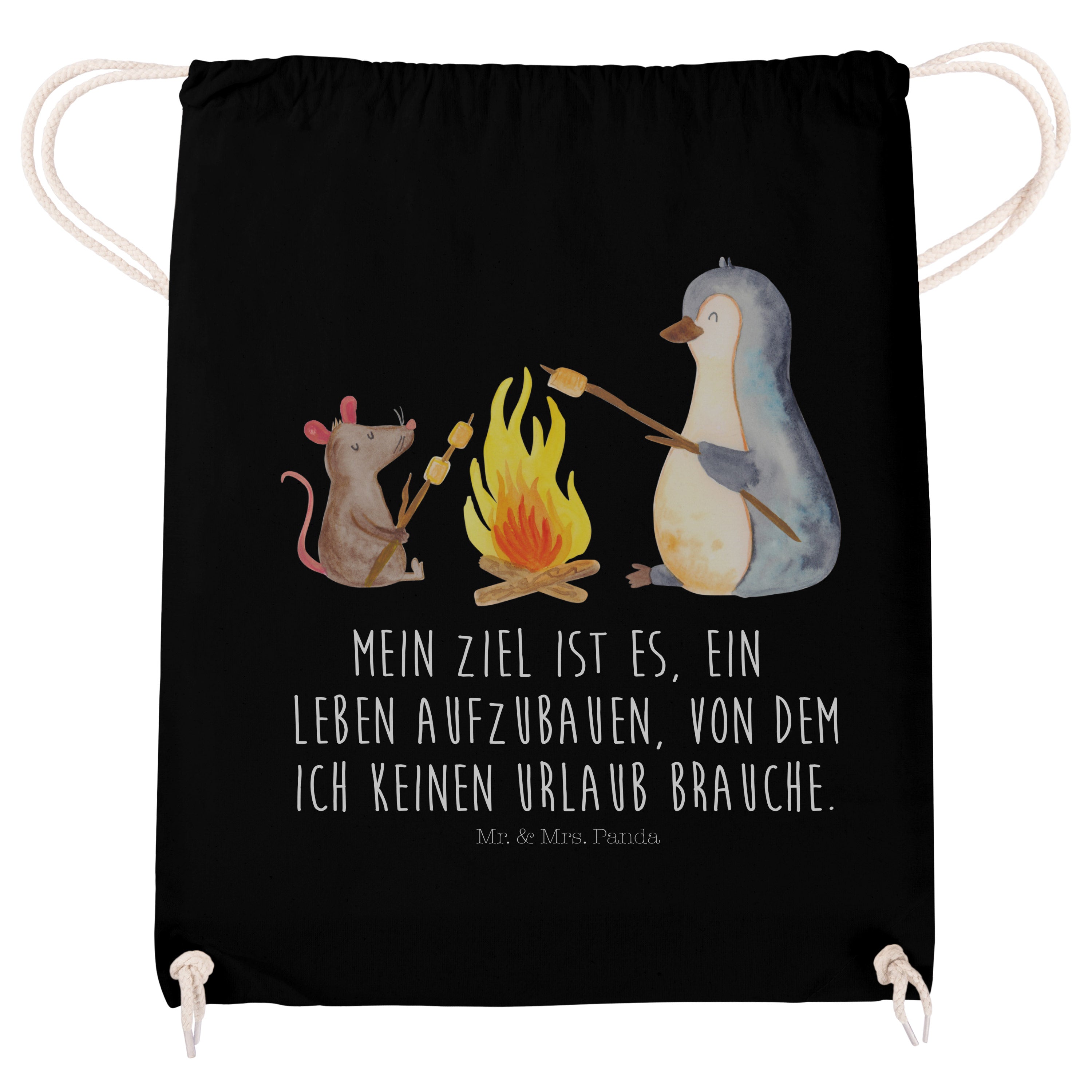 Sportbeutel Pinguin Lagerfeuer - mit Spruch - Schwarz