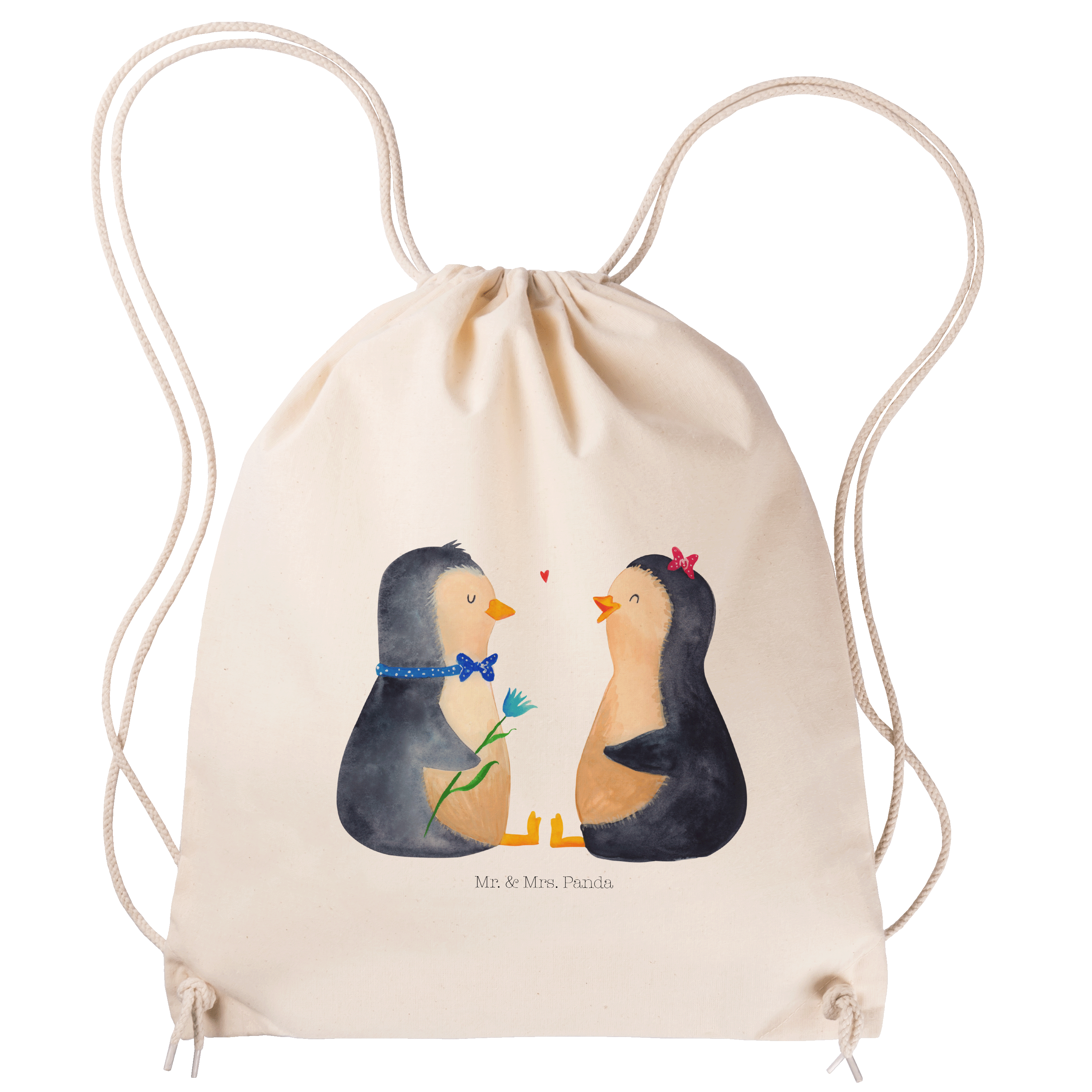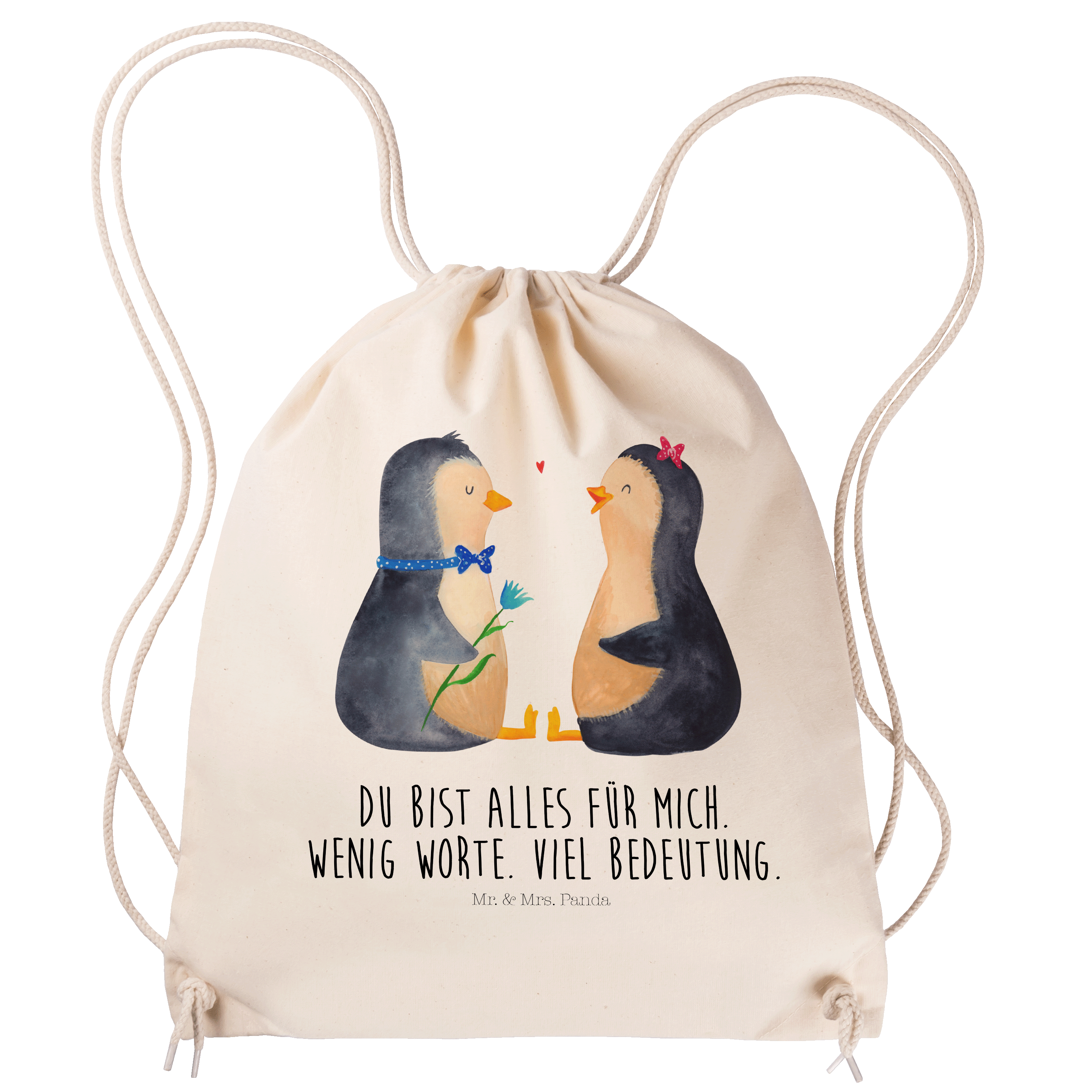 Das "Pinguin Pärchen" von Mr. & Mrs. Panda ist das perfekte Motiv für Verliebte. Die beiden süßen Pinguine sitzen sich gegenüber und schauen sich liebevoll an. Der Junge und das Mädchen sind nicht nur optisch ein tolles Paar und bringen jeden zum Schmunzeln. Dieses Motiv versprüht pure Lebensfreude und ist ein wundervolles Geschenk für den Partner oder die Partnerin.