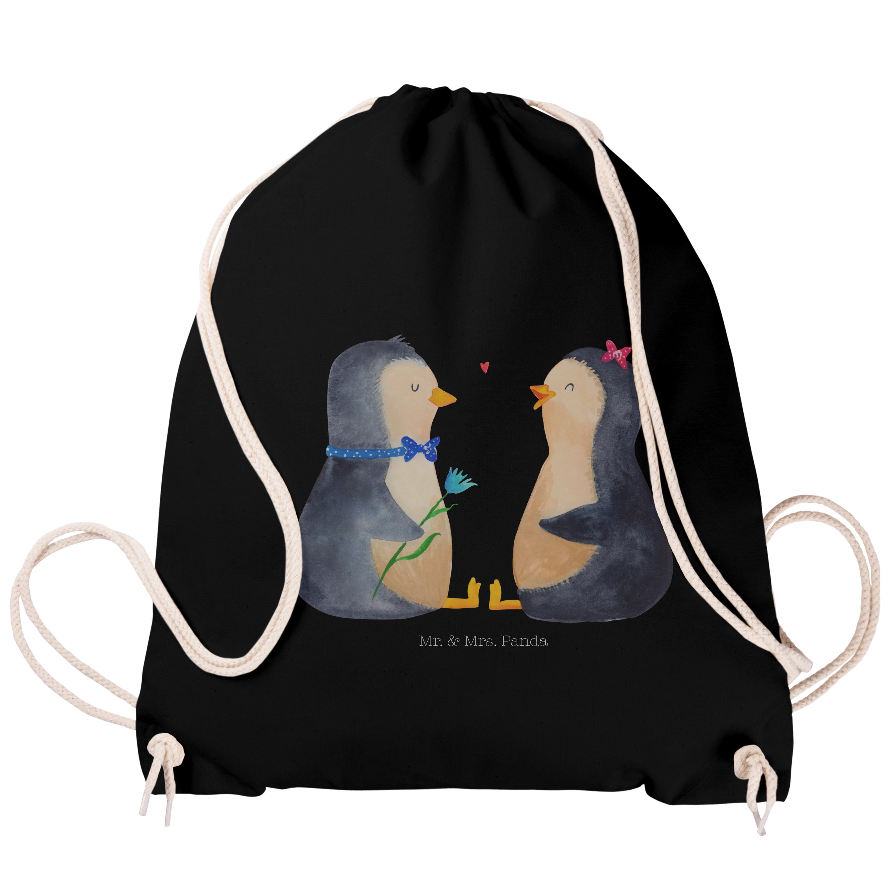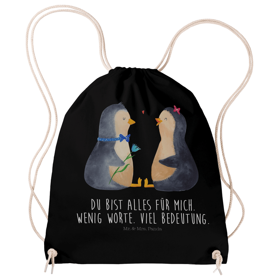 Sportbeutel Pinguin Pärchen - mit Spruch - Schwarz