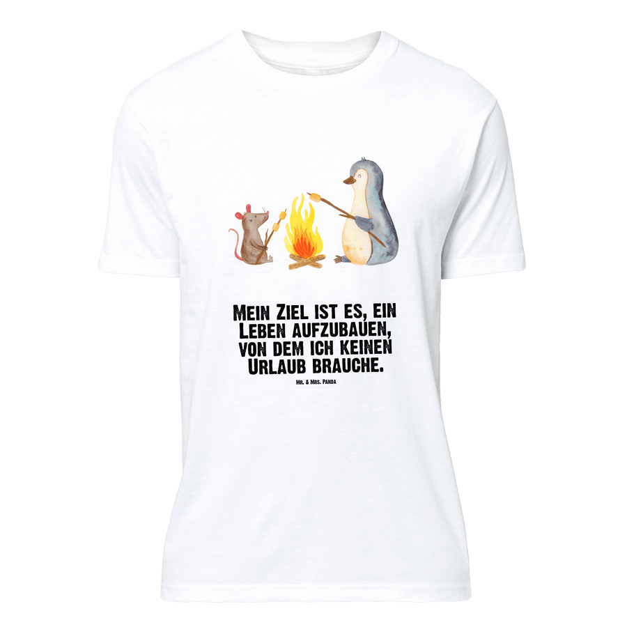Größe L T-Shirt Pinguin Lagerfeuer - mit Spruch - Weiß