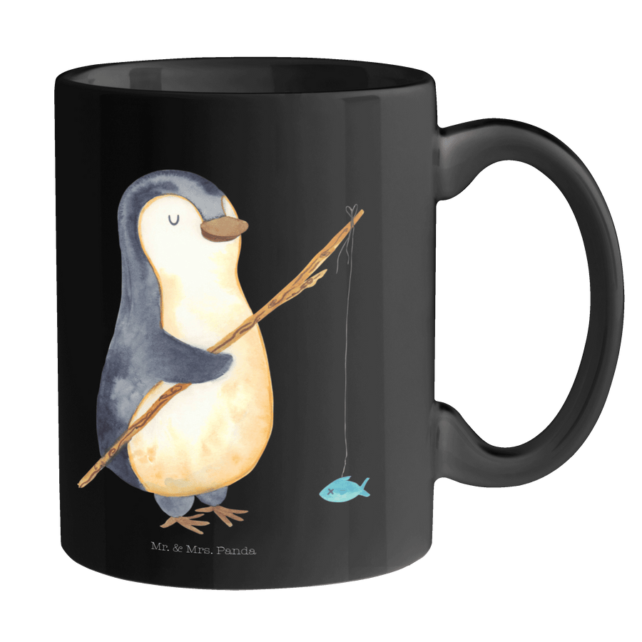 Tasse Pinguin Angler - ohne Spruch - Schwarz