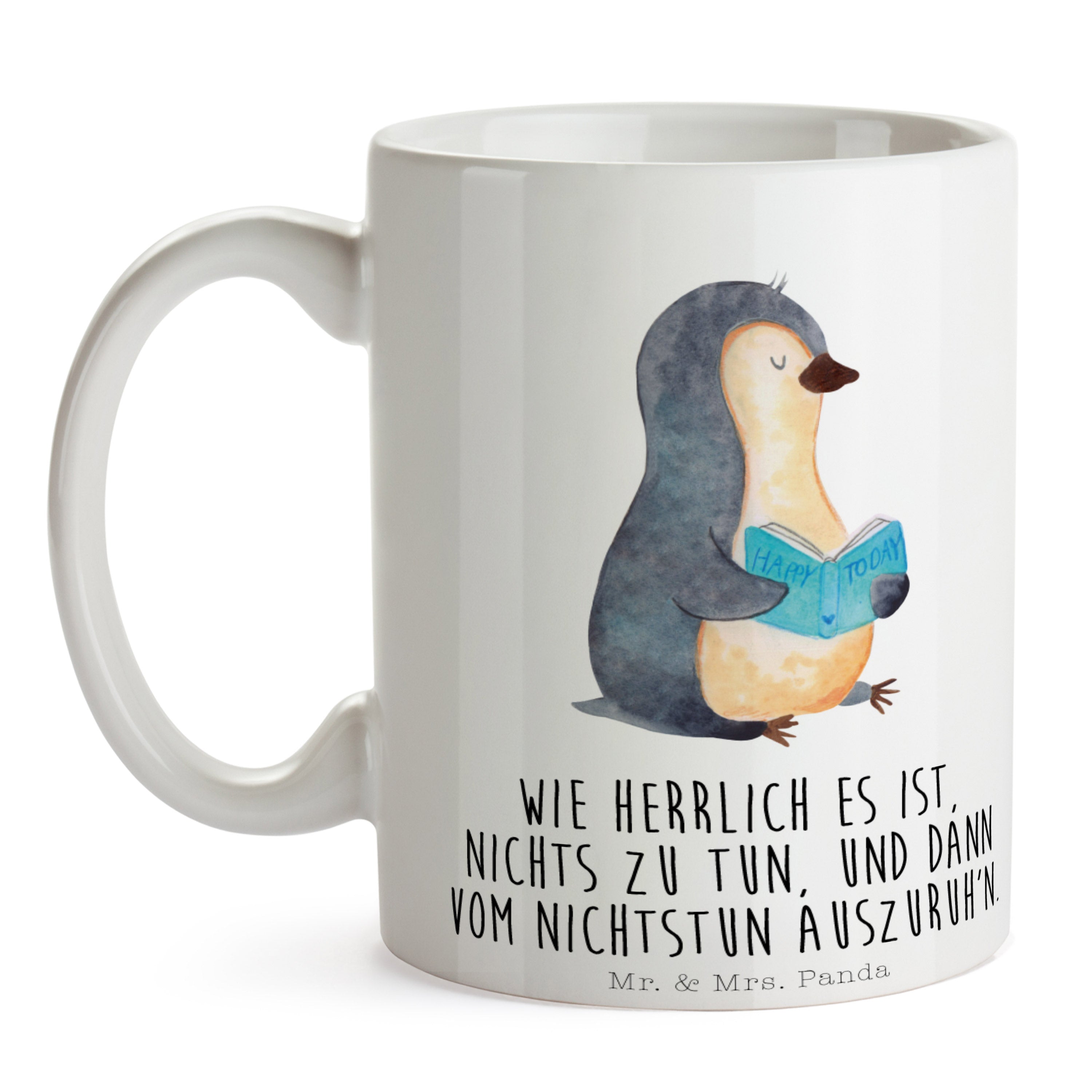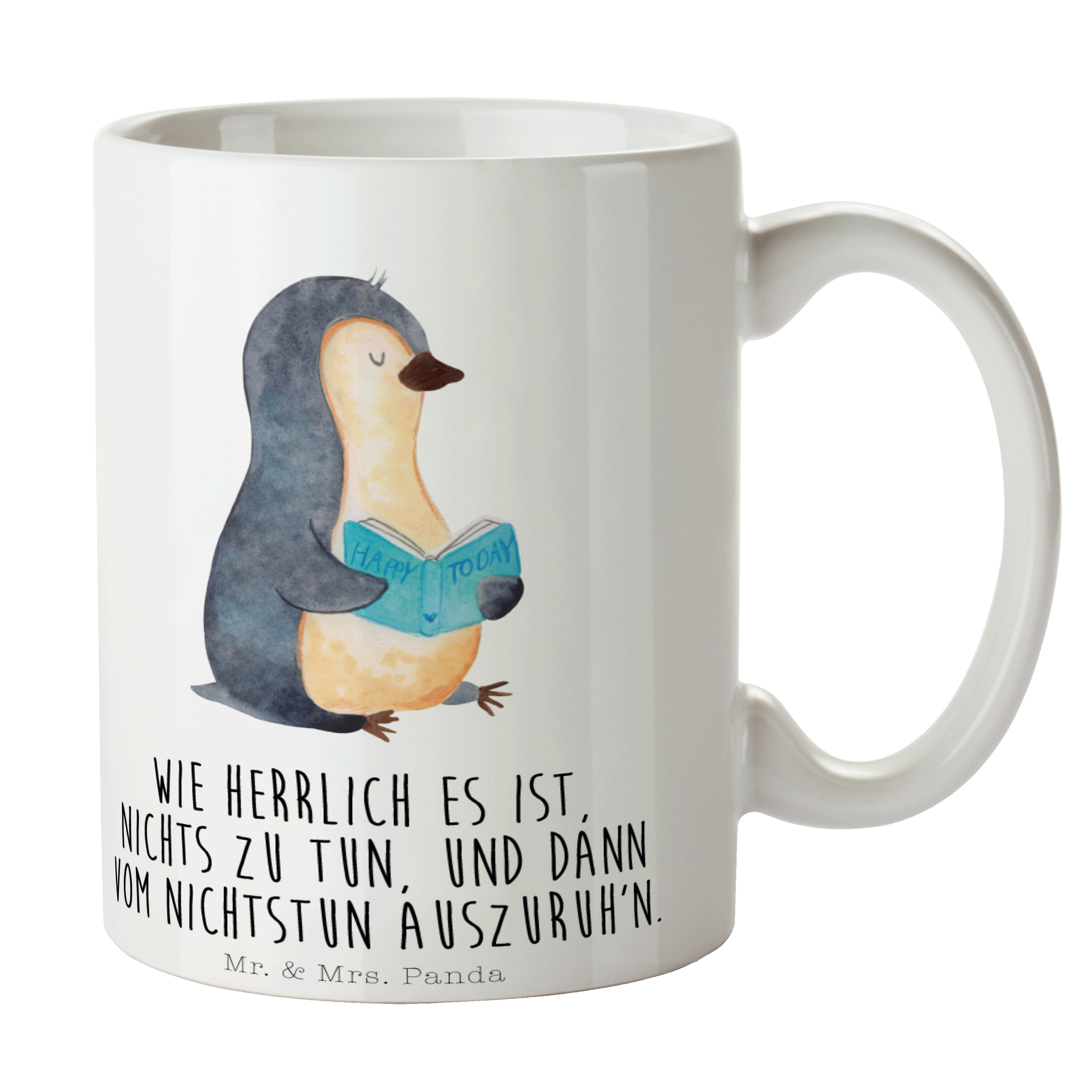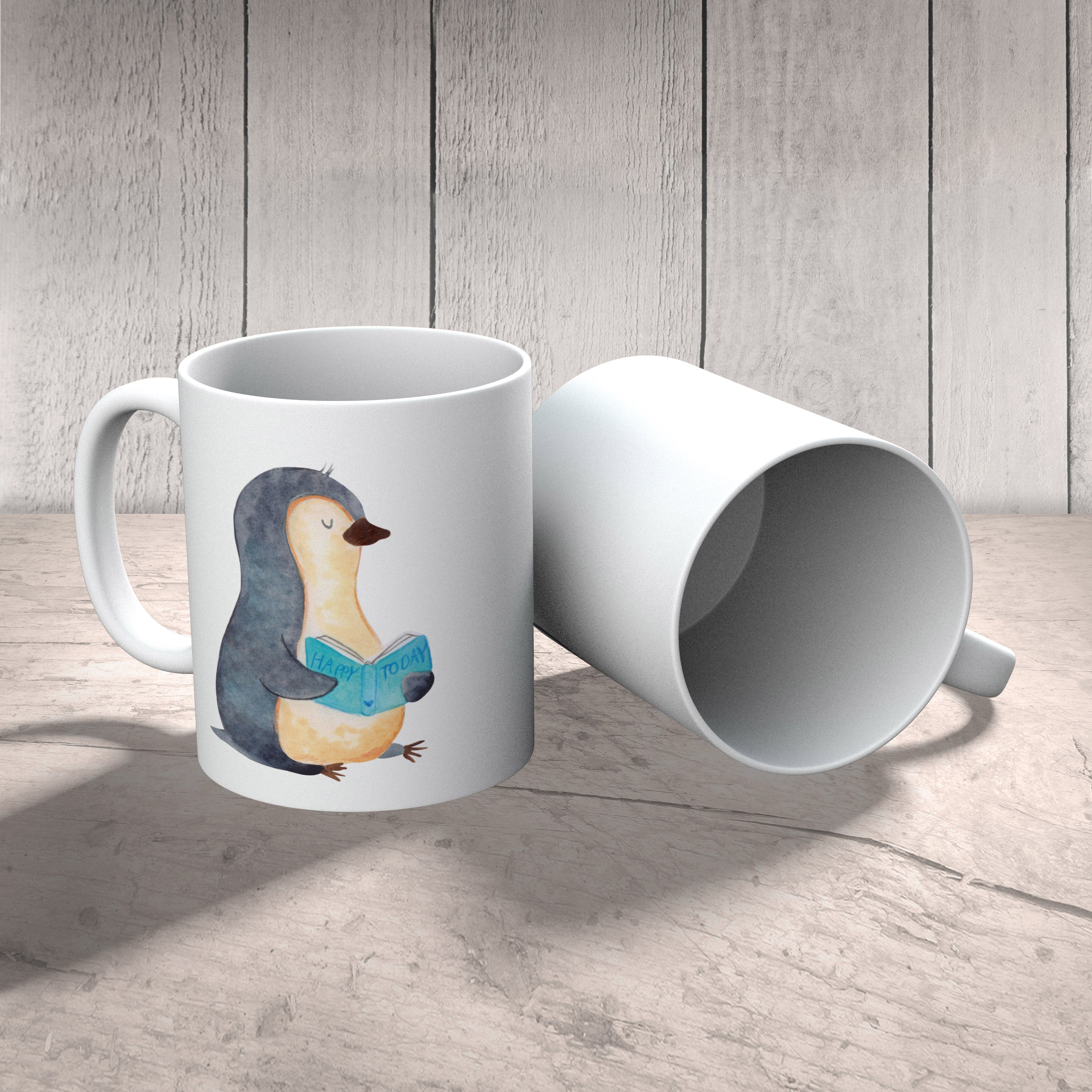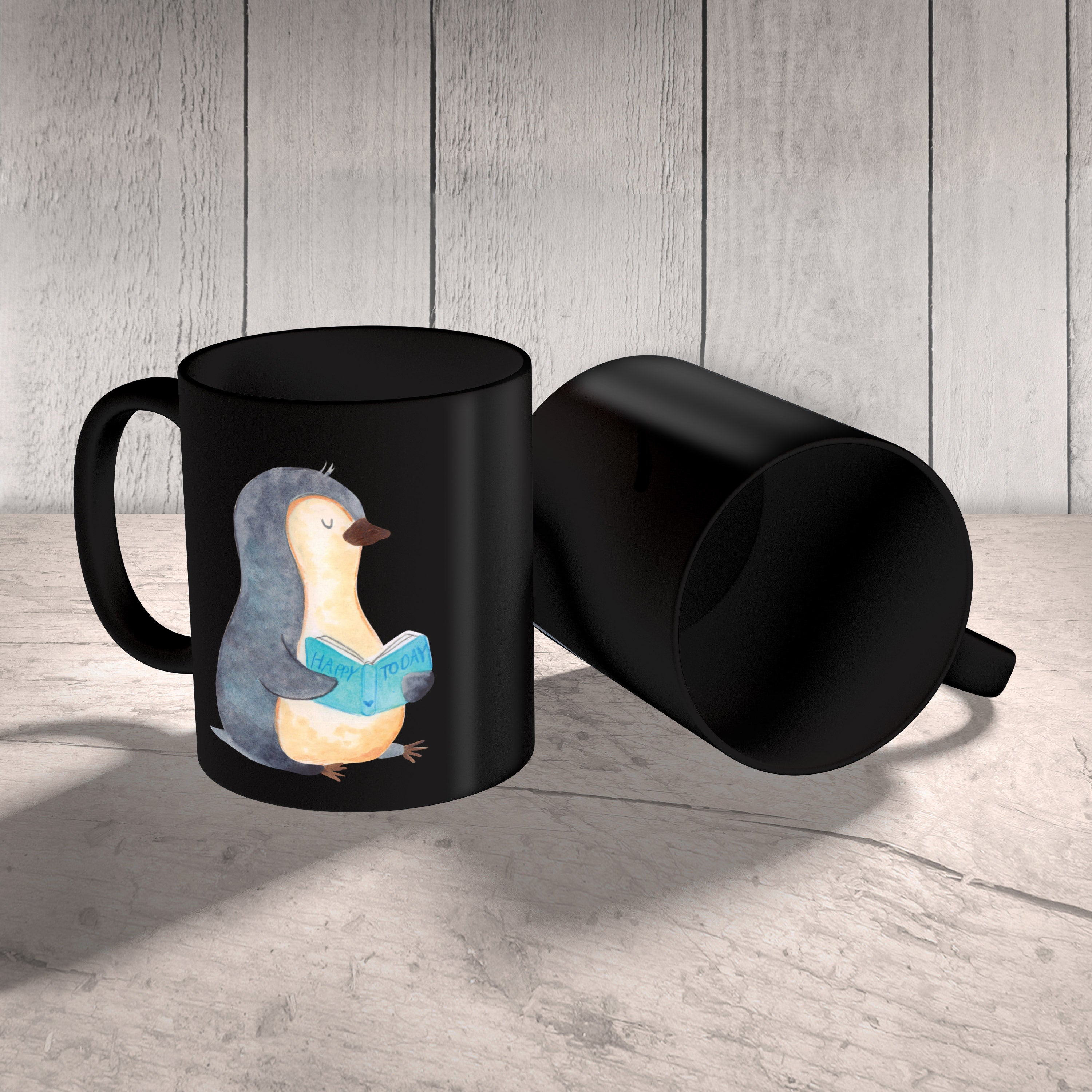 Tasse Pinguin Buch - ohne Spruch - Schwarz