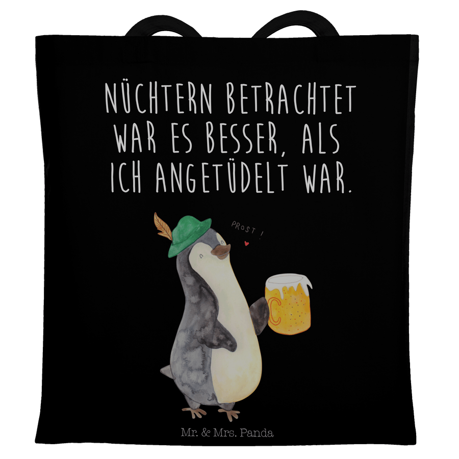 Tragetasche Pinguin Bier - mit Spruch - Schwarz