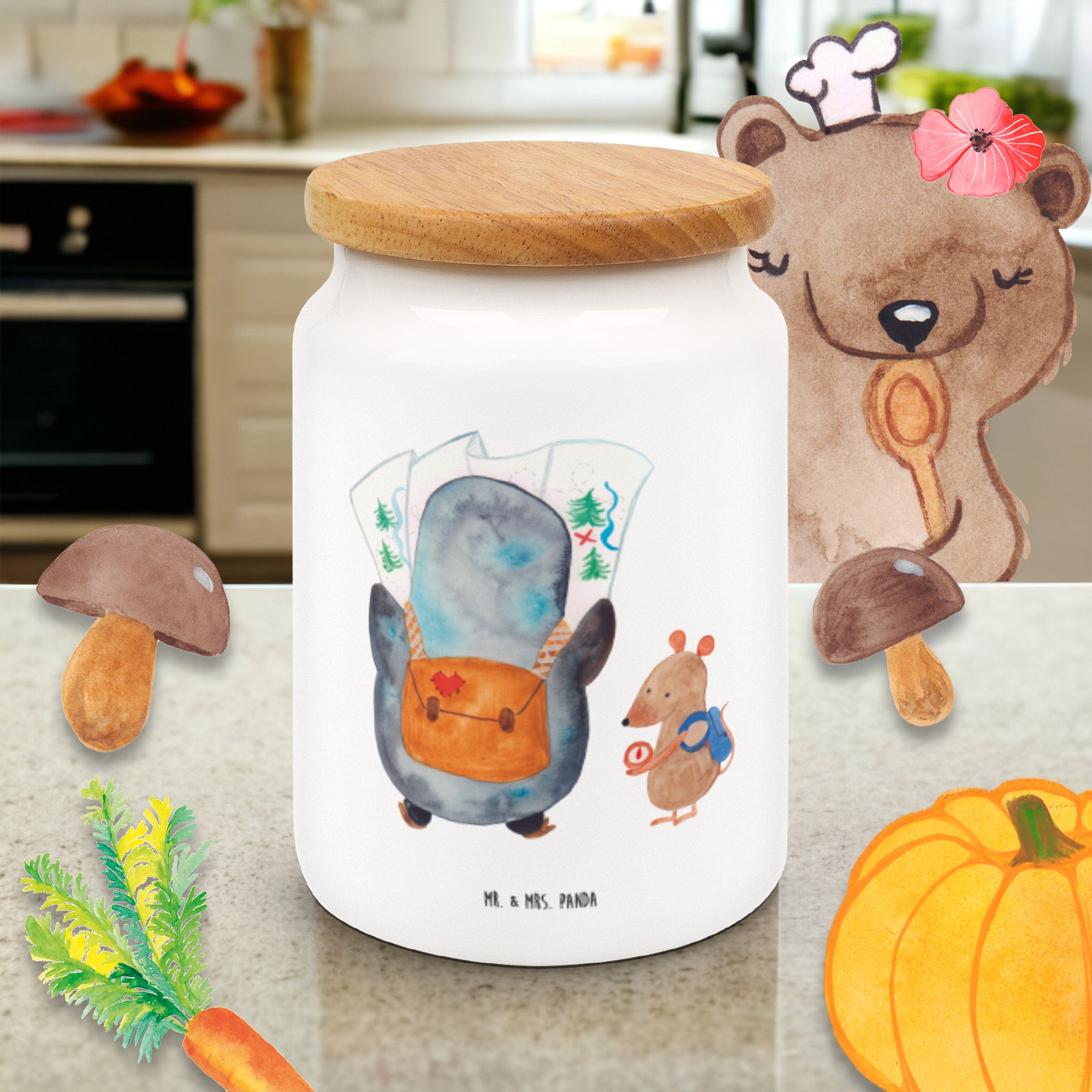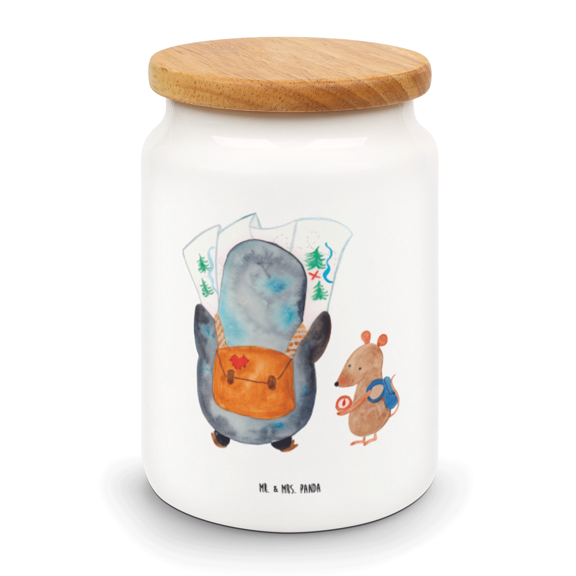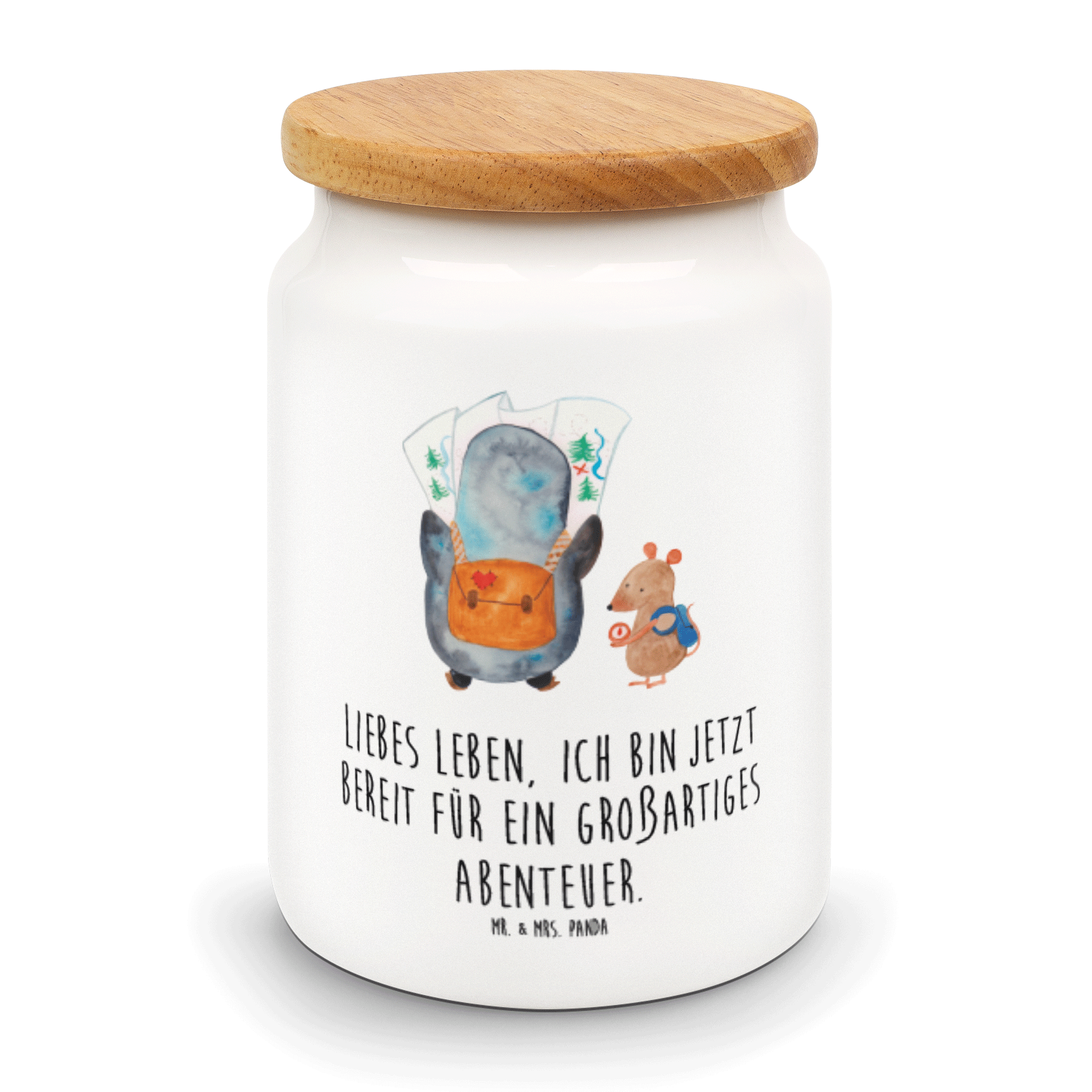 Vorratsdose Pinguin & Maus Wanderer Pinguin, Pinguine, Abenteurer, Abenteuer, Roadtrip, Ausflug, Wanderlust, wandern Vorratsdose, Keksdose, Keramikdose, Leckerlidose, Dose  Pinguin