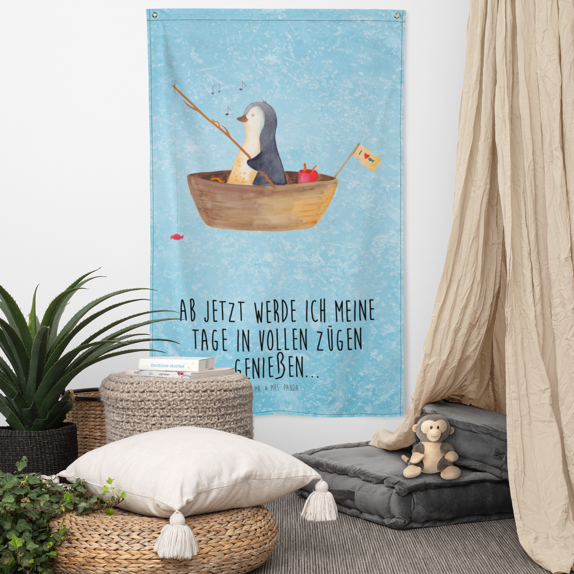 Wandteppich Pinguin Angelboot Wandbehang, Dekoration, Boho, Wandteppich, Wandtuch, Wanddeko, Tapisserie, Tapestry, Wandbild, Textil-Kunst, Schmuck-Wandbehang, Wand Deko, Kinderzimmer, Kinderzimmer Wand, Kinderzimmer Deko, Kinderzimmer Wanddeko, Pinguin, Pinguine, Angeln, Boot, Angelboot, Lebenslust, Leben, genießen, Motivation, Neustart, Neuanfang, Trennung, Scheidung, Geschenkidee Liebeskummer