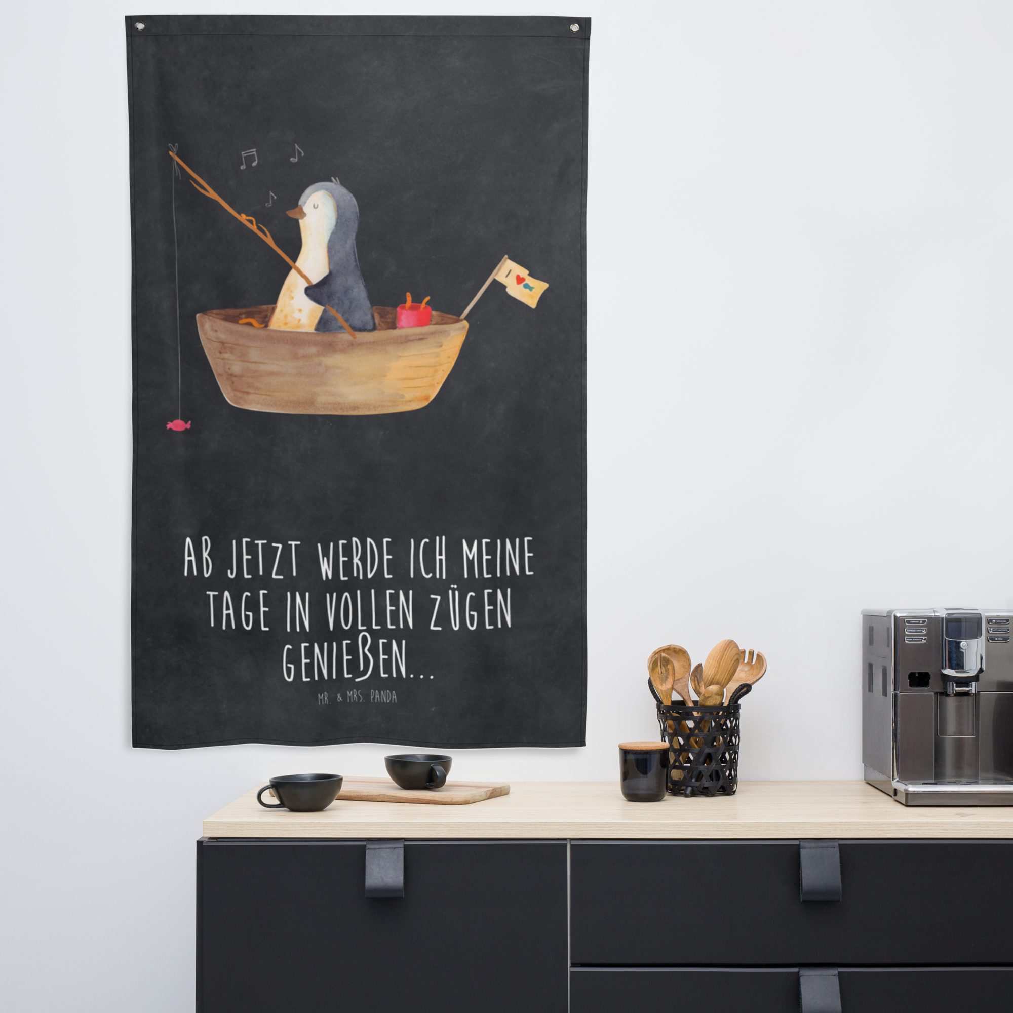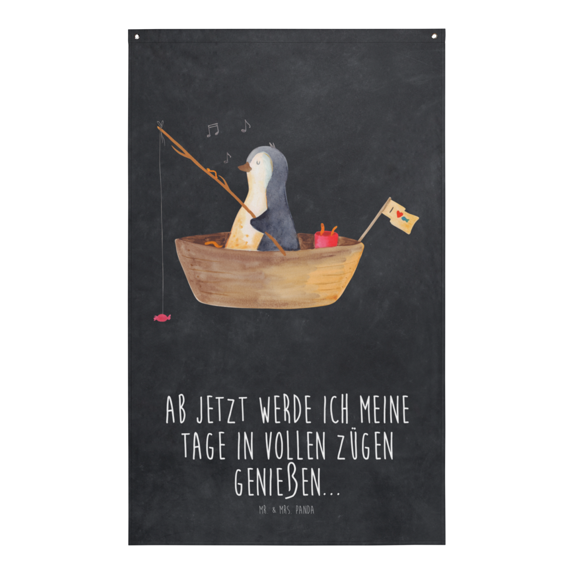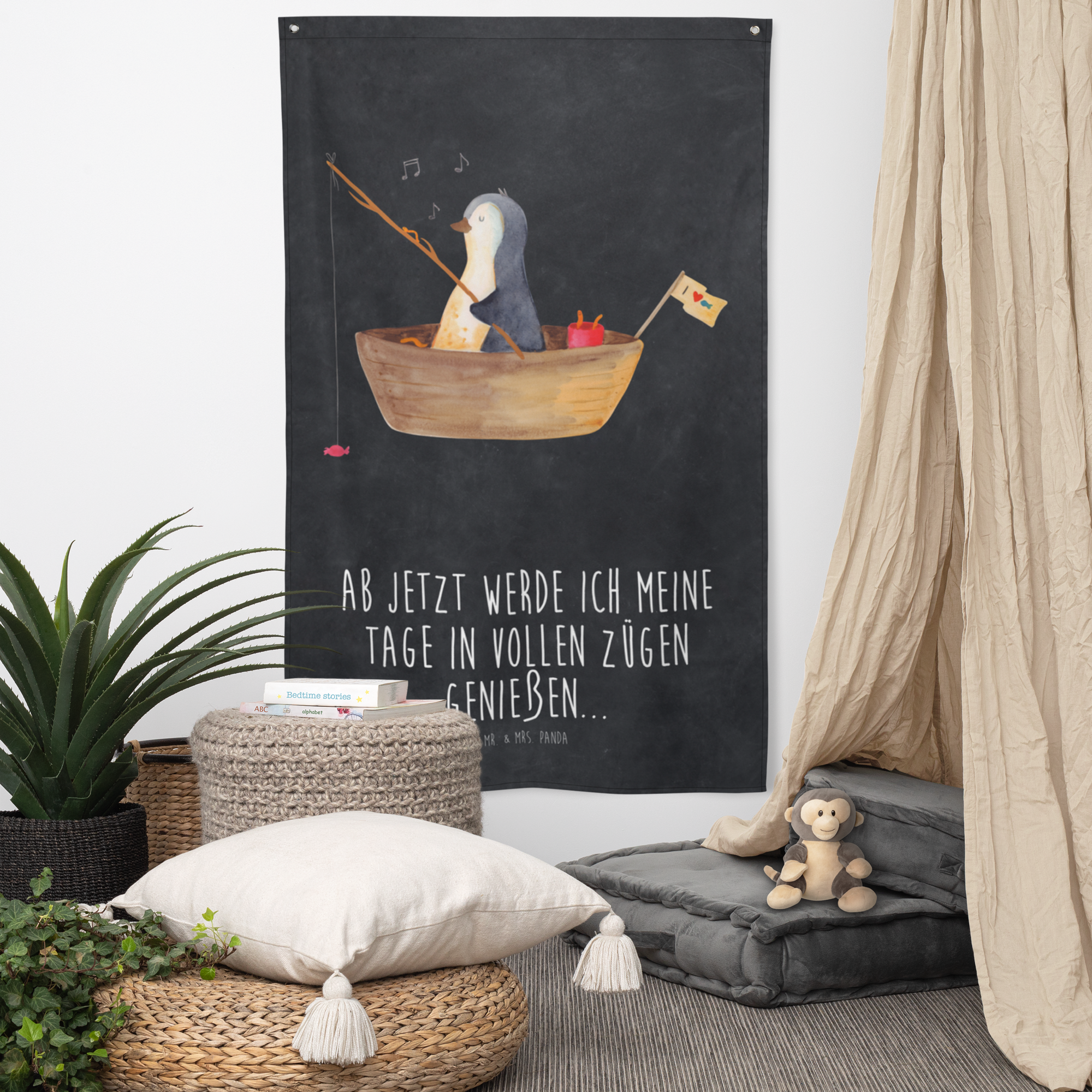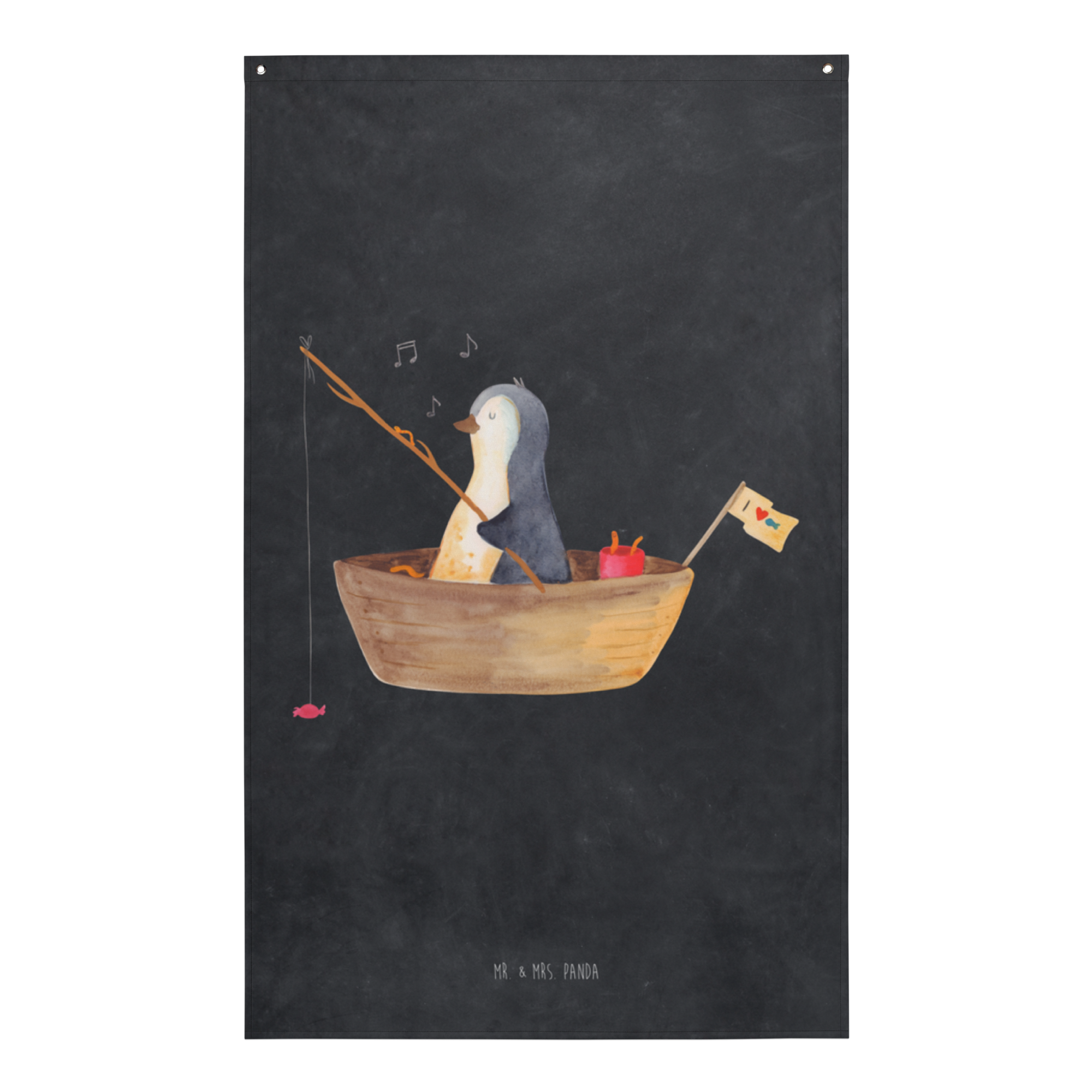 Wandteppich Pinguin Angelboot - mit Spruch - Kreidetafel
