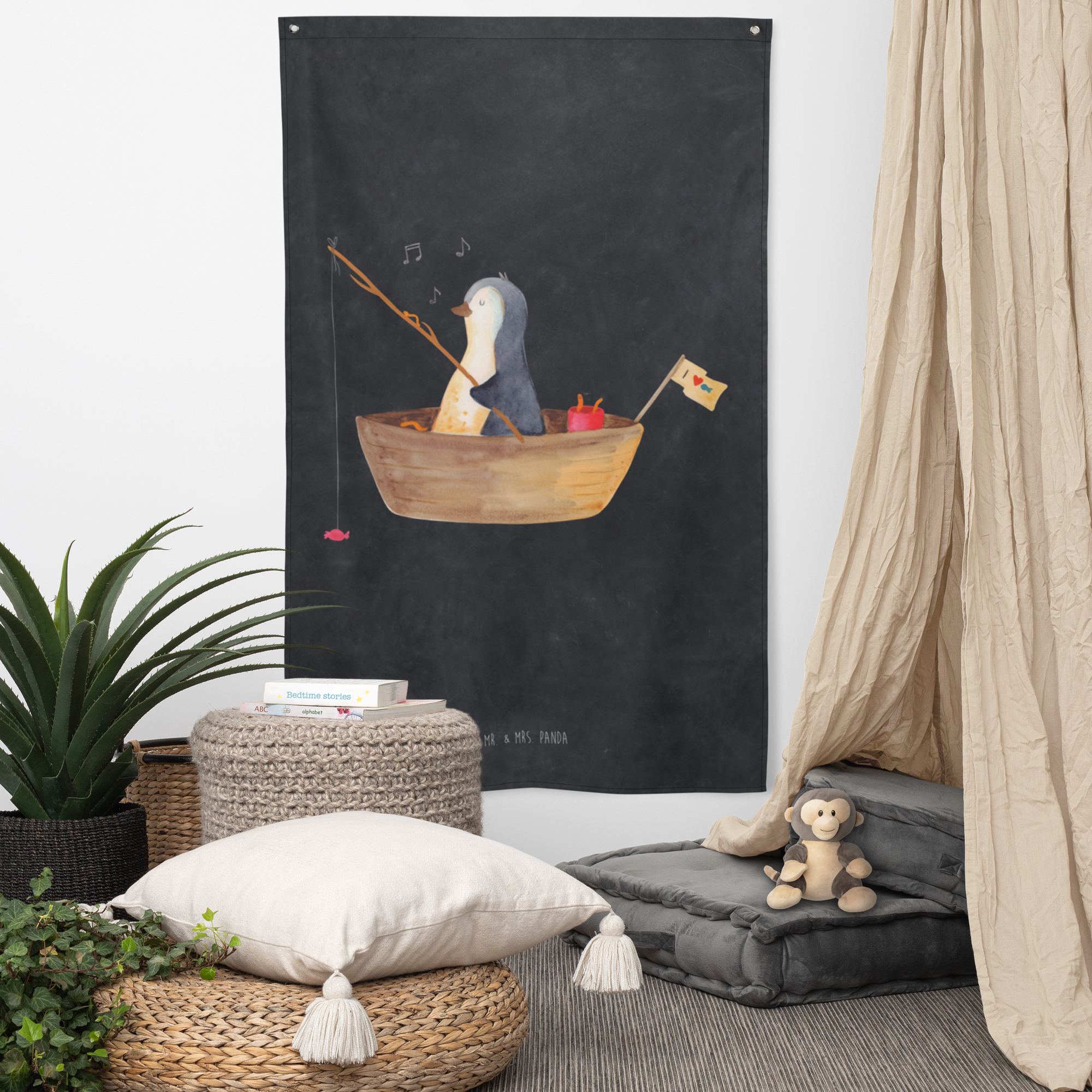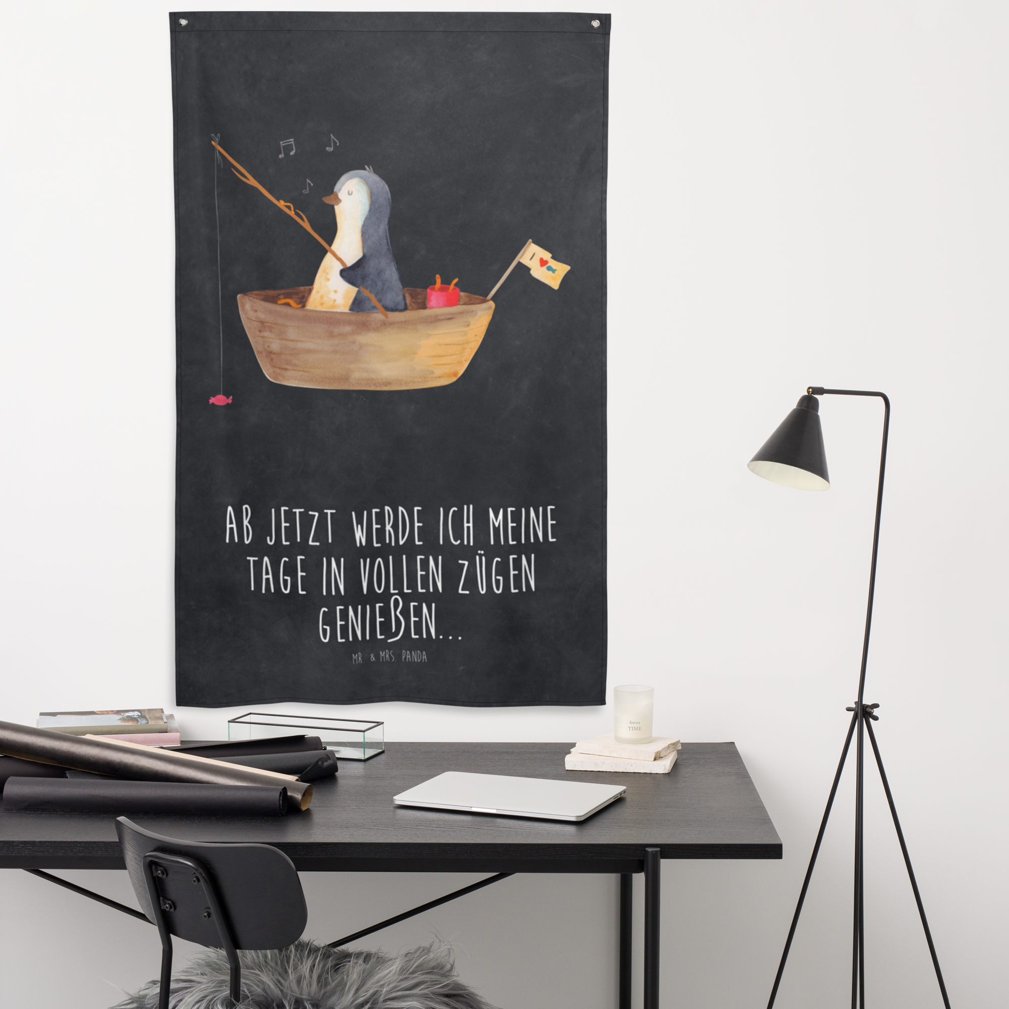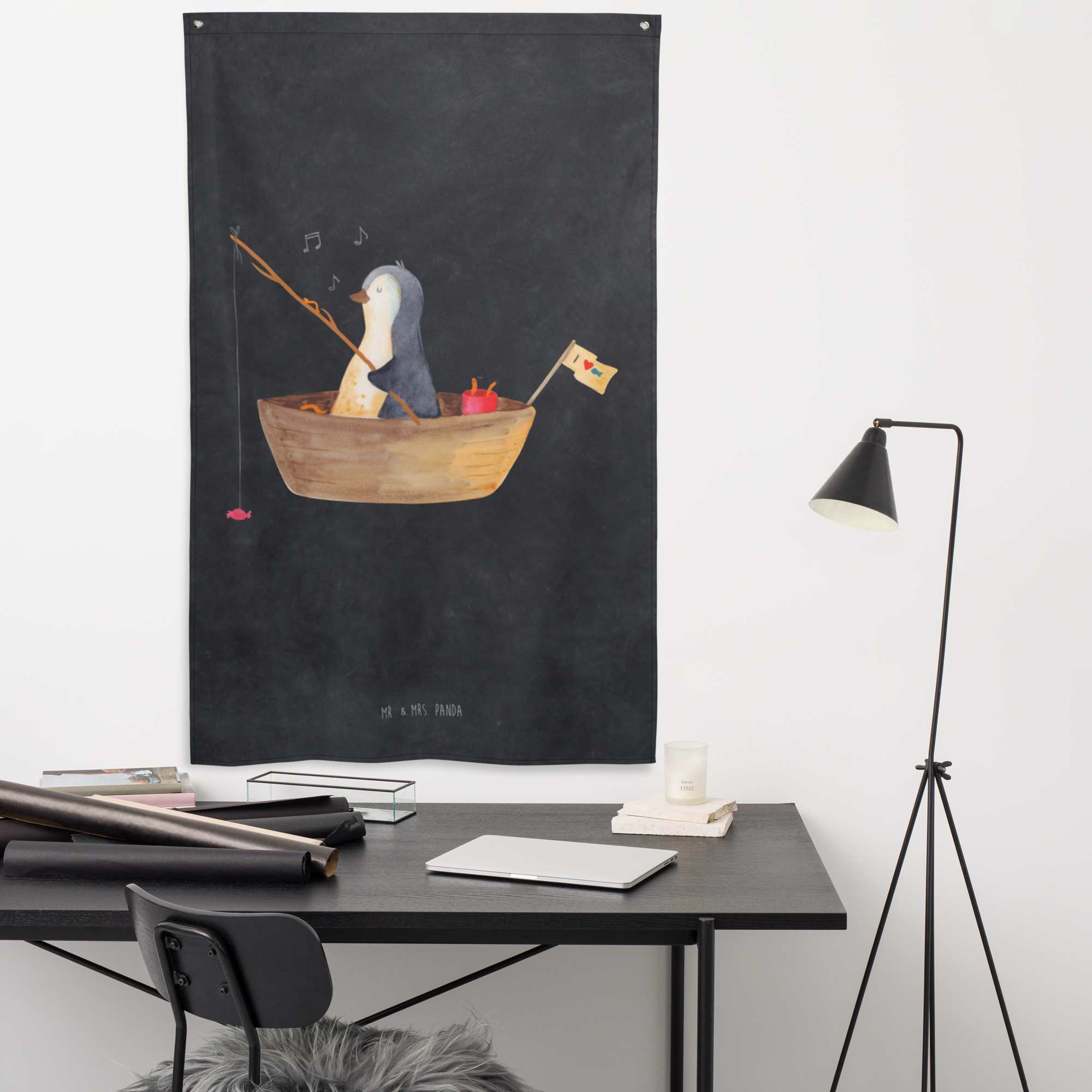 Wandteppich Pinguin Angelboot - mit Spruch - Kreidetafel