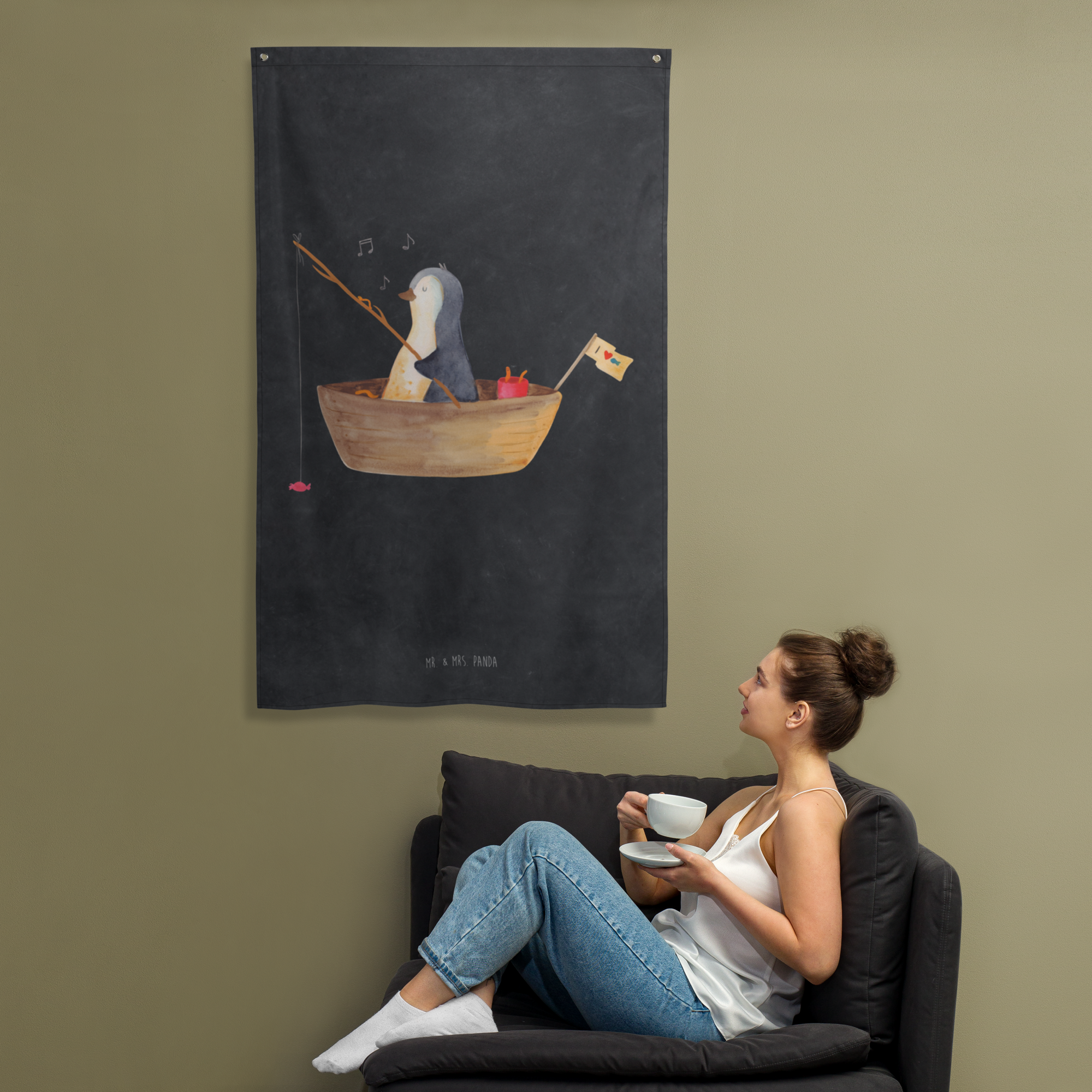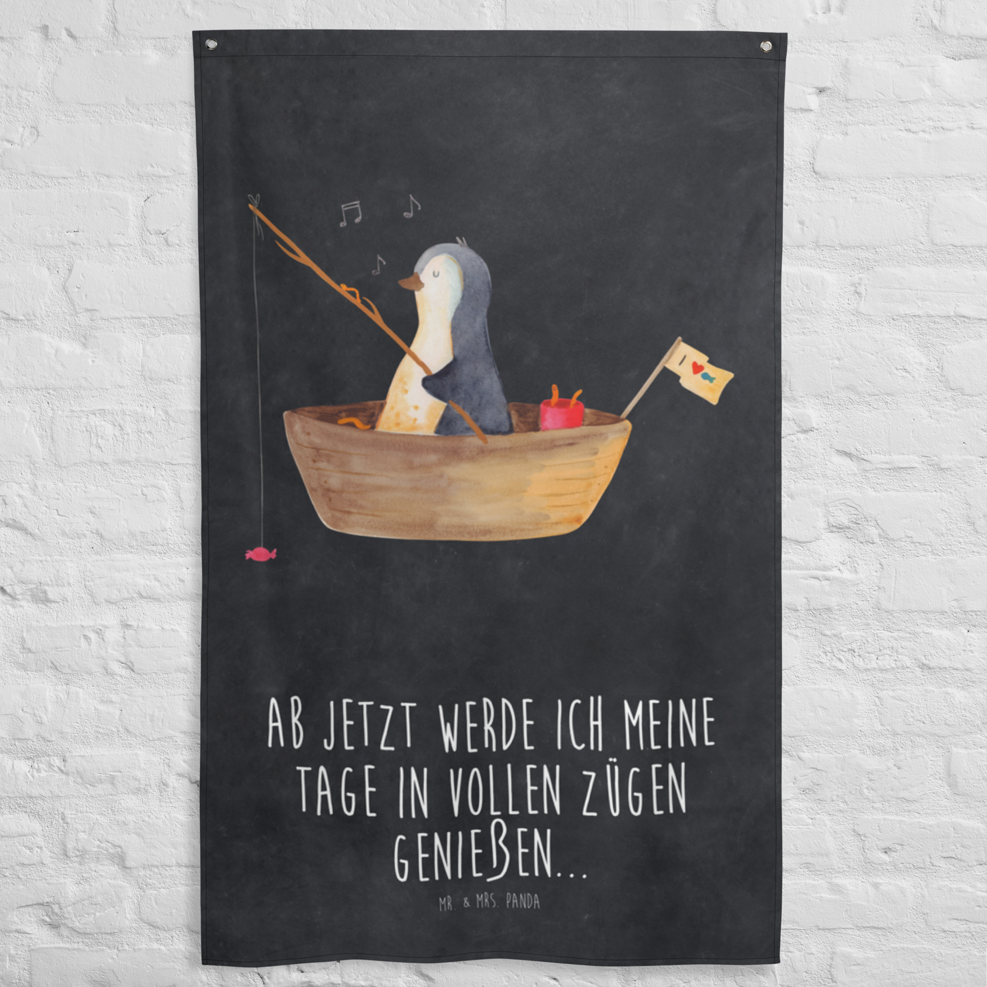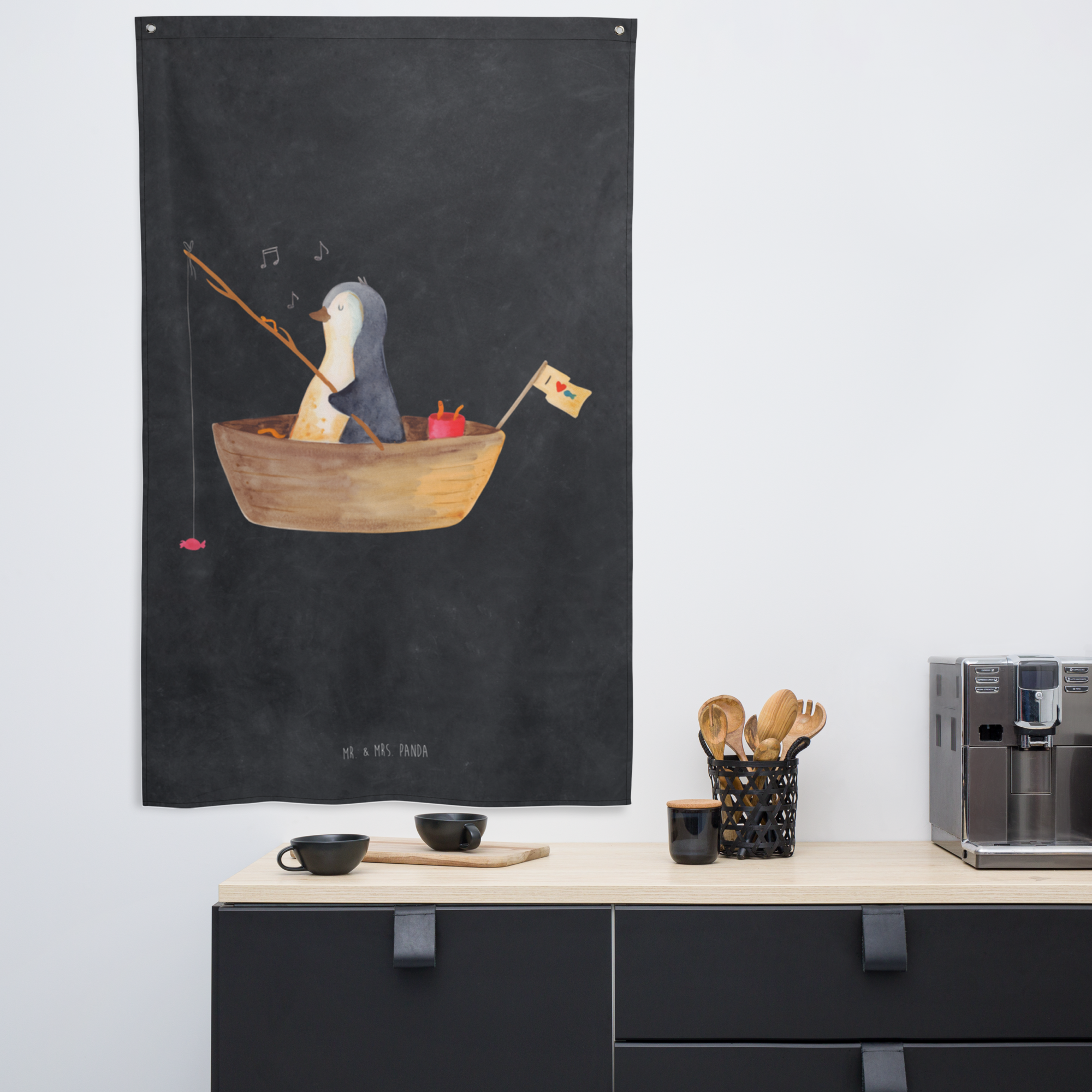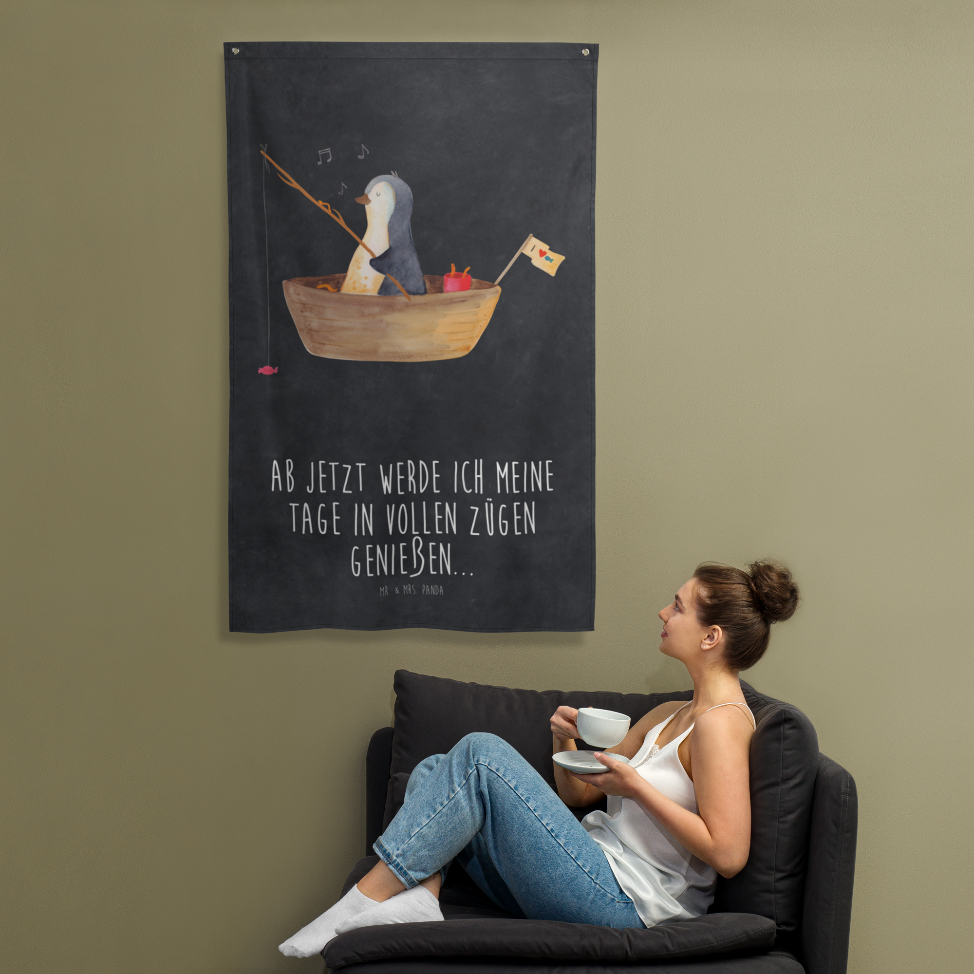 Wandteppich Pinguin Angelboot - mit Spruch - Kreidetafel