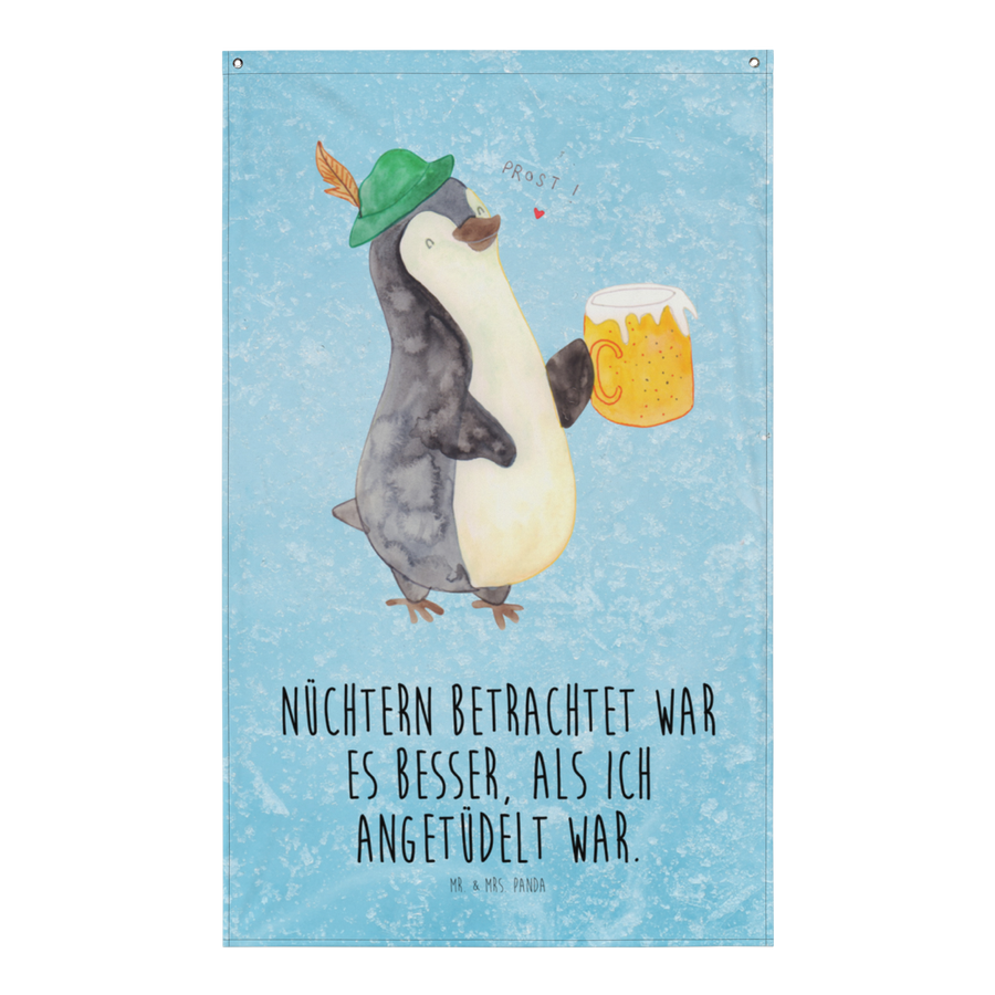 Wandteppich Pinguin Bier - mit Spruch - Eisblau