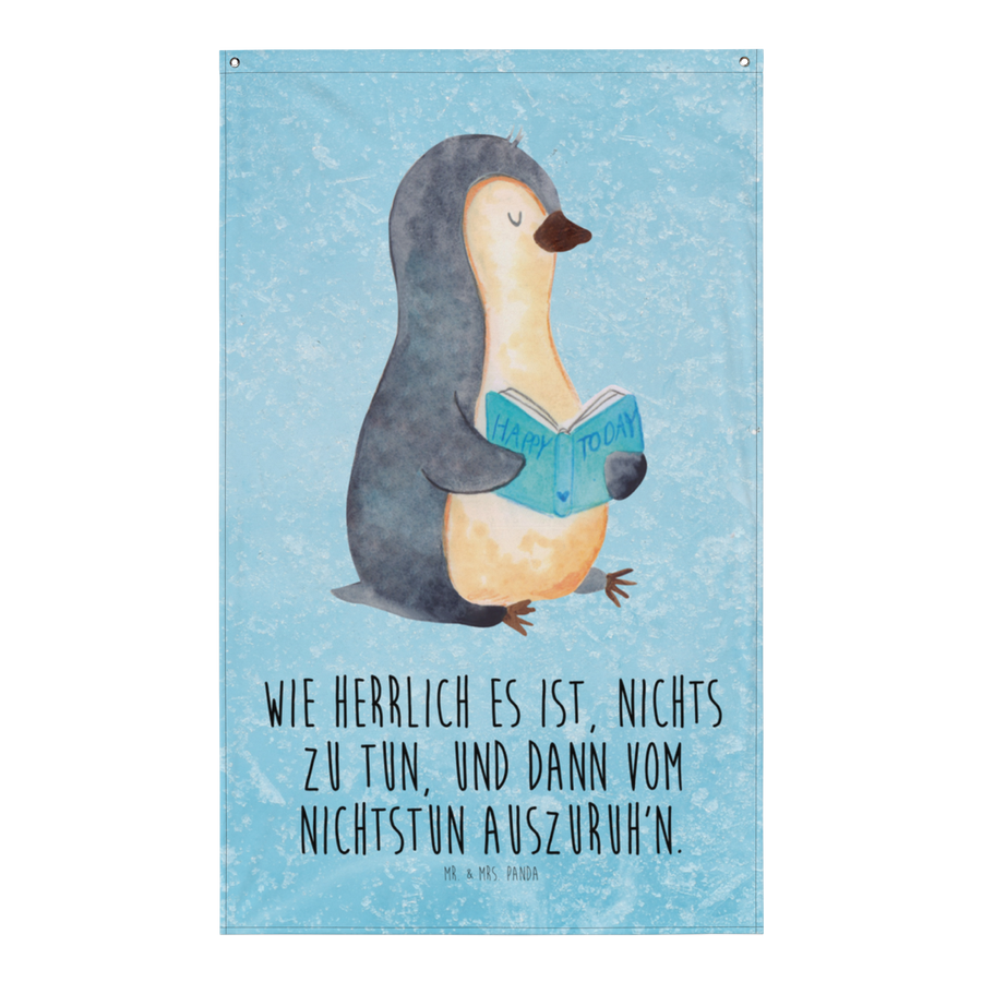 Wandteppich Pinguin Buch - mit Spruch - Eisblau